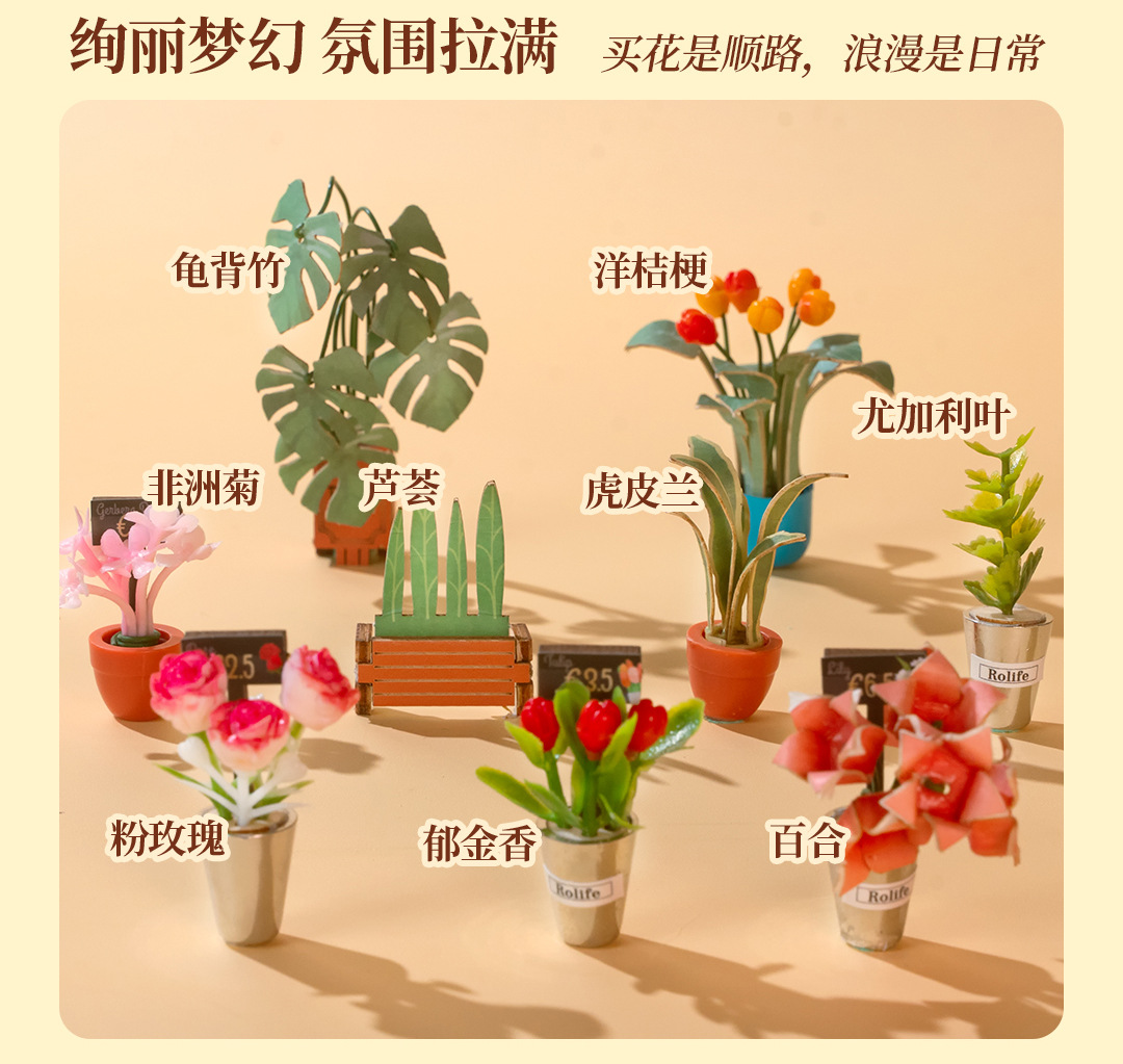 Si la vida se encuentra con la calle de las flores, el bloque de libros, el modelo de bricolaje, el ensamblaje de juguetes hechos a mano, el regalo de cumpleaños