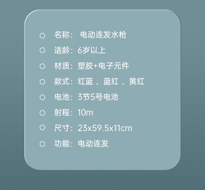 | Color | Pistola de agua eléctrica del equipo de EE. UU. (versión recargable),Araña eléctrica pistola de agua (versión de carga) |