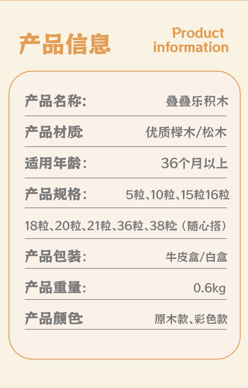 38粒叠石:牛皮盒尺寸28.5*13.5*5cm箱规:53*29.5*44cm,0.6kg
