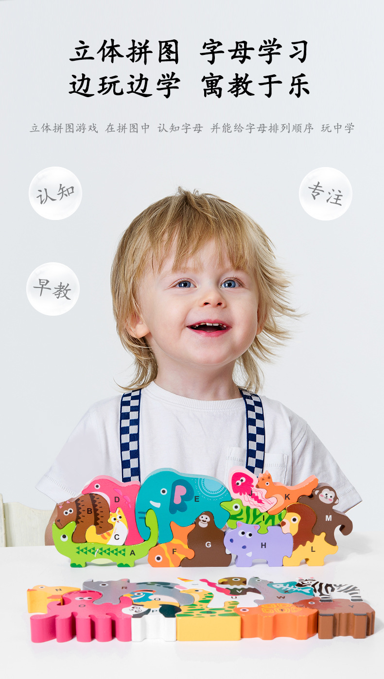 | Color | Bloques de rompecabezas tridimensionales con letras de animales |