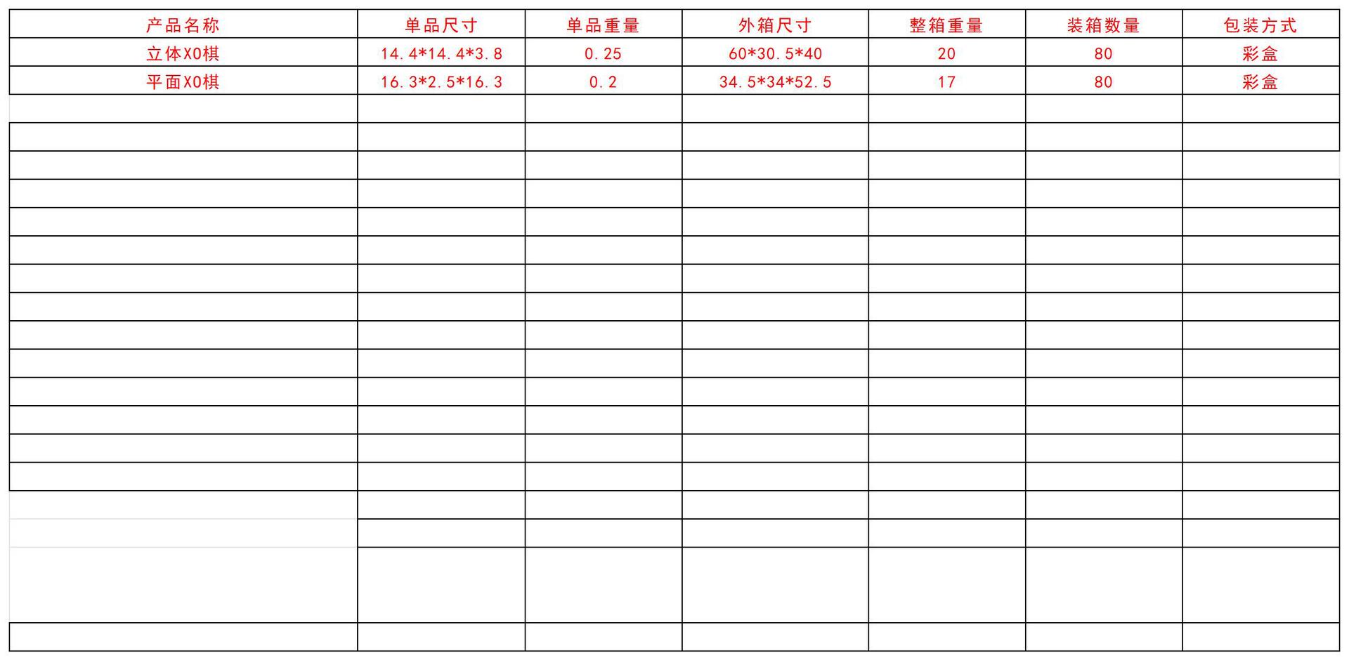 | Colores | Cpc tridimensional XO ajedrez 0,25 kg,Cpc plano XO ajedrez 0,2 kg |