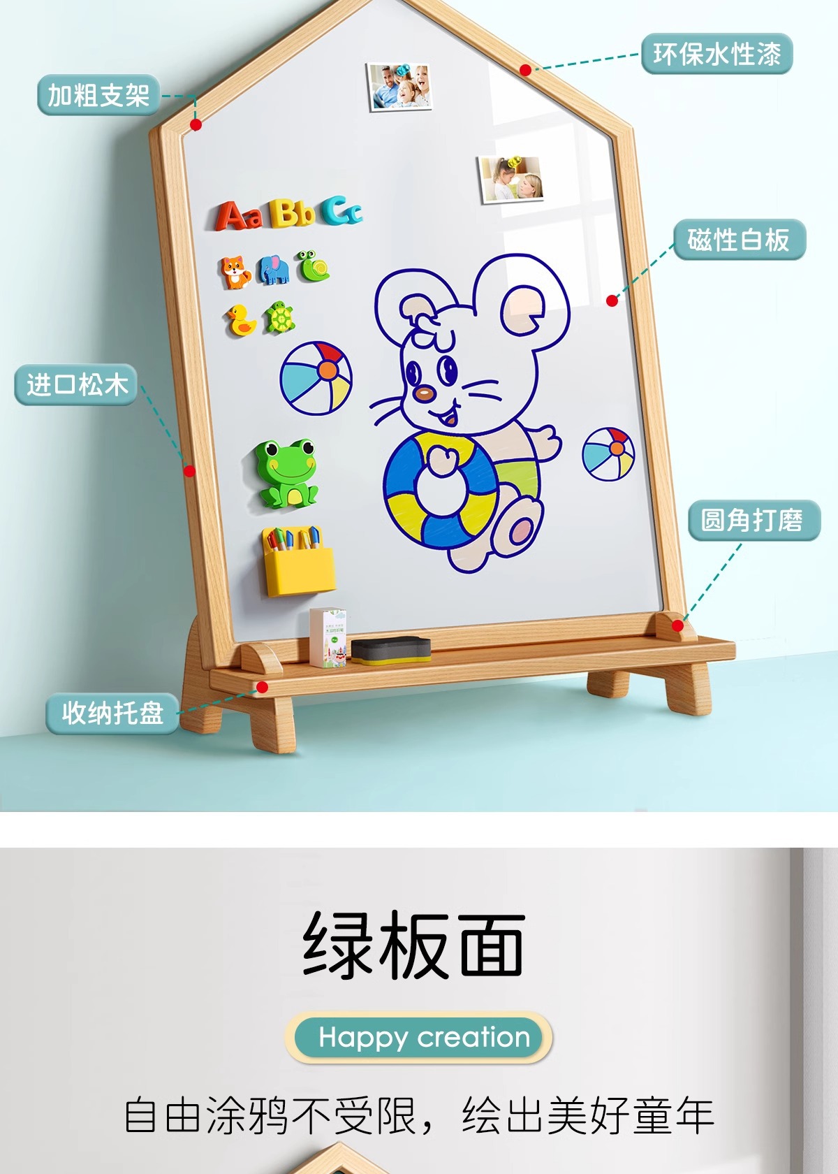 | Color | Modelo de casa mediana [tablero de dibujo de doble cara para niños] sin base, modelo de casa mediana [tablero de dibujo de doble cara para niños] + base multifuncional |