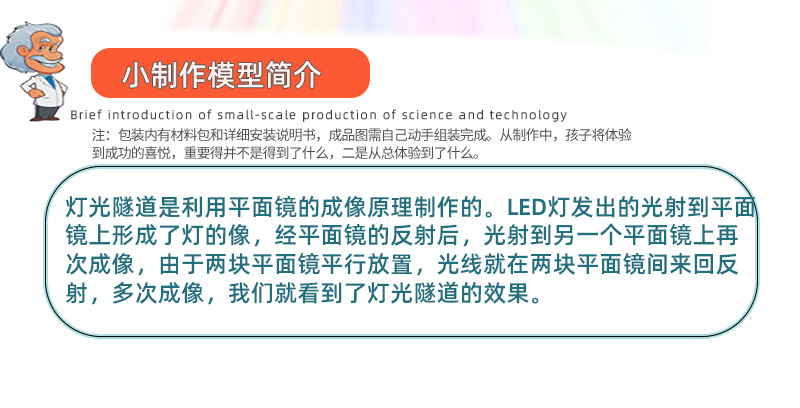 | 1 | Paquete de material de experimento de bricolaje Túnel de iluminación |