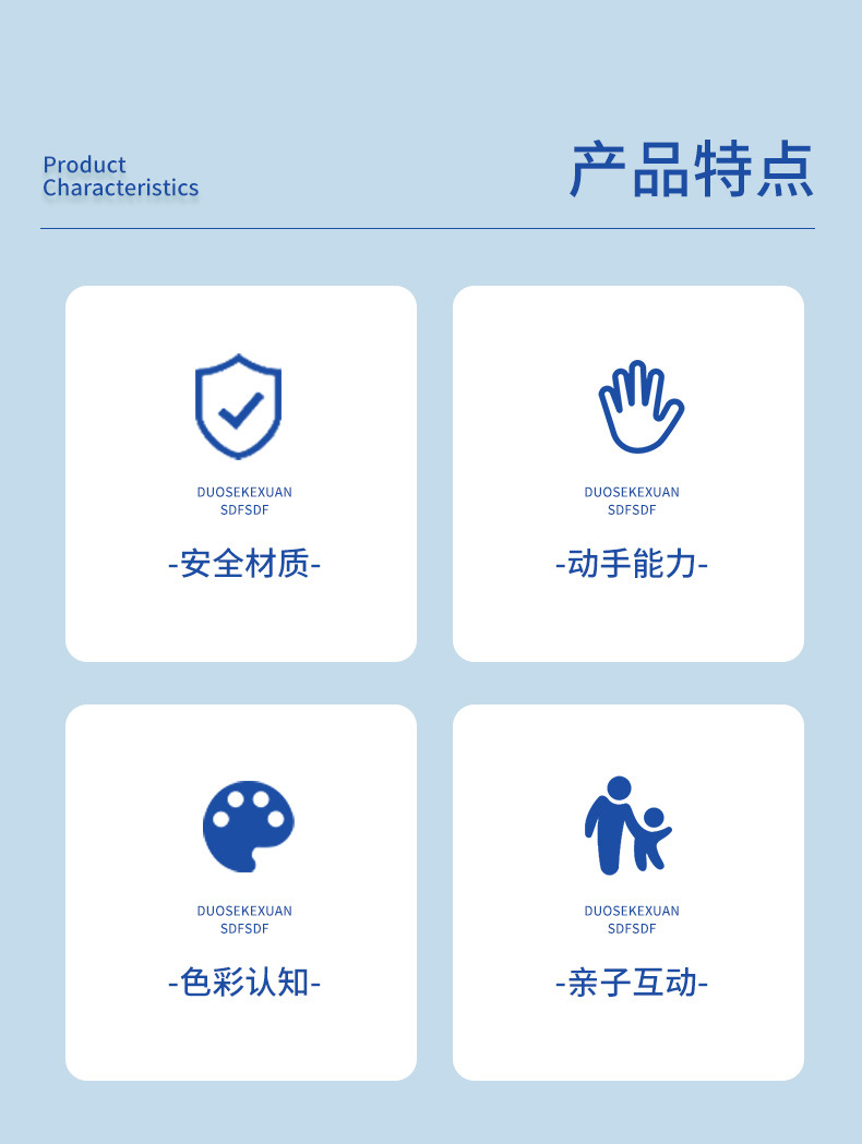 | Desarrollo de la capacidad | Emoción, visión, desarrollo intelectual, reptiles, Movimiento de manos y cerebro, agarre, sentidos, coordinación mano - ojo, otros desarrollos de habilidades, juguetes interactivos, comunicación padre - hijo, cultivo de intereses |