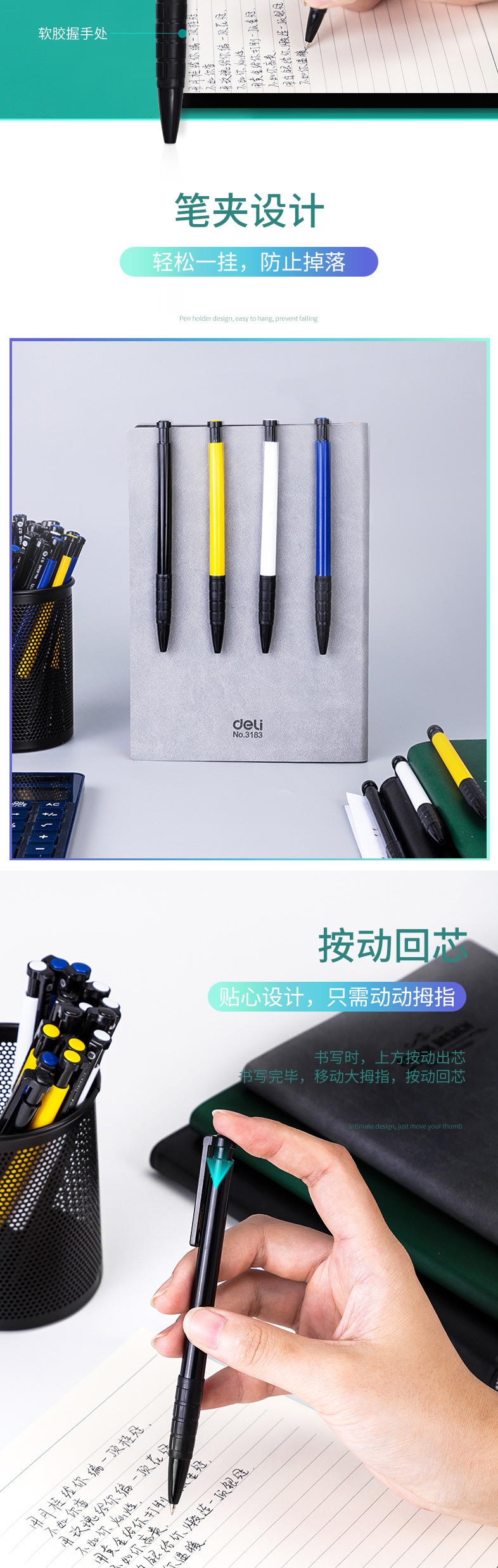 Deli Bolígrafo 0.7mm Bullet Material de oficina Bolígrafo para estudiantes Estilo de prensa Color Negro Azul