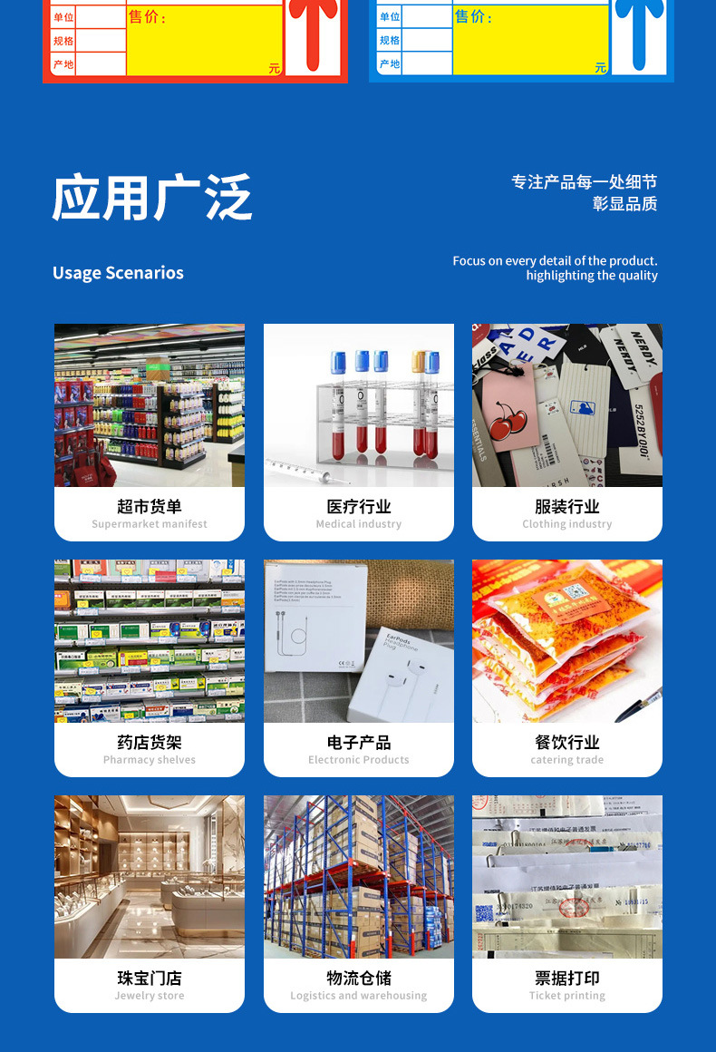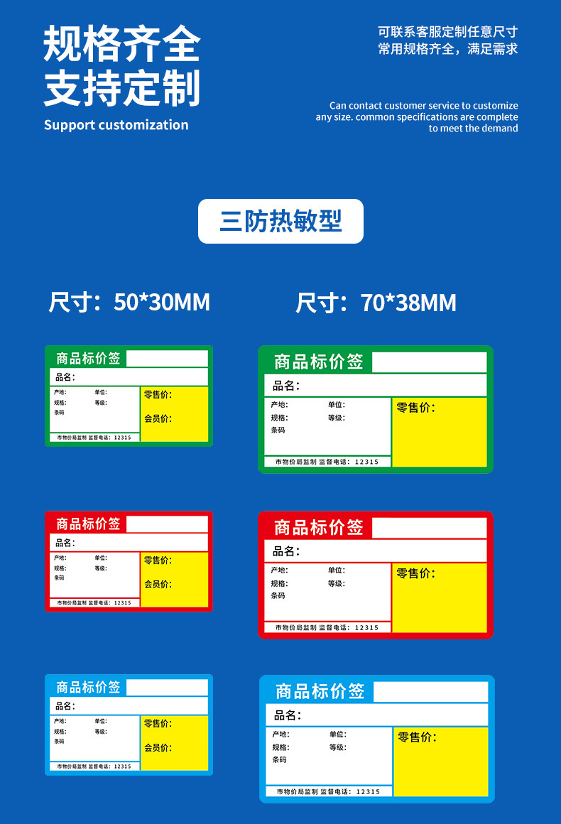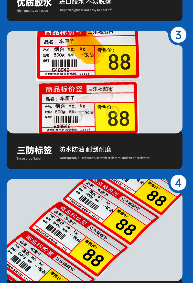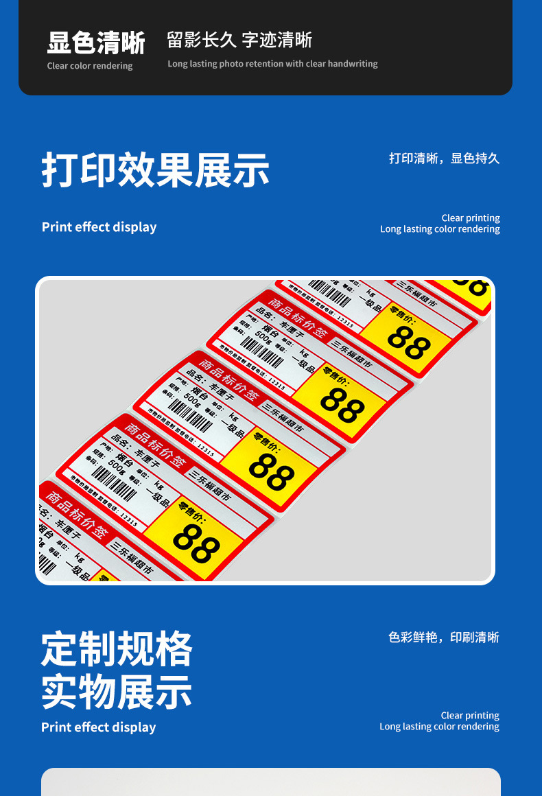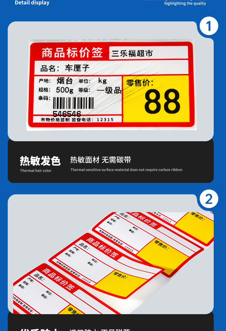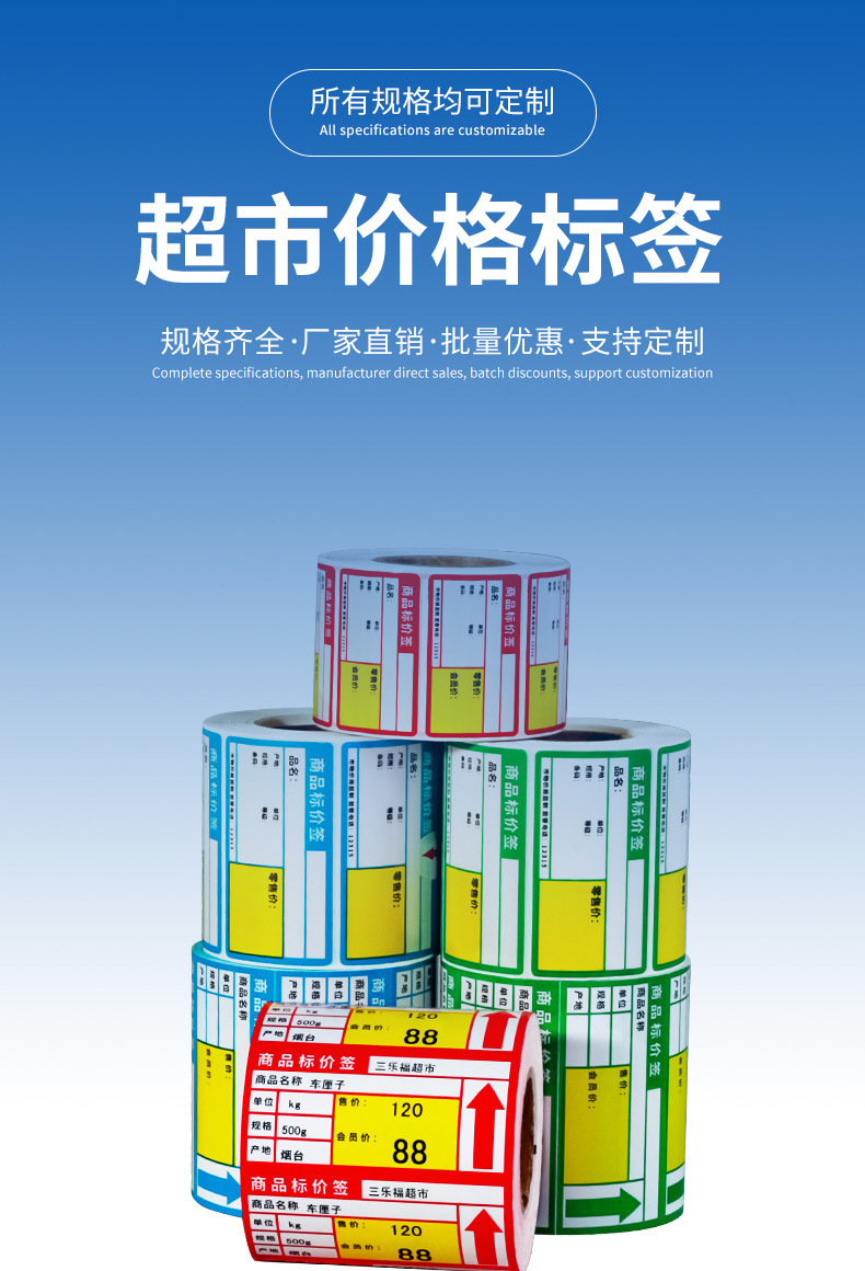 Color supermercado etiqueta de precio etiqueta térmica papel de impresión placa de cobre etiqueta autoadhesiva farmacia centro comercial etiqueta de precio fabricante al por mayor
