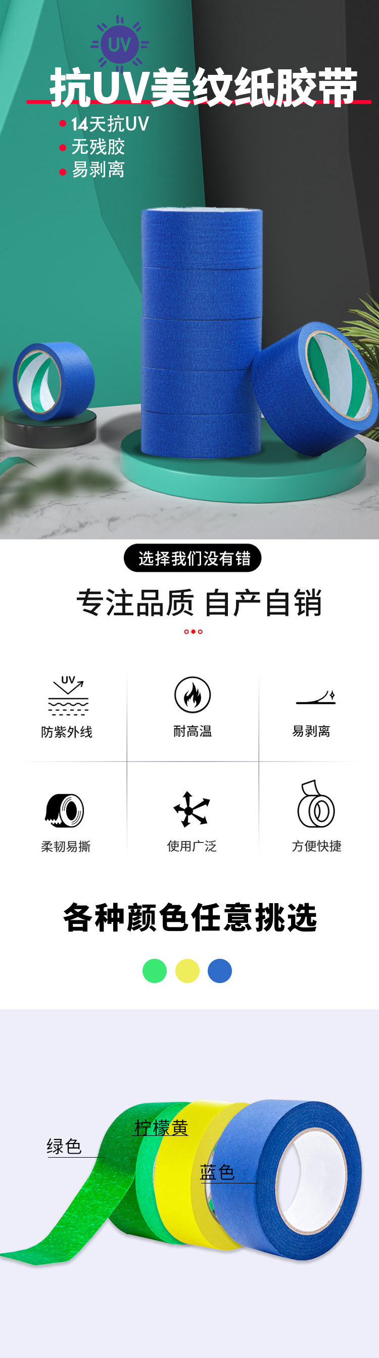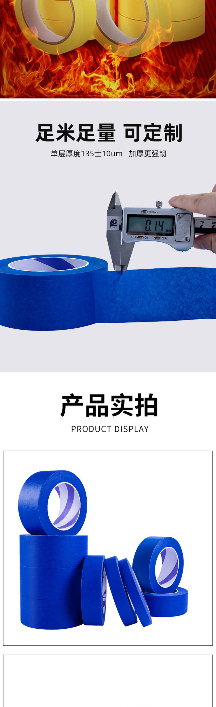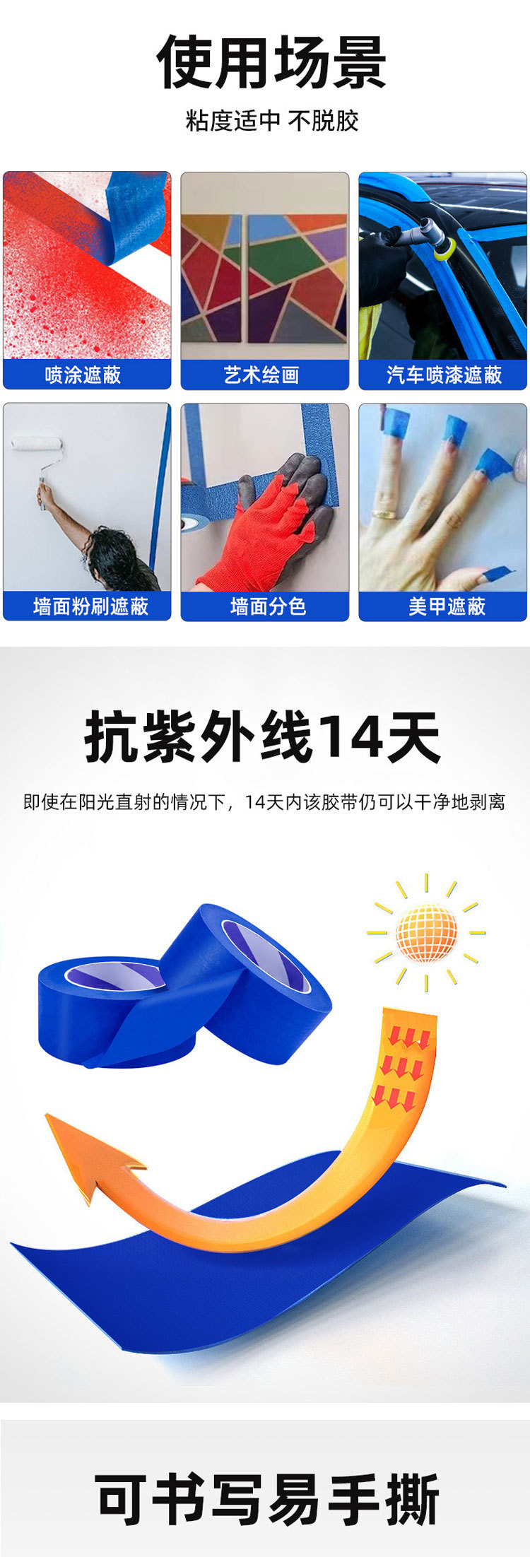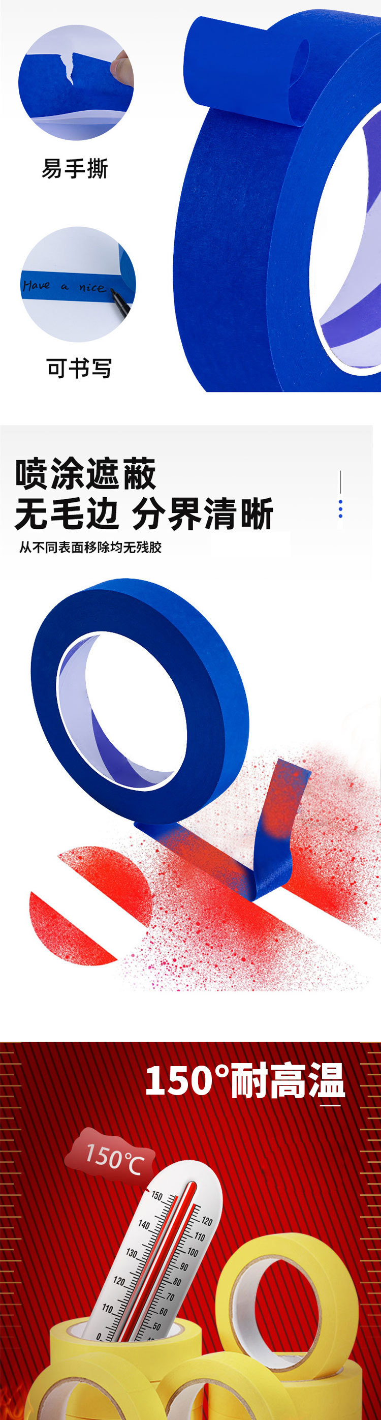 Cubierta de pintura de cinta de papel enmascarante azul sin residuos 3D impresión alta pintura de papel pegajoso fácil de rasgar y escribir