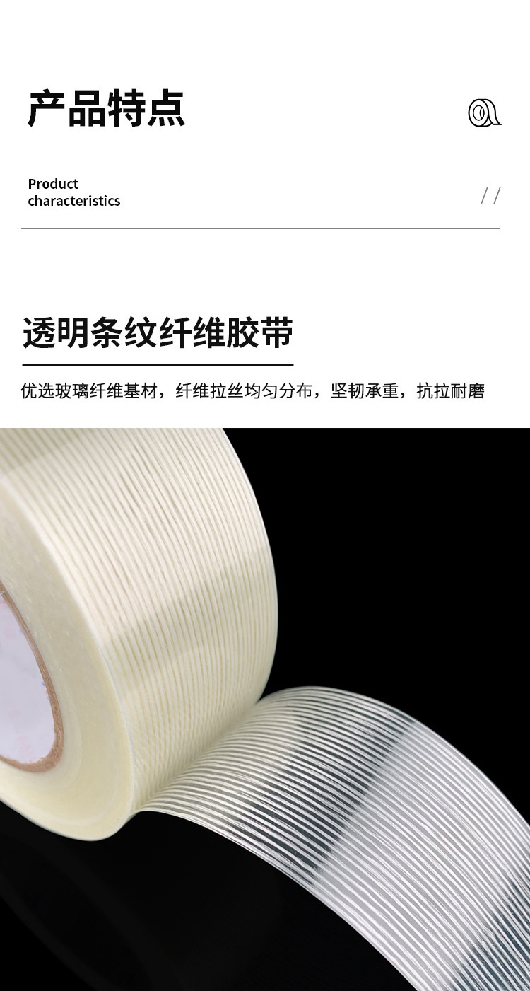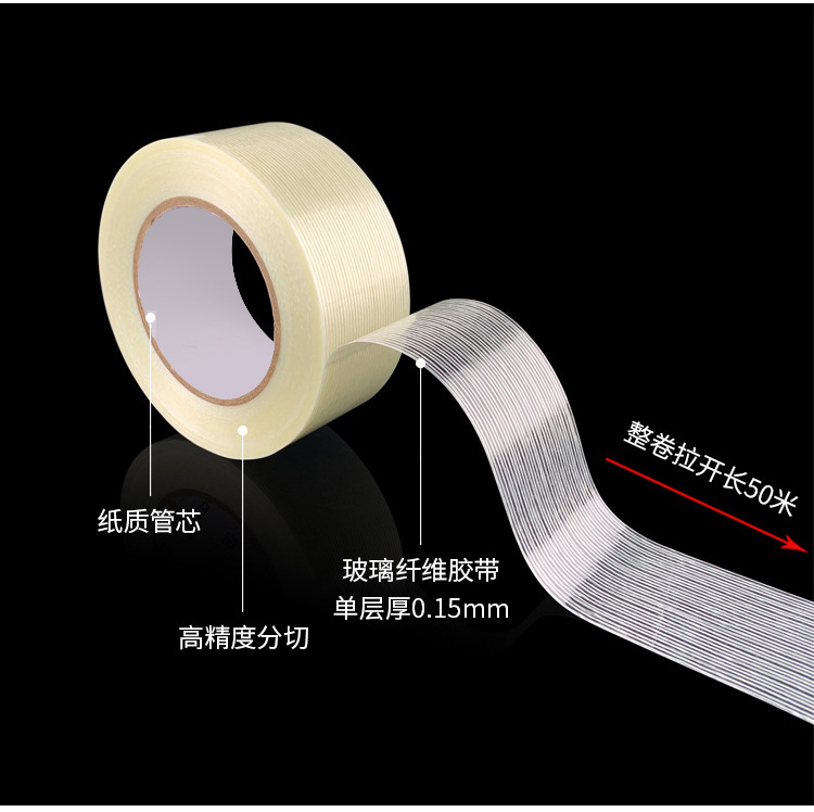 | Nombre | Cinta de fibra a rayas de fábrica de 0,14 espesor, cinta de fijación de modelo de avión de fibra de vidrio resistente al desgaste y a la tensión |