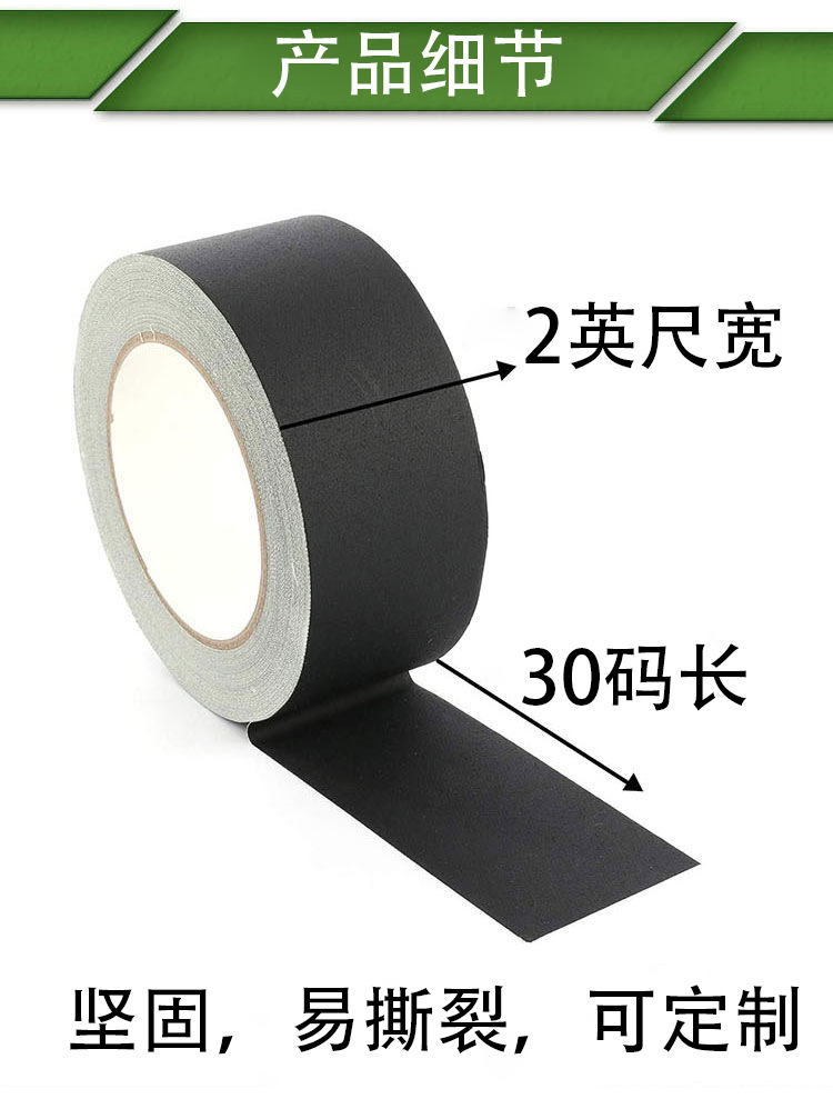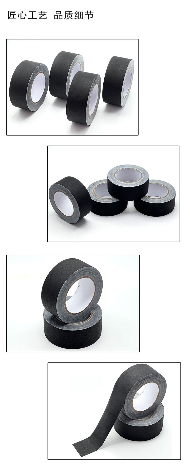 | Uso del entorno | Cinta a base de tela mate negra transfronteriza, equipo fotográfico, fondo de escenario, cinta de tela absorbente, cinta a base de tela no reflectante |