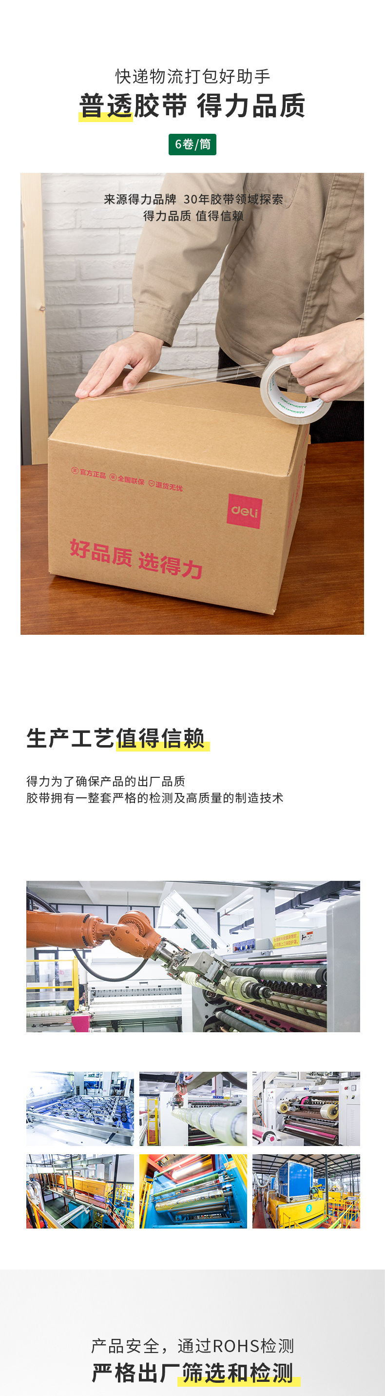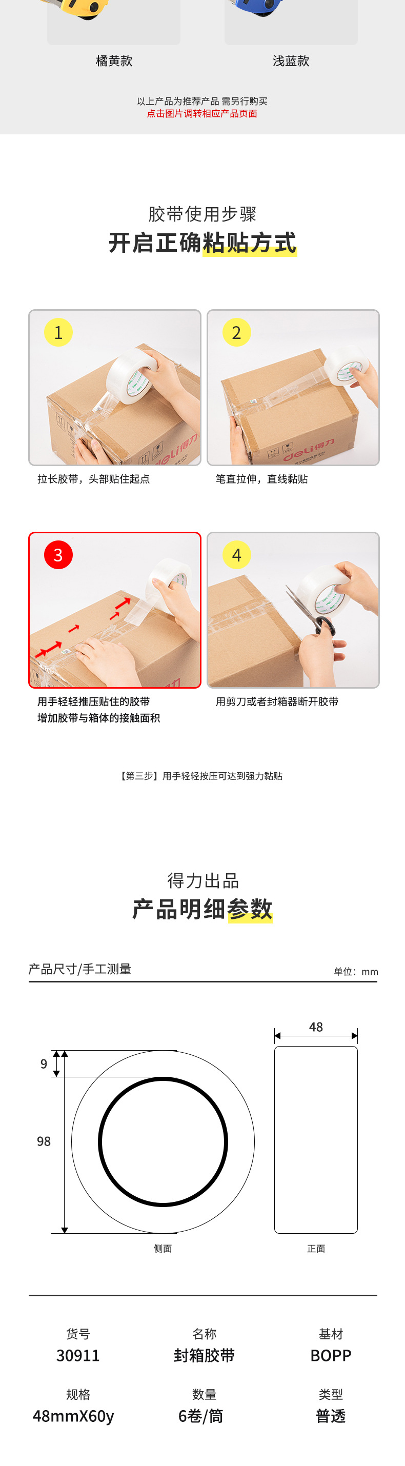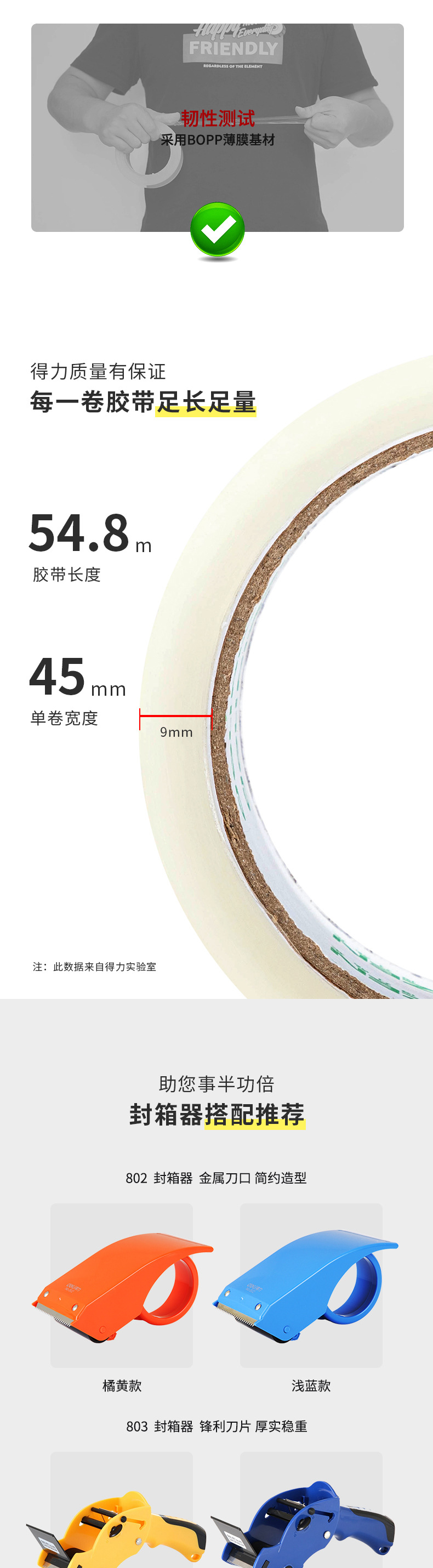 | Especificaciones | 45mm * 60m * 45um - 1 cilindro en 5 rollos [18 cilindros de caja completa], 45mm * 100m * 45um - 1 cilindro en 5 rollos [12 cilindros de caja completa], 45mm * 150m * 45um - 1 cilindro en 5 rollos [8 cilindros de caja completa], 48mm * 60y * 45um - 1 cilindro en 6 rollos [12 cilindros de caja completa], 60mm * 60m * 45um - 1 cilindro en 5 rollos [18 cilindros de caja completa], 60mm * 100m * 45um - 1 cilindro en 5 rollos [12 cilindros de caja completa], 60mm * 150m - 45um 5 rollos de tubo en [8 tubos en toda la caja], 45 mm * 30m * 45 μm - 1 tubo en 5 rollos en toda la Caja en 20 tubos |