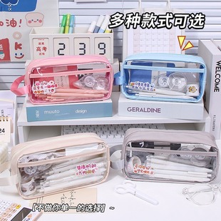 Nueva caja de lápiz creativa de doble capa de gran capacidad de aprendizaje bolsa de papelería portátil simple tela Oxford caja de lápiz de doble cremallera al por mayor