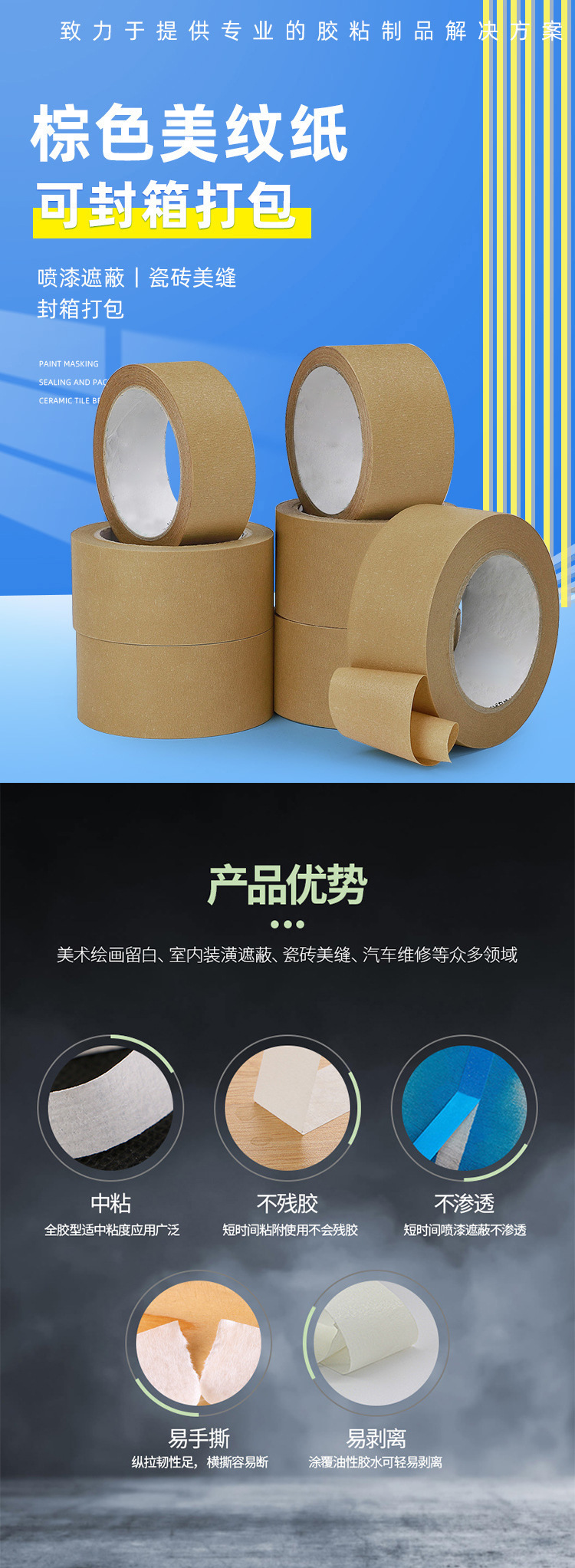 | Escenarios de uso | Cinta de papel de grano de belleza marrón Amazon transfronteriza resistente a los rayos ultravioleta, sin marcas ni residuos al aire libre, cinta adhesiva de alta adherencia |