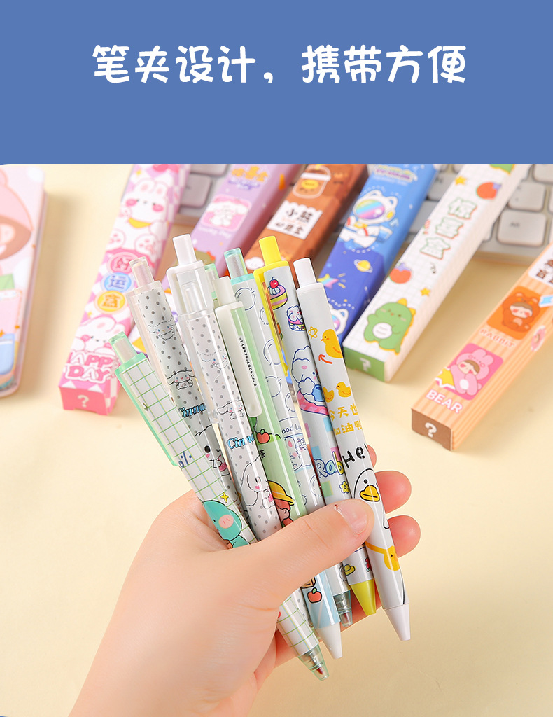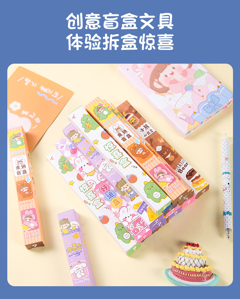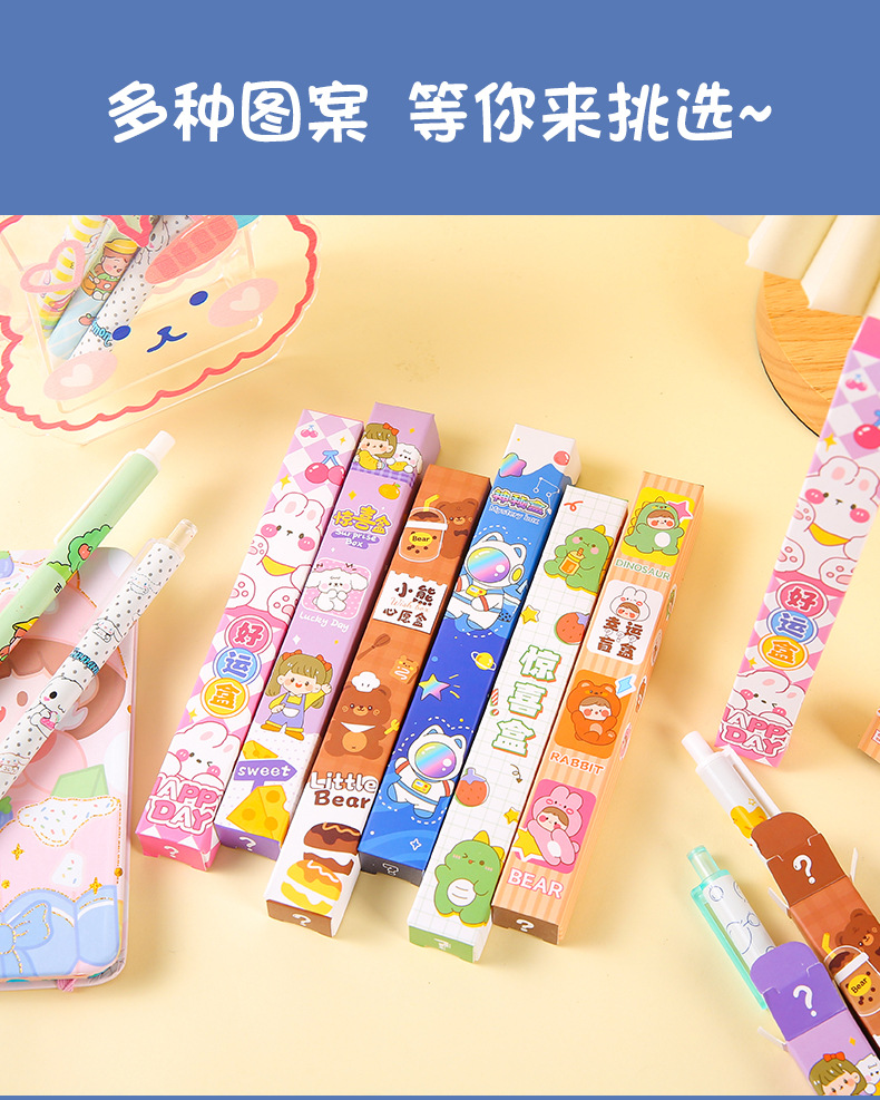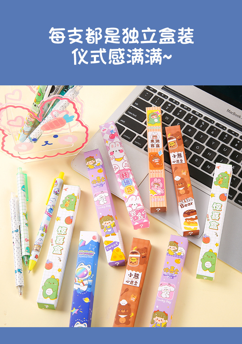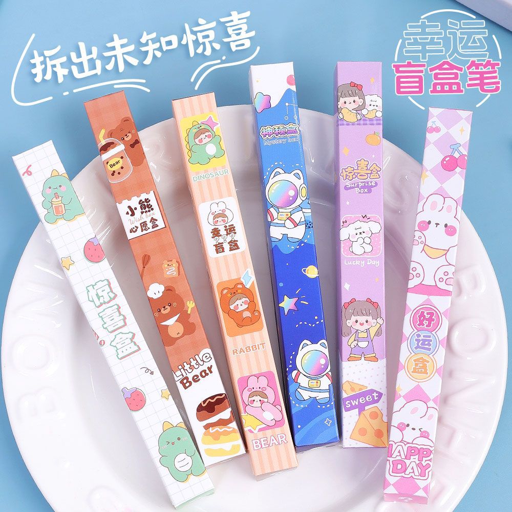 Creativo en encantador bolígrafo de caja de sorpresa para estudiantes de escuela primaria de alto valor facial bolígrafo de caja de sorpresa para niños papelería pequeños regalos