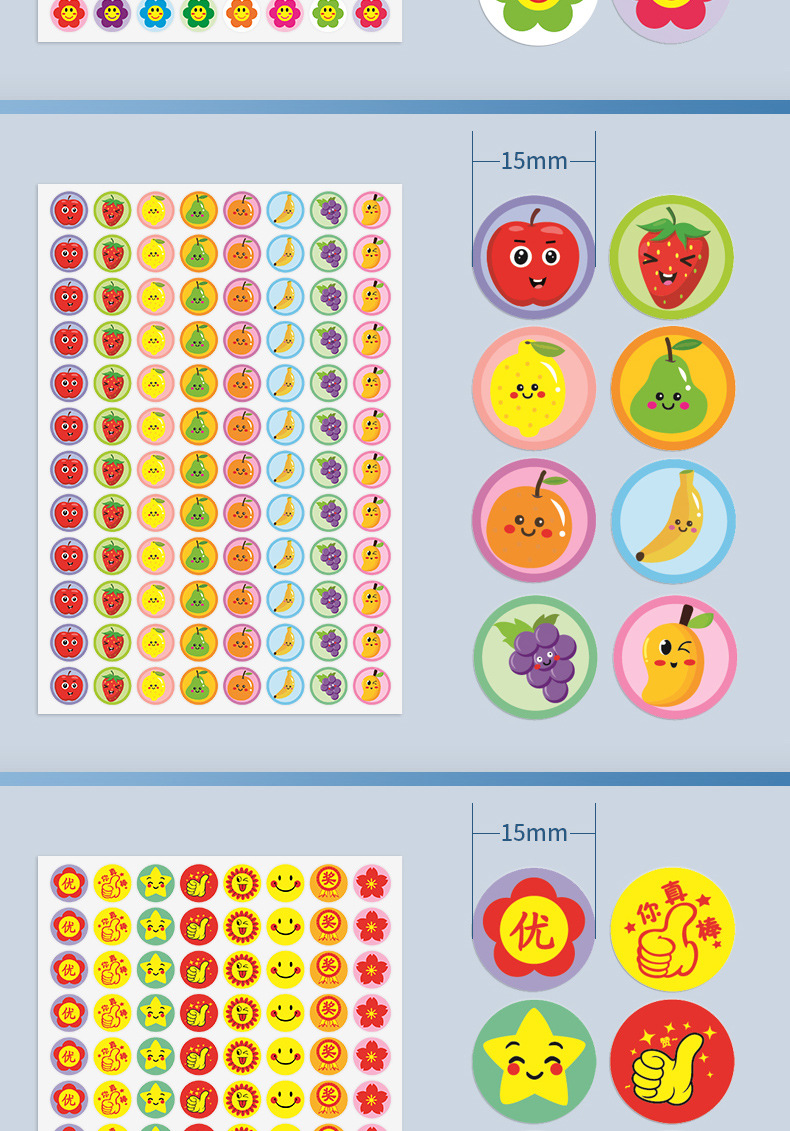 | Especificaciones y modelos | 10 / paquete (un total de 960 pegatinas) |