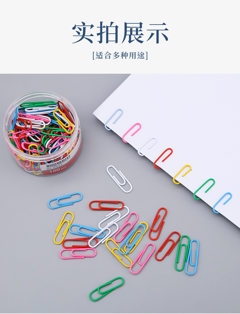 | Especificaciones | Clips de colores (100 piezas / tubo) |