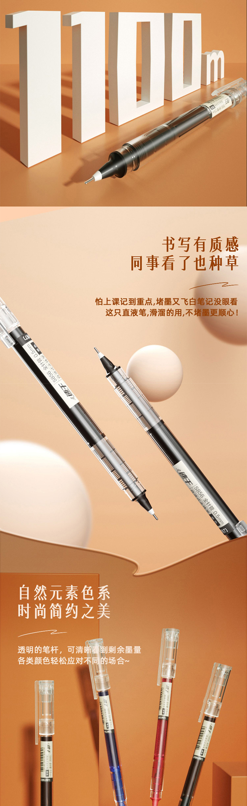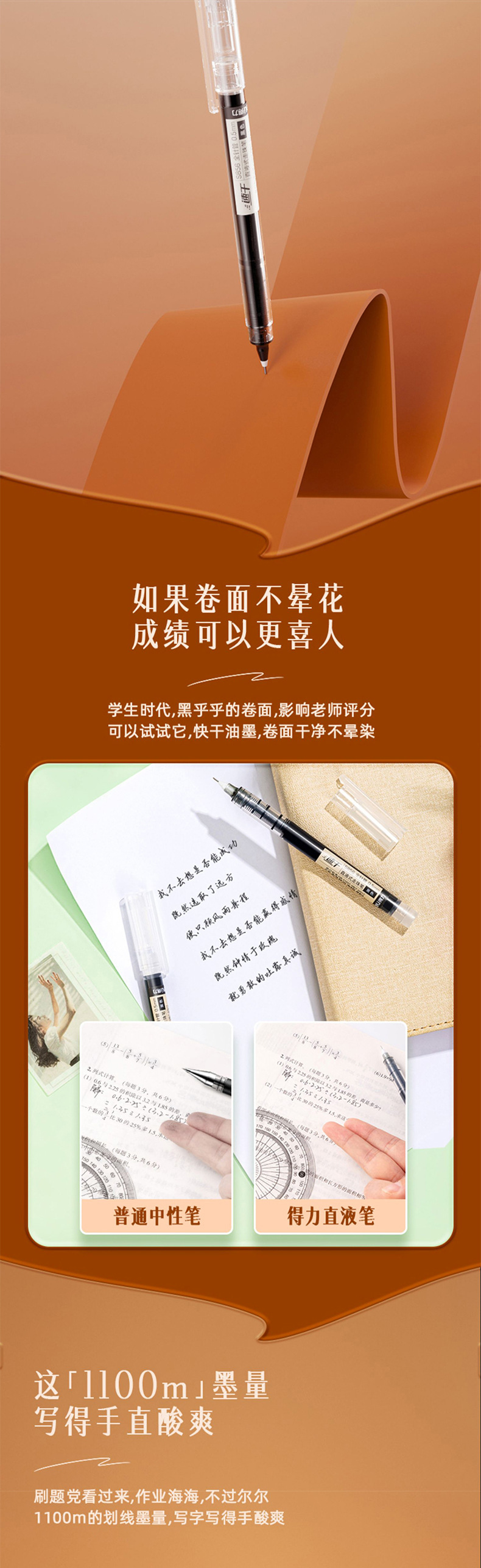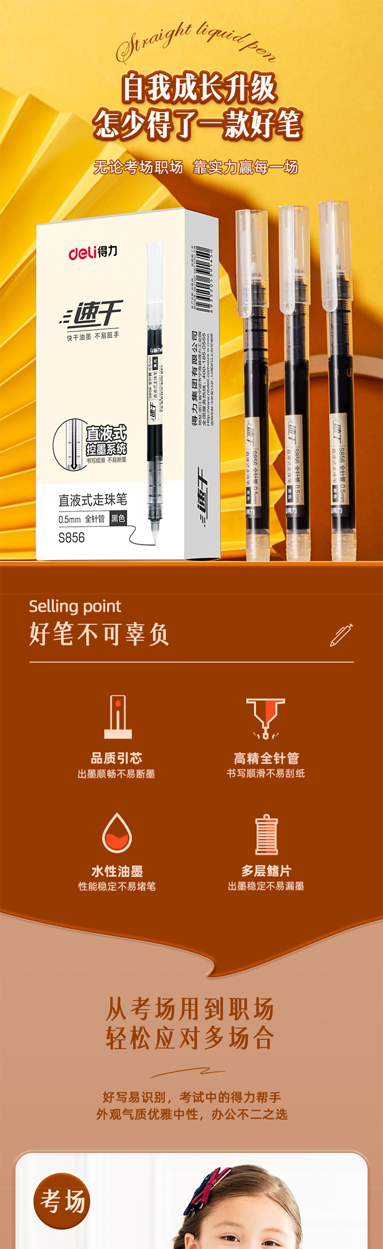 Deliky S856 pluma de corriente líquida directa, pluma neutra para estudiantes, 0.5 pluma de firma negra, pluma de aguja completa