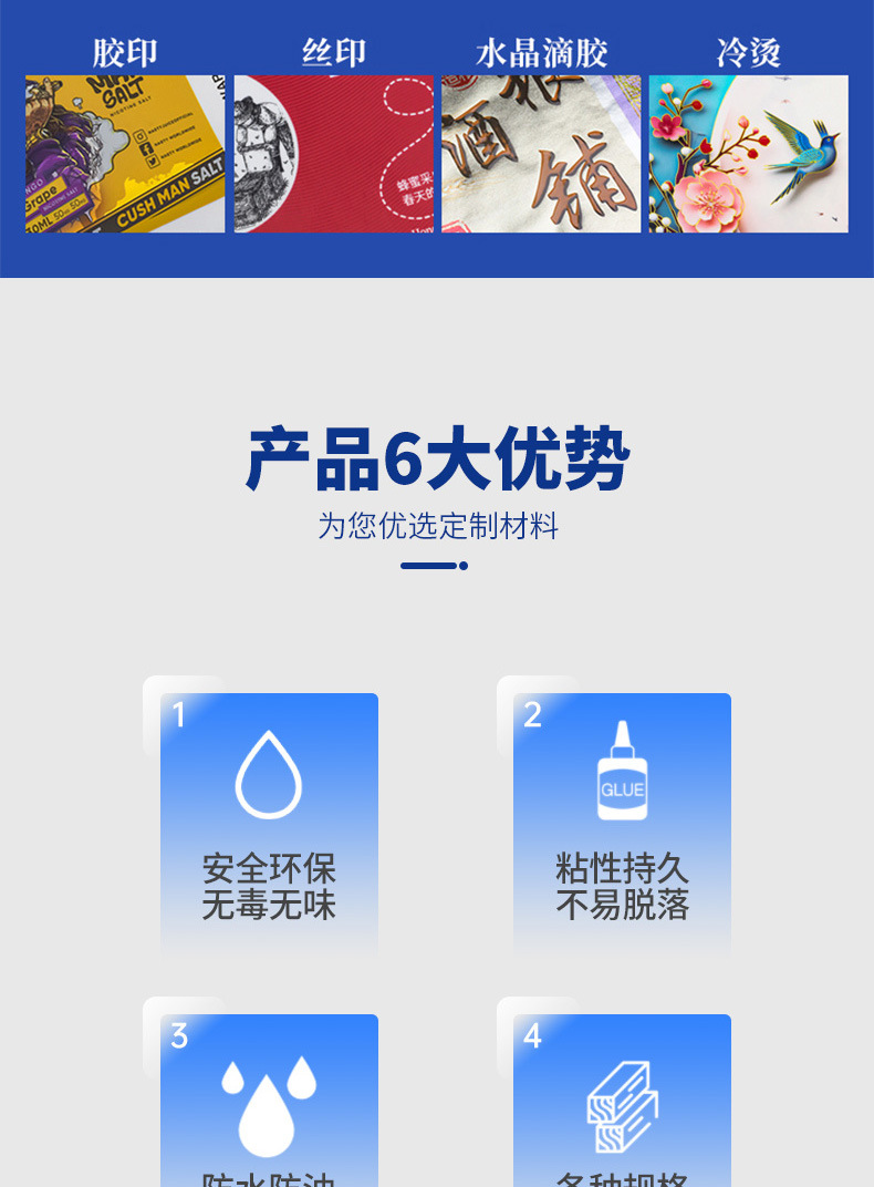 | Uso de tipo pegamento | Pegamento termofusible, pegamento de agua, soporte de personalización |