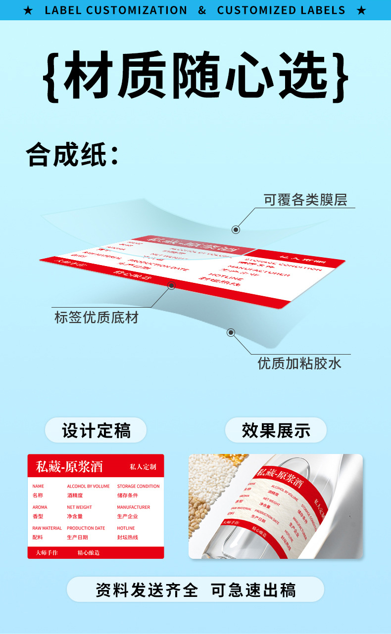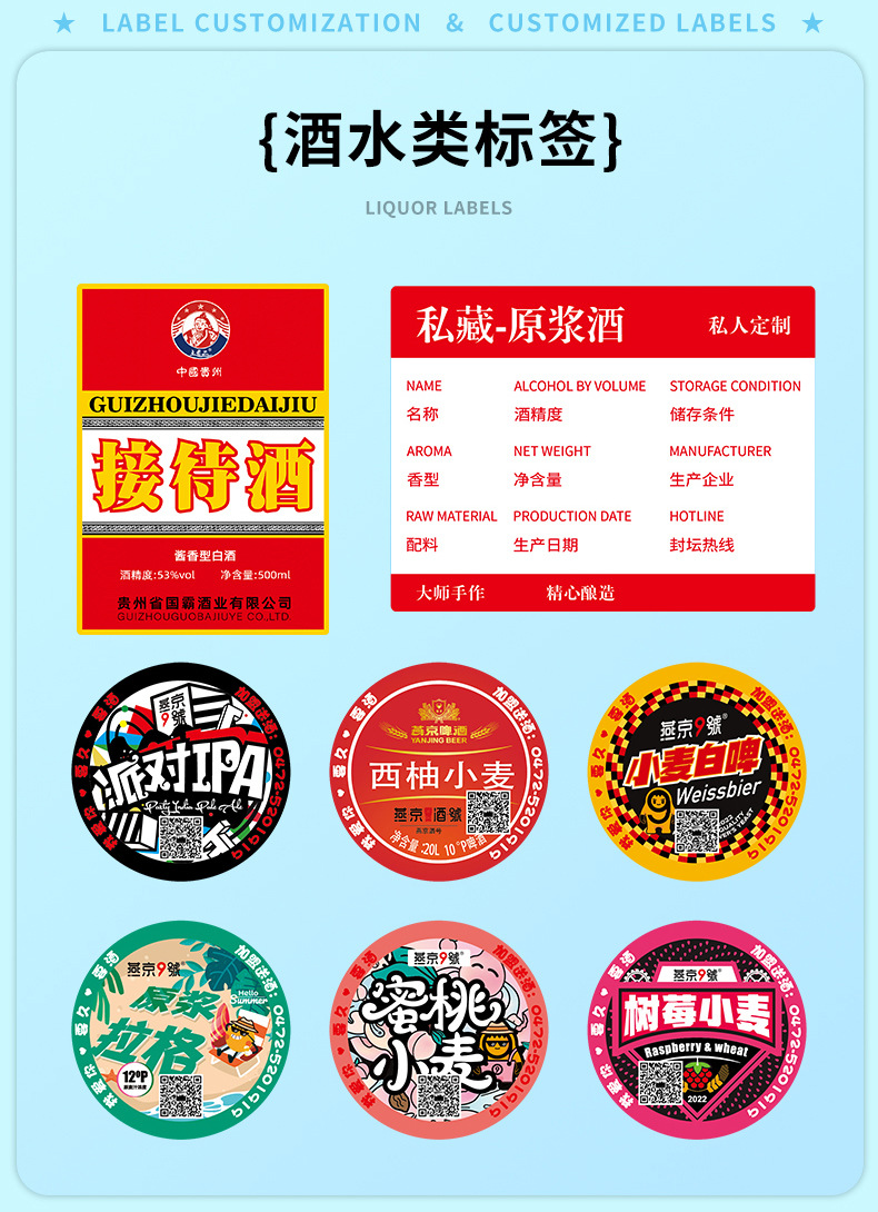 | ámbito de aplicación | Shangchao retail, etiquetas de agua mineral, alcohol, té con leche |