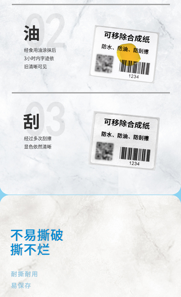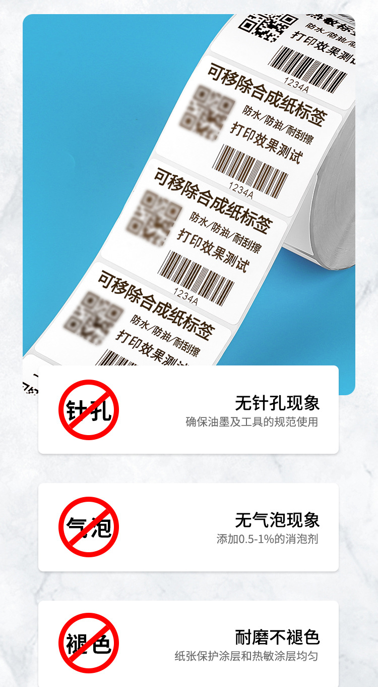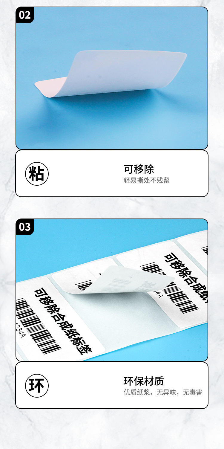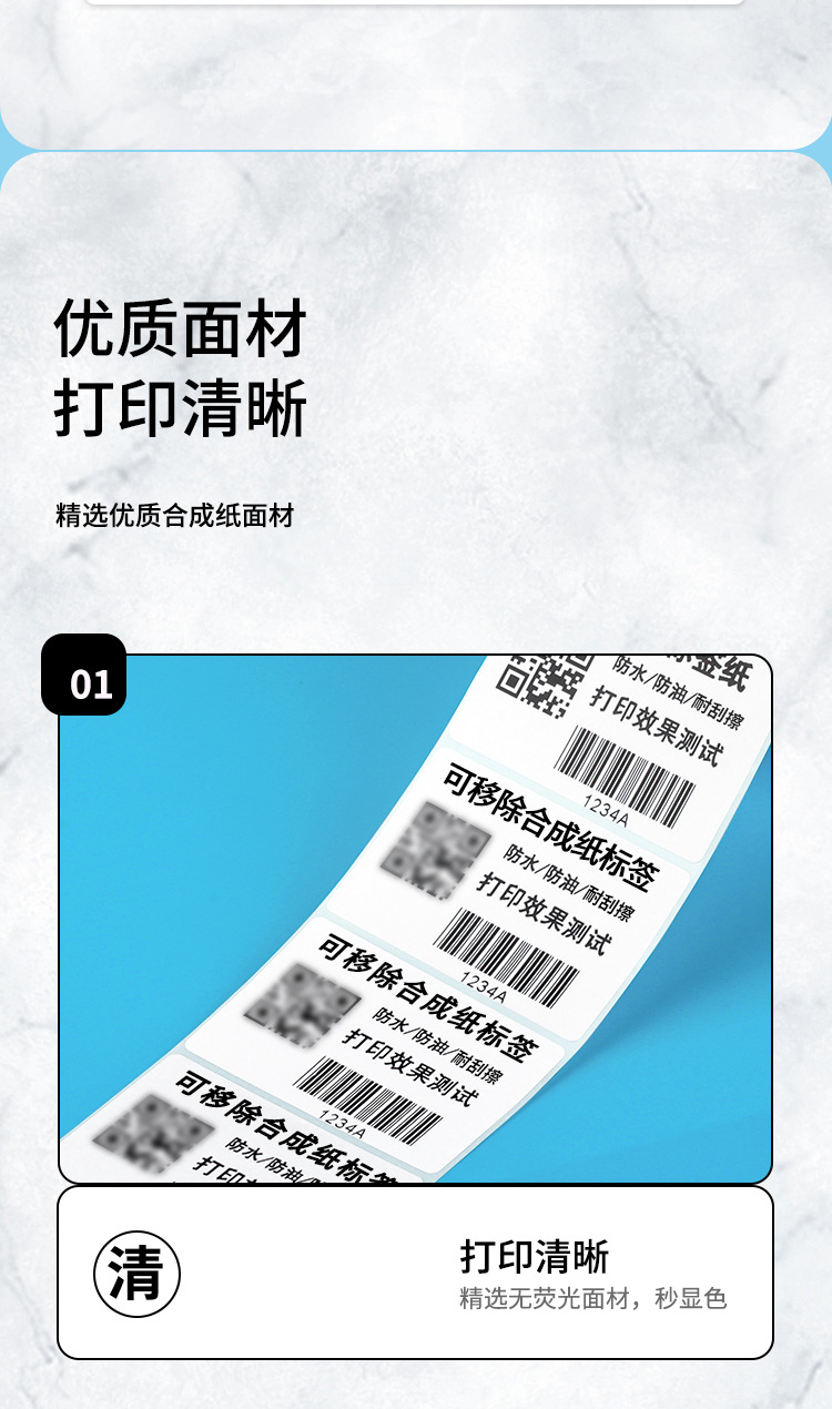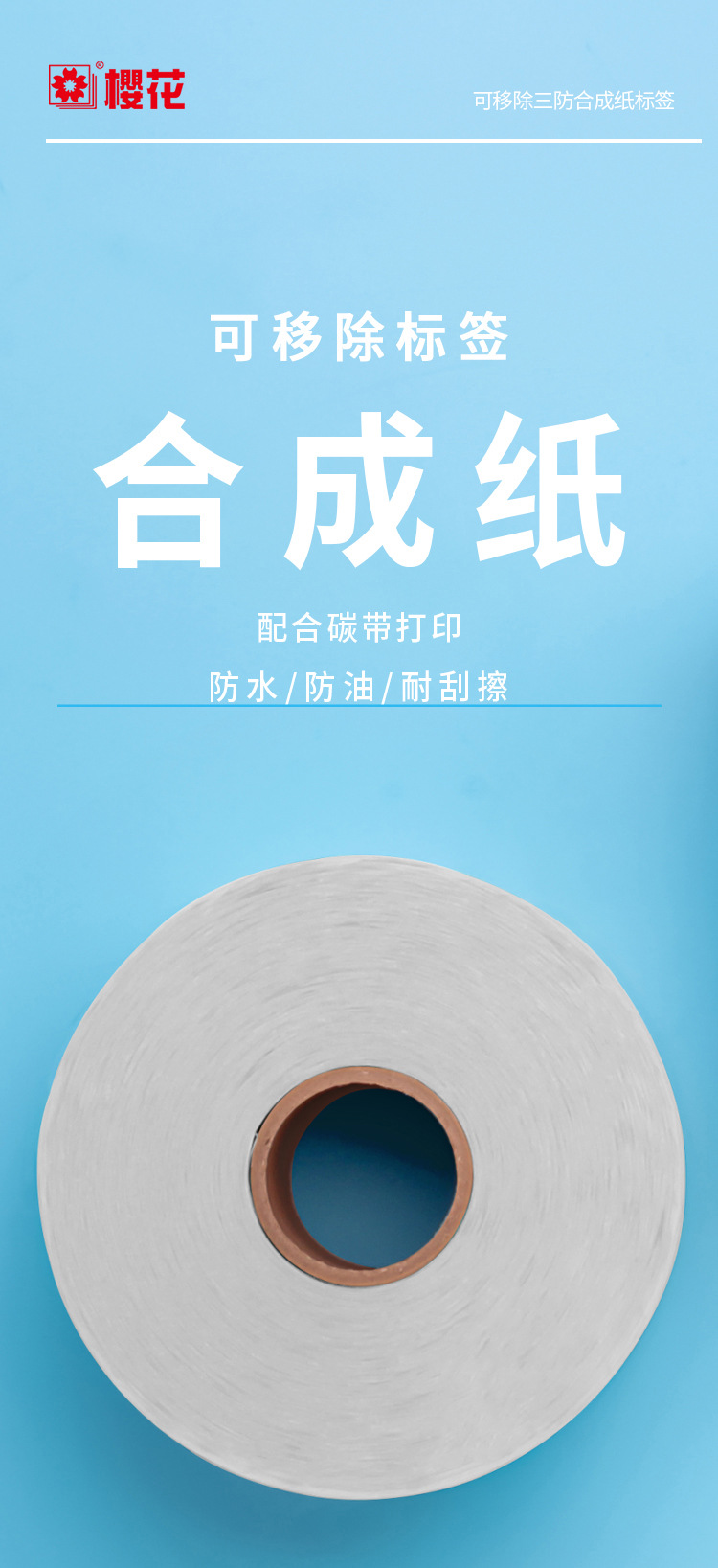 Flor de cerezo etiqueta autoadhesiva papel extraíble Etiqueta de papel sintético a prueba de rasgaduras papel de código de barras a prueba de tres fábrica al por mayor