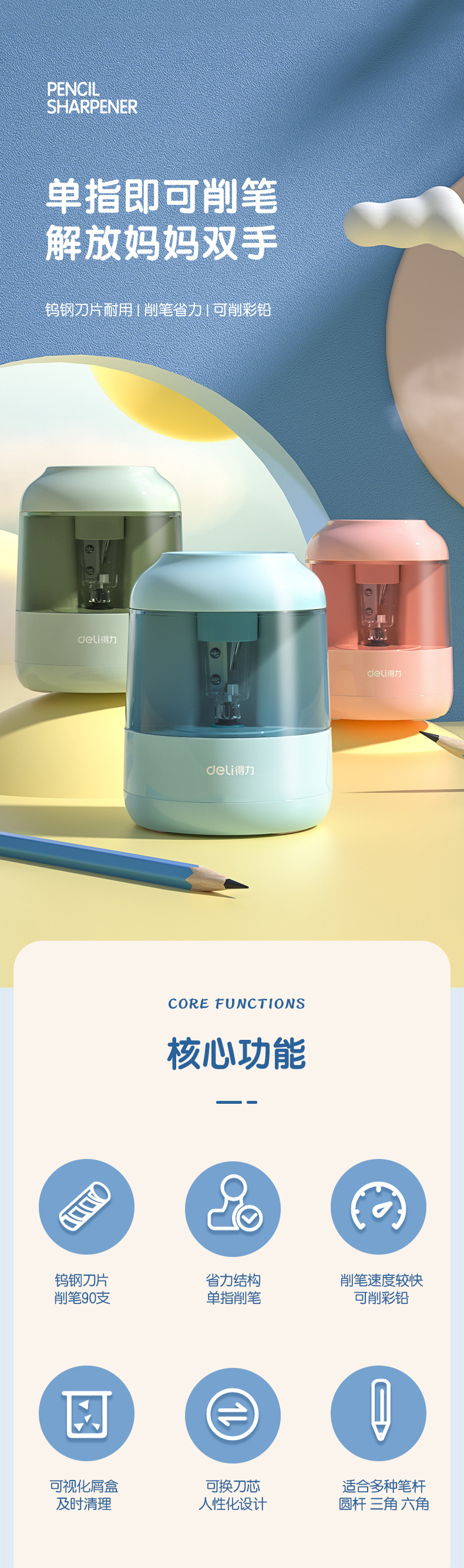 Suministro directo de fábrica 7820-dormitorio sacapuntas estudiante de dibujos animados de aprendizaje de papelería manivela Sacapuntas de lápiz Sacapuntas de aprendizaje