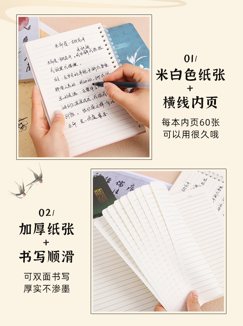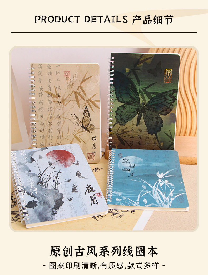 Cuaderno retro de alto valor para estudiantes A5 Cuaderno de estilo antiguo Cuaderno de hojas sueltas de línea horizontal engrosado Bloc de notas al por mayor