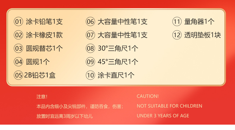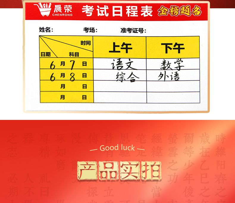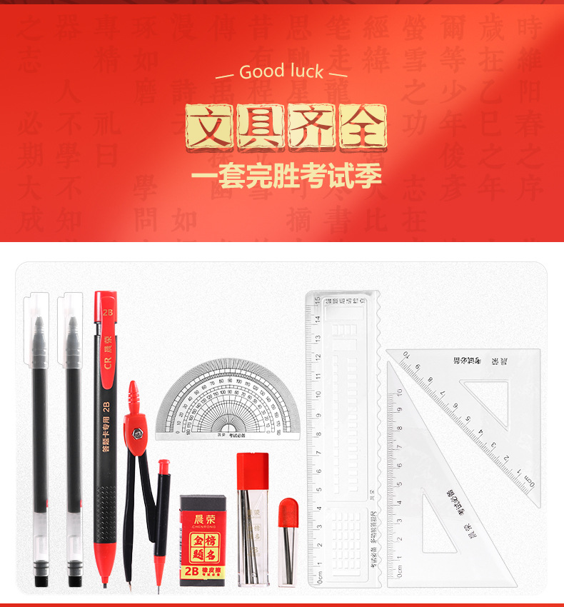 Título de la lista de oro creativo, juego de examen de estudio, examen de ingreso a la escuela secundaria, juego de 12 piezas, regla, juego de papelería especial para examen de ingreso de posgrado al por mayor