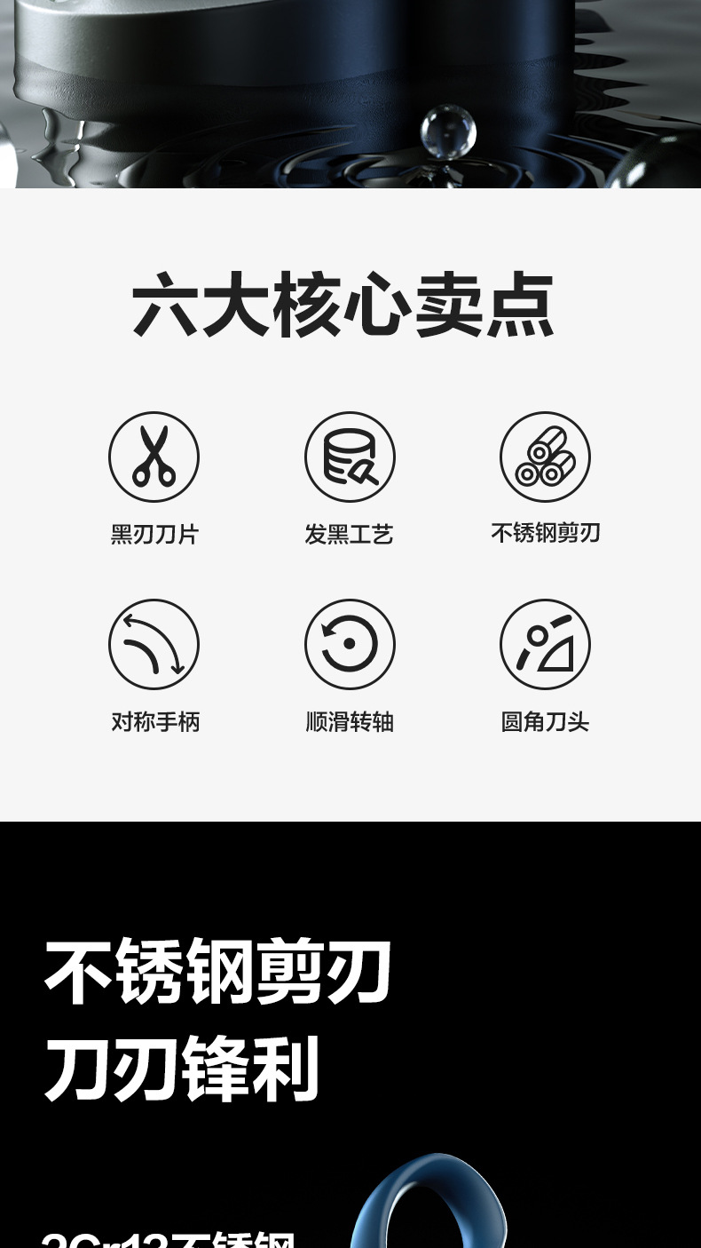 De poder tijeras tijeras de hoja negra tijeras de acero inoxidable tijeras inviscosas tijeras de papel seguras de mano tijeras de papel de oficina exquisita