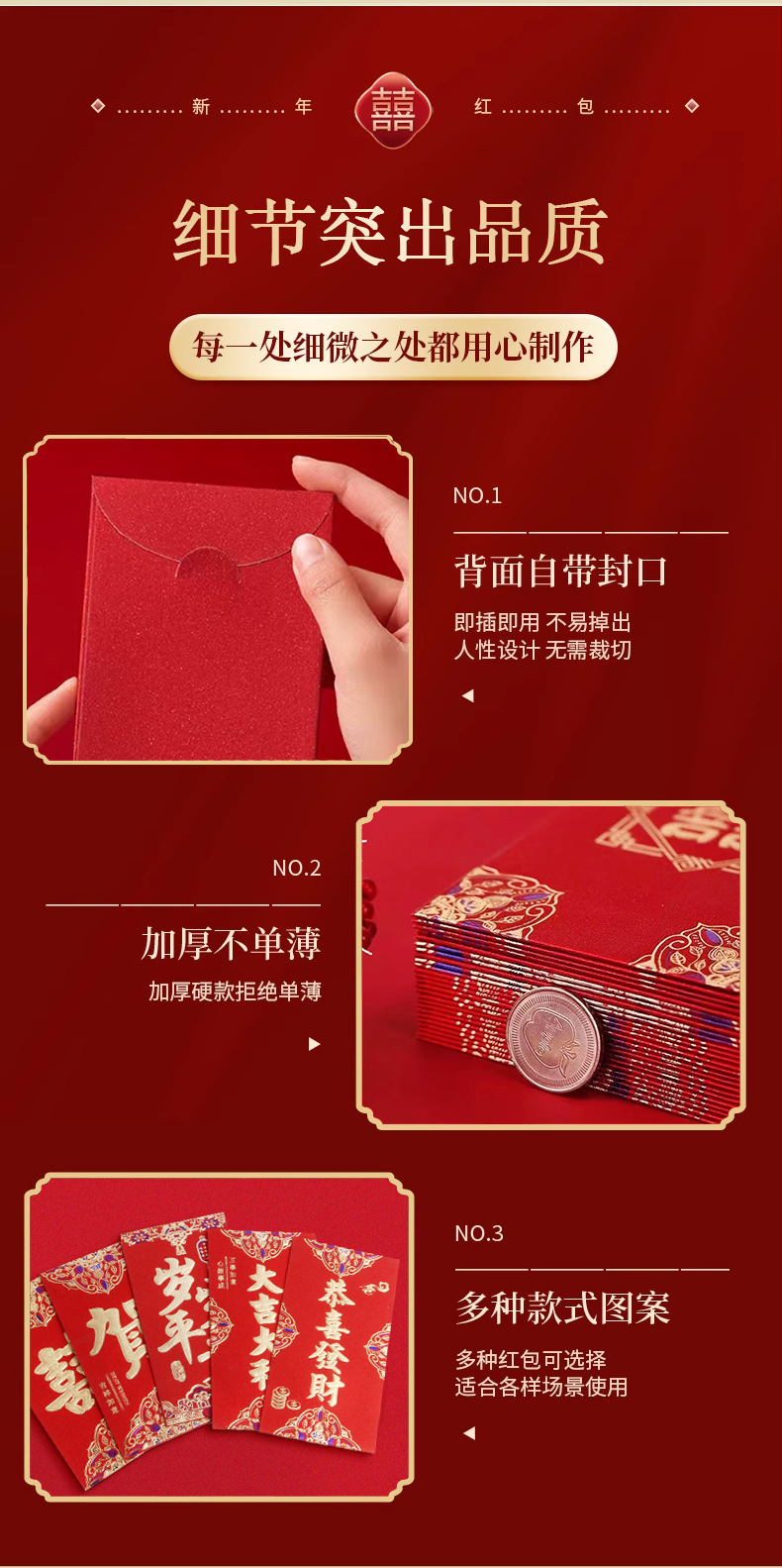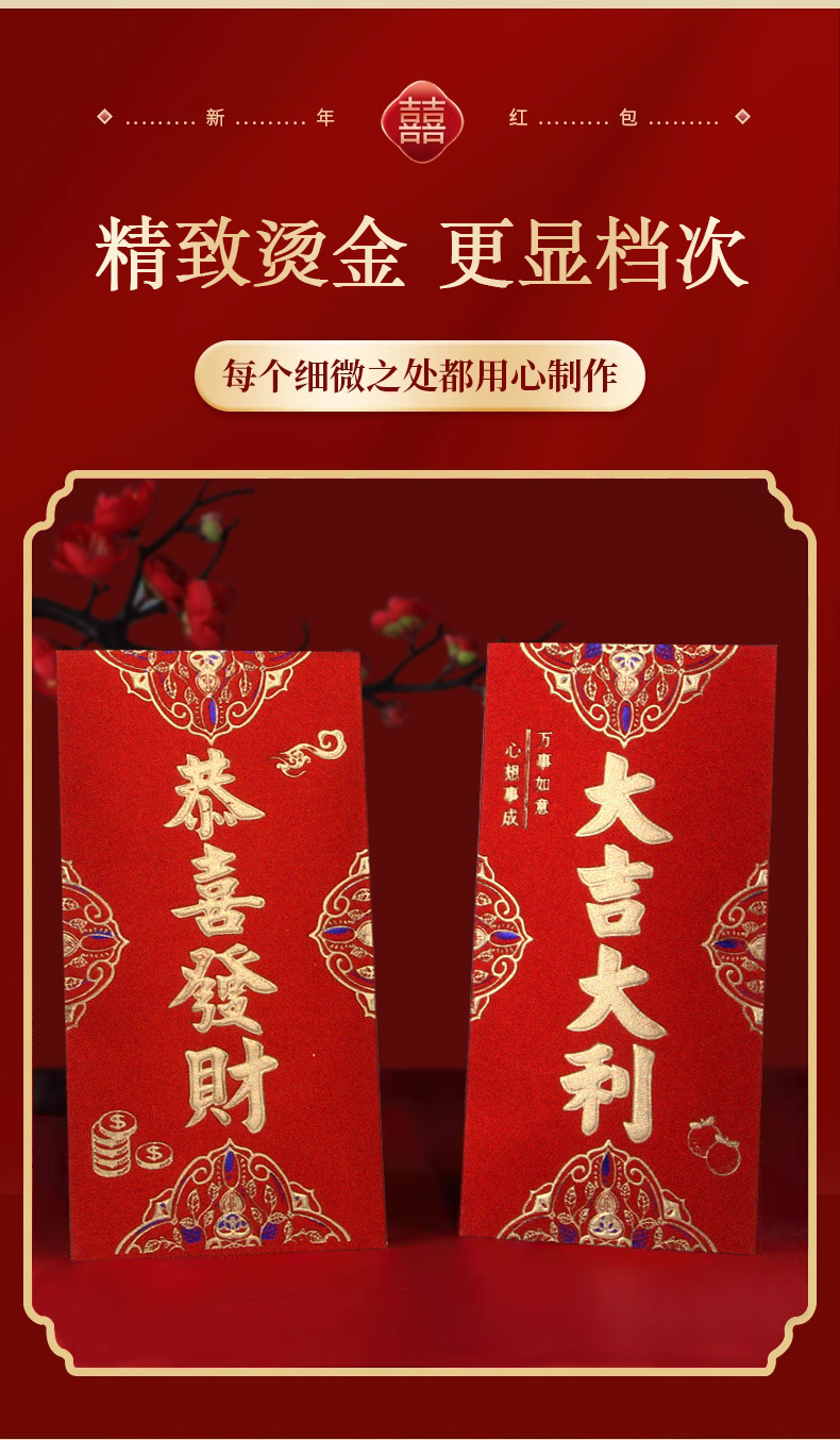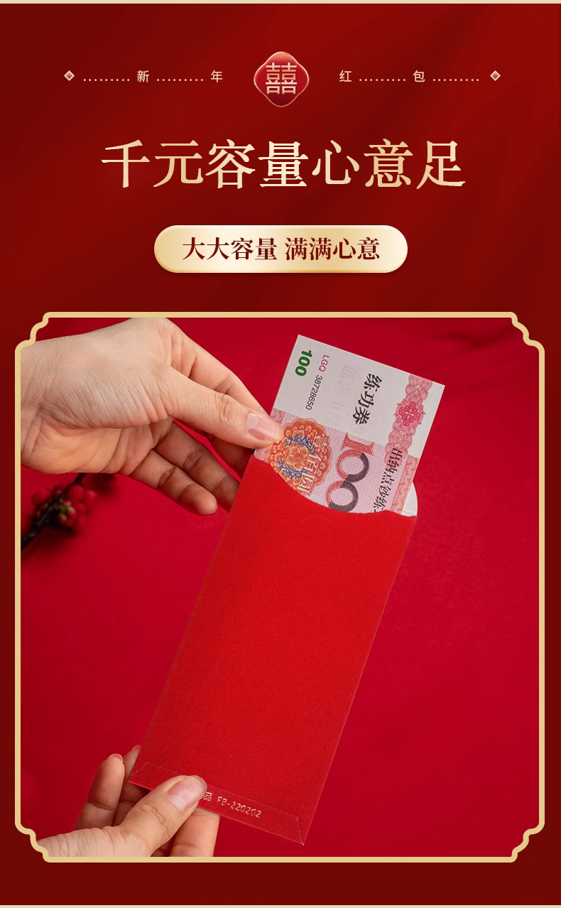 Creativo cartón duro estampado de oro 1000 yuanes sobre rojo grande grande es un sello de boda del Festival de Primavera especial bolsa de Año Nuevo al por mayor