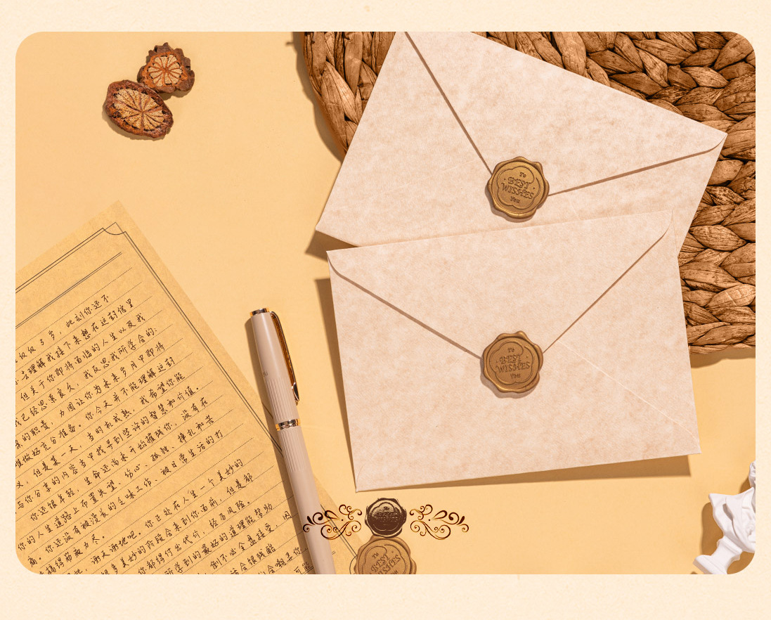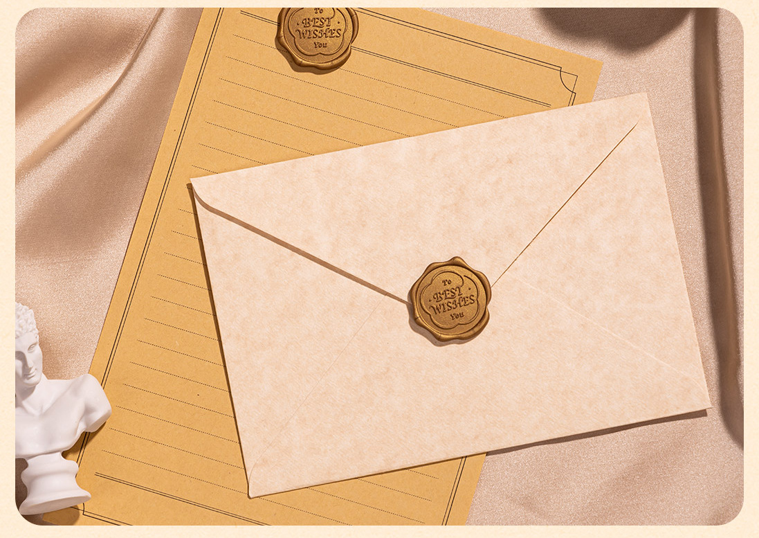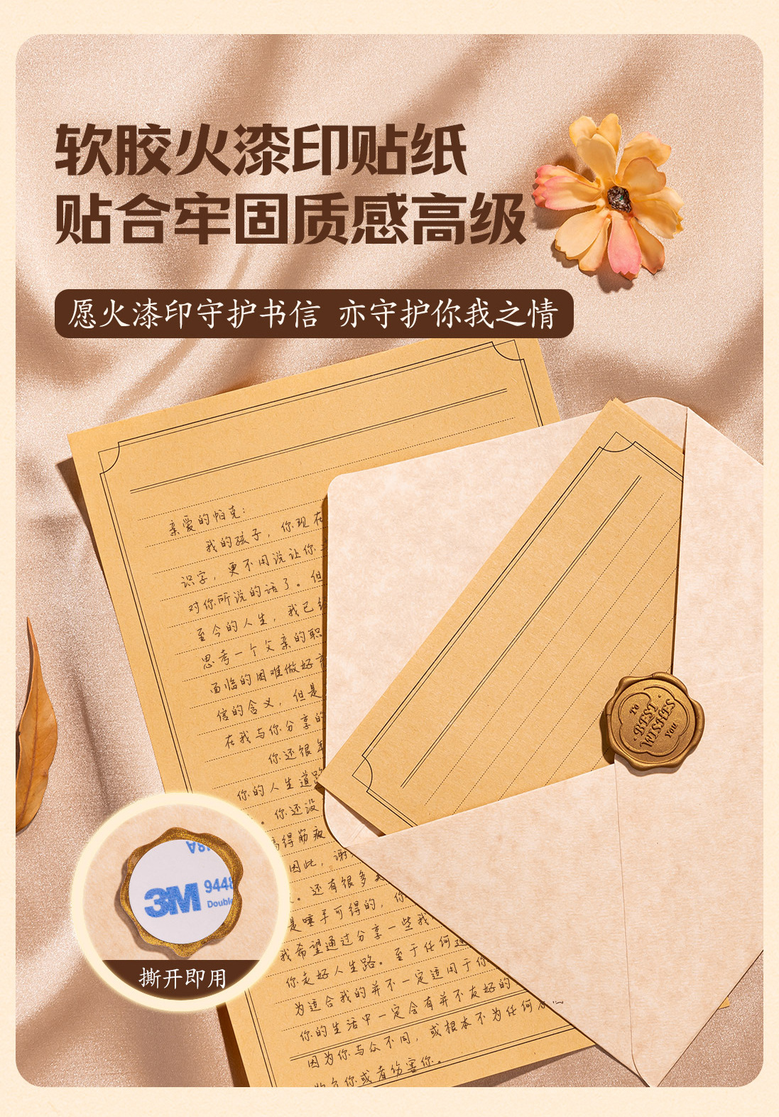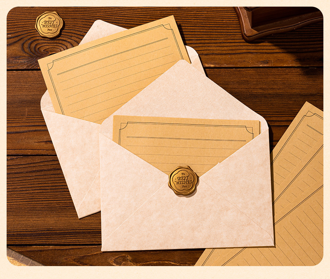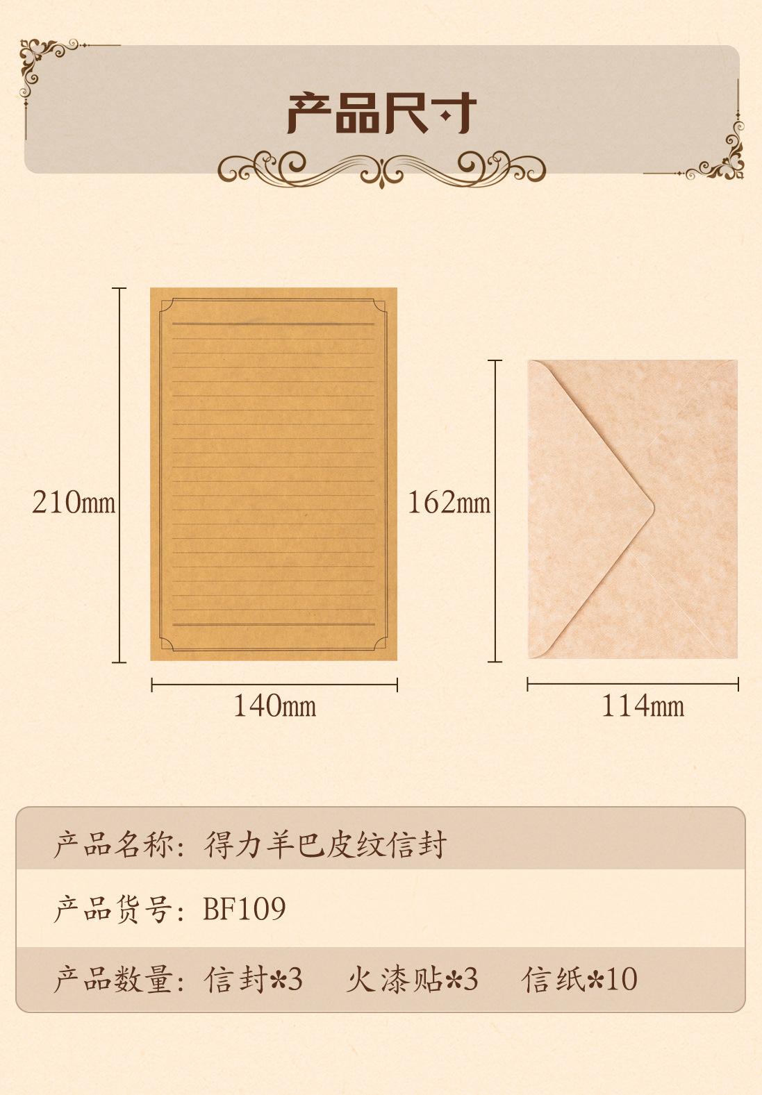 Patrón de piel de oveja seleccionado [primeros en adoptar]-Sobres * 3 Pegatinas lacadas * 3 Papel de carta * 10
