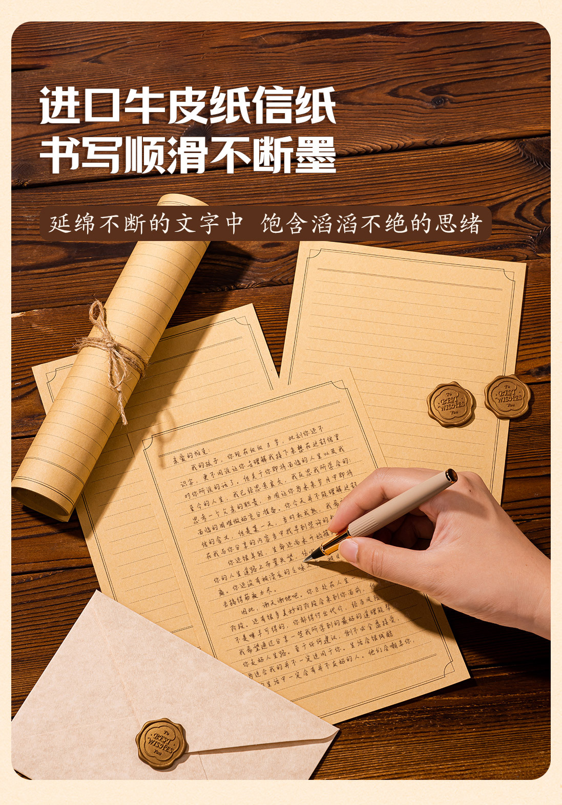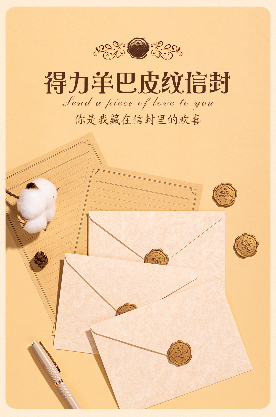 Deli Retro Sheep Pa Patrón de piel Juego de papel de carta gruesa sobre papel kraft más estilo ins Carta de amor literaria Tarjeta de felicitación de pareja