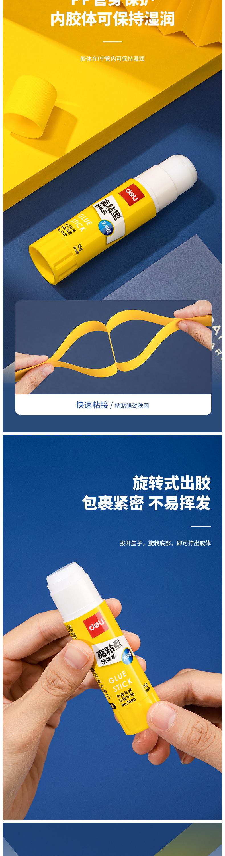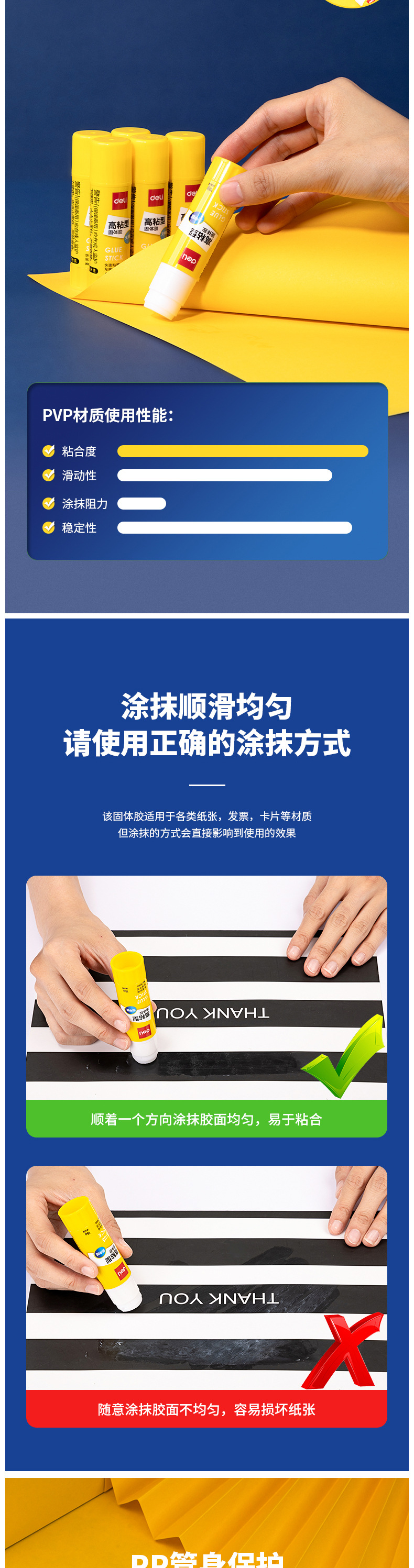 Déli 6370 adhesivo 15g pegamento sólido PVP gran tamaño de oficina finanzas niños jardín de infantes mano mayorista