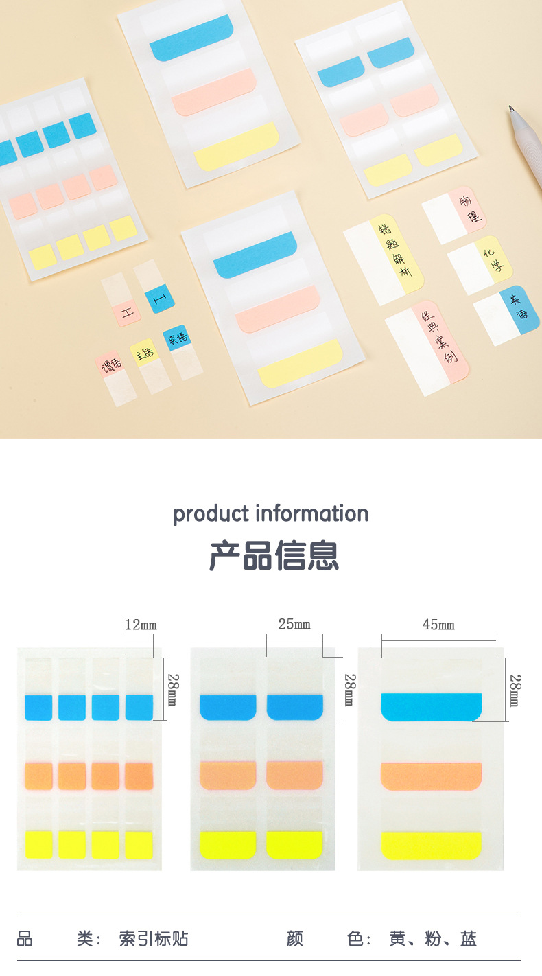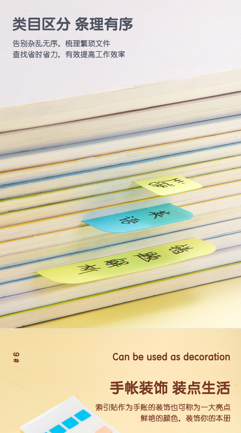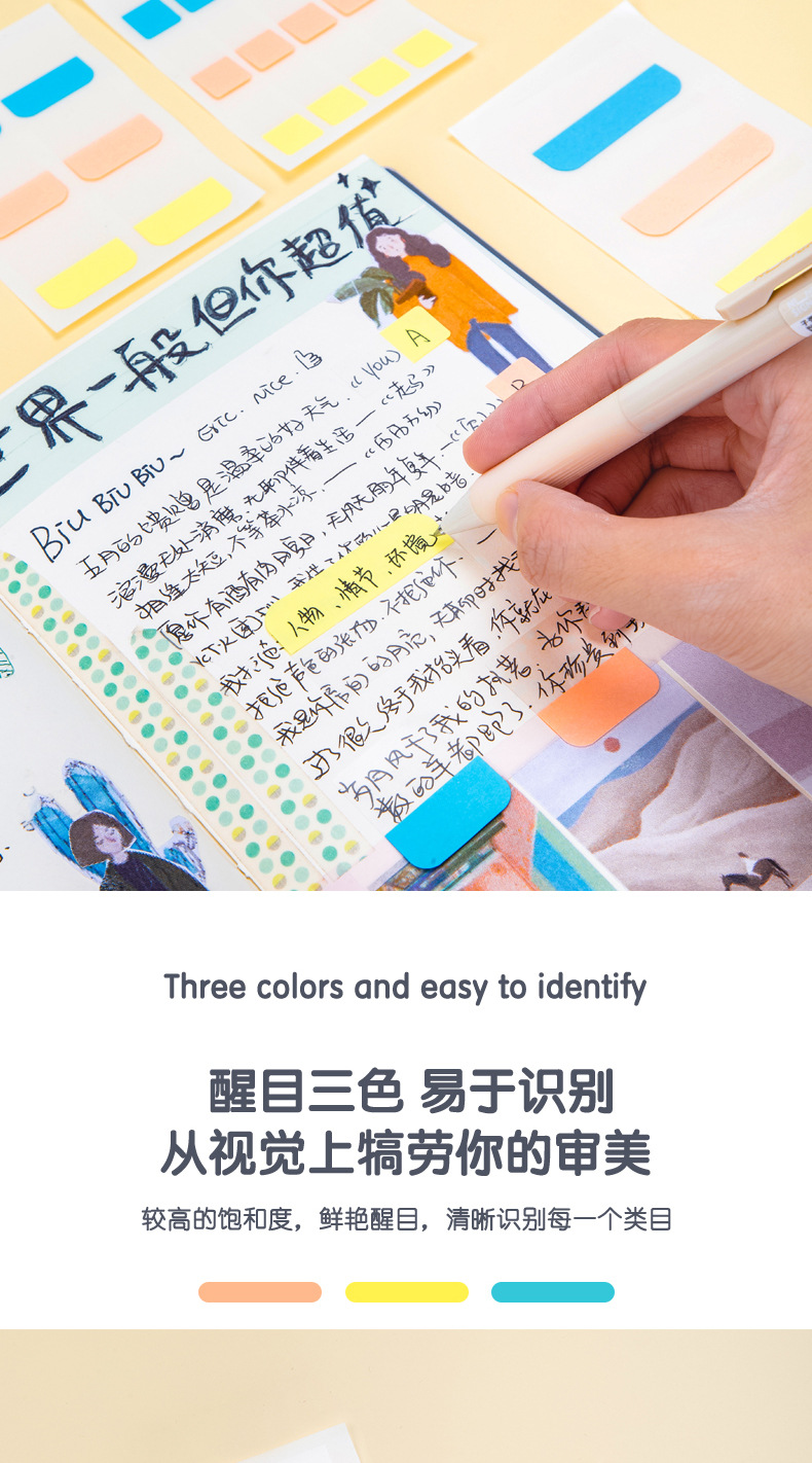 Etiquetas engomadas del índice etiquetas engomadas de la etiqueta de la paginación de la tarjeta pequeña se pueden escribir notas pegajosas estudiantes utilizan las etiquetas engomadas fluorescentes del indicador de la marca
