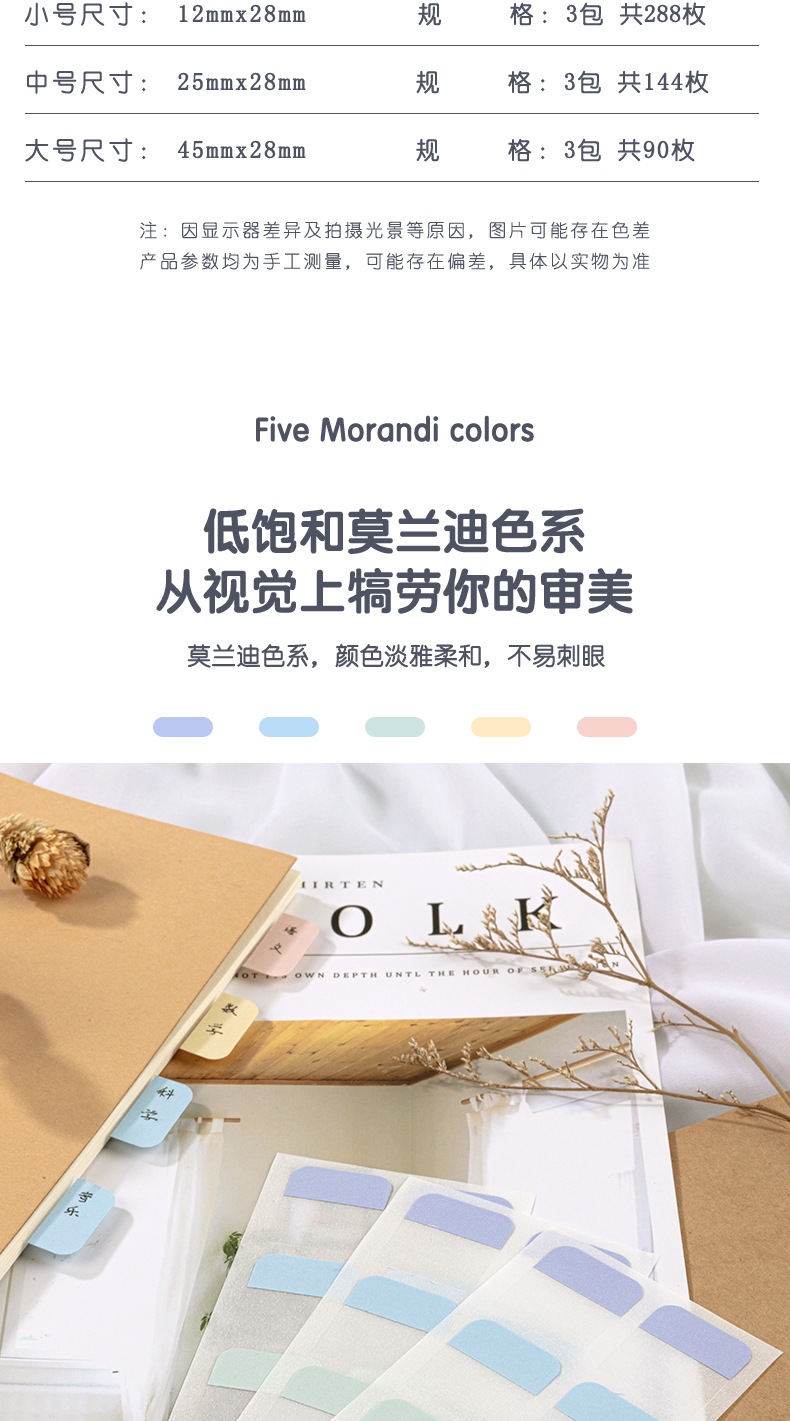 Etiquetas engomadas simples del índice del color de Morandi notas pegajosas para los estudiantes