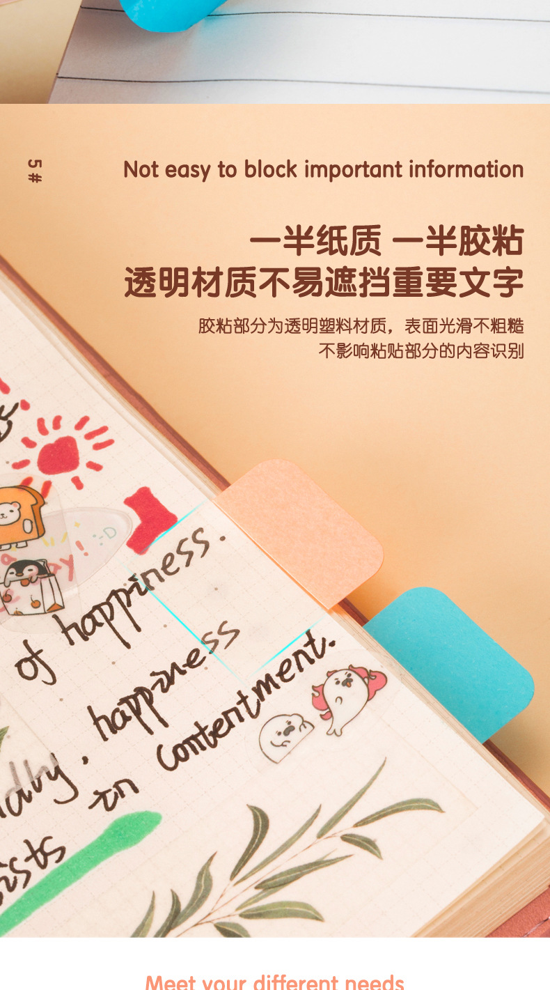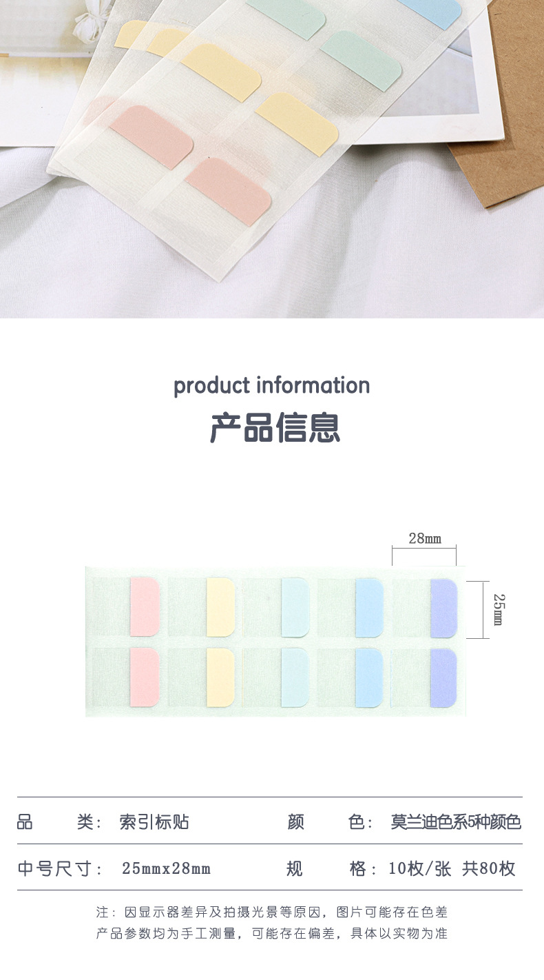 En stock Morandi color nota pegatinas transparente PET índice pegatinas regla marcador impresión N veces pegatinas al por mayor