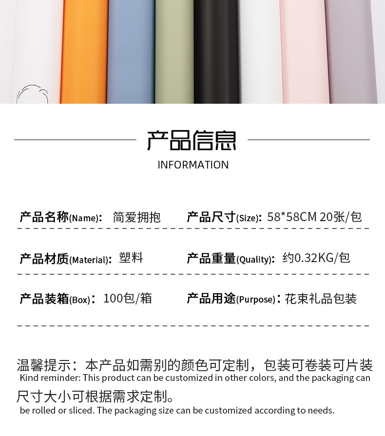 | Modelo de especificación | Negro mate [Jane Eyre abraza 20 hojas]; 56*56CM(± 1CM)/hoja,Blanco mate [Jane Eyre abraza 20 hojas]; 56*56CM(± 1CM)/hoja,Oro mate [Jane Eyre abraza 20 hojas]; 56*56CM(± 1CM)/hoja,Polen de Sakura [Jane Eyre abraza 20 hojas]; 56*56CM(± 1CM)/hoja,Verde menta [Jane Eyre abraza 20 hojas]; 56*56CM(± 1CM)/hoja,Sweet Orange [Jane Eyre abraza 20 hojas]; 56*56CM(± 1CM)/hoja,Fragrant Taro Purple [Jane Eyre abraza 20 hojas]; 56*56CM(± 1CM)/hoja,Dream Blue [Jane Eyre abraza 20 hojas]; 56*56CM(± 1CM)/hoja |