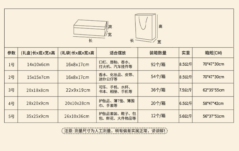 | Modelo de especificación | Negro; No. 1 14*10*6cm,Negro; No. 2 15*15*7cm,Negro; No. 3 20*18*8cm,Negro; No. 4 28*20*9cm,Negro; No. 5 35*25*9cm,Negro; No. 1 Bolsa de regalo No. 2 16*8*17cm,Negro; No. 3 bolsa de regalo 22*10*19cm,Negro; No. 4 bolsa de regalo 20*10*28cm,Negro; bolsa de regalo n. ° 5 26*10*36cm,Negro; Lafite beige 20 gramos,Negro; Lafite negro 20g,Negro; Rafia rosa 20 gramos,Negro; Lafia roja 20g,Negro; Lafite azul 20g,Negro; planeta que fluye 20g,Negro; cadena de luces,Negro; tarjeta de felicitación,Negro; conejo de los deseos,Rosa; No. 1 14*10*6cm,Rosa; No. 2 15*15*7cm,Rosa; No. 3 20*18*8cm,Rosa; No. 4 28*20*9cm,Rosa; No. 5 35*25*9cm,Rosa; No. 1 Bolsa de regalo No. 2 16*8*17cm,Rosa; No. 3 bolsa de regalo 22*10*19cm,Rosa; No. 4 bolsa de regalo 20*10*28cm,Rosa; bolsa de regalo n. ° 5 26*10*36cm,Rosa; Lafite beige 20 gramos,Rosa; Lafite negro 20g,Rosa; Rafia rosa 20 gramos,Rosa; Rafia roja 20g,Rosa; Lafite azul 20g,Rosa; planeta de flujo 20g,Rosa; cadena de luces,Rosa; tarjeta de felicitación,Rosa; conejo de los deseos,Rojo anaranjado; No. 1 14*10*6cm,Rojo anaranjado; No. 2 15*15*7cm,Rojo anaranjado; No. 3 20*18*8cm,Rojo anaranjado; No. 4 28*20*9cm,Rojo anaranjado; No. 5 35*25*9cm,Rojo anaranjado; No. 1 No. 2 bolsa de regalo 16*8*17cm,Rojo anaranjado; bolsa de regalo n. ° 3 22*10*19cm,Rojo anaranjado; bolsa de regalo n. ° 4 20*10*28cm,Rojo anaranjado; bolsa de regalo n. ° 5 26*10*36cm,Rojo anaranjado; Lafite beige 20 gramos,Rojo anaranjado; Lafite negro 20g,Rojo anaranjado; Lafite rosa 20g,Rojo anaranjado; Lafite rojo 20g,Rojo anaranjado; Lafite azul 20g,Rojo anaranjado; planeta que fluye 20g,Rojo anaranjado; cadena de luces,Rojo anaranjado; tarjeta de felicitación,Rojo anaranjado; deseo conejo,Rojo; No. 1 14*10*6cm,Rojo; No. 2 15*15*7cm,Rojo; No. 3 20*18*8cm,Rojo; No. 4 28*20*9cm,Rojo; No. 5 35*25*9cm,Rojo; No. 1 Bolsa de regalo No. 2 16*8*17cm,Rojo; No. 3 bolsa de regalo 22*10*19cm,Rojo; No. 4 bolsa de regalo 20*10*28cm,Rojo; bolsa de regalo n. ° 5 26*10*36cm,Rojo; Lafite beige 20 gramos,Rojo; Lafite negro 20g,Rojo; Rafia rosa 20 gramos,Rojo; Lafia roja 20 gramos,Rojo; Lafia azul 20g,Rojo; planeta de flujo 20g,Rojo; cadena de luces,Rojo; tarjeta de felicitación,Rojo; conejo de los deseos,Azul; No. 1 14*10*6cm,Azul; No. 2 15*15*7cm,Azul; No. 5 35*25*9cm,Azul; No. 1 Bolsa de regalo No. 2 16*8*17cm,Azul; No. 3 bolsa de regalo 22*10*19cm,Azul; No. 4 bolsa de regalo 20*10*28cm,Azul; Bolsa de regalo No. 5 26*10*36cm,Azul; Lafite beige 20 gramos,Azul; Lafite negro 20g,Azul; Rafia rosa 20 gramos,Azul; Lafia roja 20g,Azul; Lafia azul 20g,Azul; planeta de flujo 20g,Azul; cadena de luces,Azul; tarjeta de felicitación,Azul; conejo de los deseos,Patrón blanco; No. 1 14*10*6cm,Patrón blanco; No. 2 15*15*7cm,Patrón blanco; No. 3 20*18*8cm,Patrón blanco; No. 4 28*20*9cm,Patrón blanco; No. 5 35*25*9cm,Patrón blanco; bolsa de regalo No. 1 No. 2 16*8*17cm,Patrón blanco; bolsa de regalo n. ° 3 22*10*19cm,Patrón blanco; bolsa de regalo n. ° 4 20*10*28cm,Patrón blanco; bolsa de regalo n. ° 5 26*10*36cm,Patrón blanco; Lafite beige 20 gramos,Patrón blanco; Lafite negro 20g,Patrón blanco; Rafia rosa 20 gramos,Patrón blanco; Rafia roja 20g,Patrón blanco; Lafite azul 20g,Patrón blanco; planeta que fluye 20 gramos,Patrón blanco; cadena de luces,Patrón blanco; tarjeta de felicitación,Patrón blanco; deseo conejo,Patrón verde; No. 1 14*10*6cm,Patrón verde; No. 2 15*15*7cm,Patrón verde; No. 3 20*18*8cm,Patrón verde; No. 4 28*20*9cm,Patrón verde; No. 5 35*25*9cm,Patrón verde; bolsa de regalo No. 1 No. 2 16*8*17cm,Patrón verde; bolsa de regalo n. ° 3 22*10*19cm,Patrón verde; bolsa de regalo n. ° 4 20*10*28cm,Patrón verde; bolsa de regalo n. ° 5 26*10*36cm,Patrón verde; Lafite beige 20 gramos,Patrón verde; Lafite negro 20g,Patrón verde; Rafia rosa 20 gramos,Patrón verde; Rafia roja 20g,Patrón verde; Lafite azul 20g,Patrón verde; planeta que fluye 20 gramos,Patrón verde; cadena de luces,Patrón verde; tarjeta de felicitación,Patrón verde; deseo conejo |