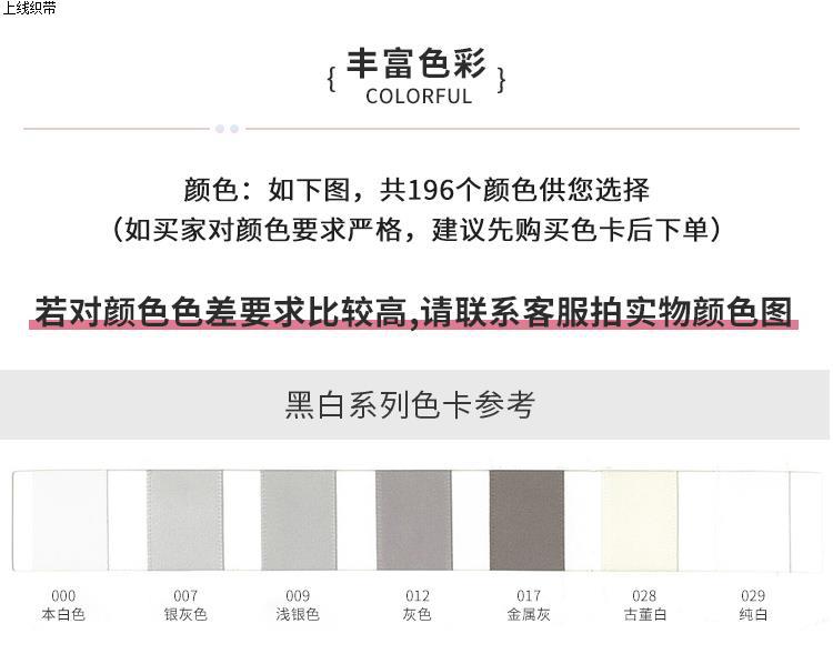 | Modelo de especificación | 5mm300 yardas/rollo de una cara Número de color de nota de pedido,6mm100 yardas/rollo de una cara Número de color de nota de pedido,9 mm100 yardas/rollo de una cara Número de color de nota de pedido,13mm100 yardas/rollo de una cara Número de color de nota de pedido,16mm100 yardas/rollo de una cara Número de color de nota de pedido,Código de un solo lado 19mm100/volumen Notas de pedido Número de color,22mm100 yardas/rollo de una cara Número de color de nota de pedido,Número de color de nota de un solo lado 25mm100 yardas/rollo,28 mm100 yardas/rollo de una cara Número de color de nota de pedido,Número de color de nota de un solo lado 32mm100 yardas/rollo,Código 38mm100 de una cara/volumen Observaciones Número de color * Estándar,Código 50mm100 de una cara/volumen Observaciones Número de color * Estándar,Código de un solo lado 57mm100/volumen Observaciones Número de color * Estándar,63mm100 yardas/rollo de una cara Número de color de nota de pedido,75 mm100 yardas/rollo de una cara Observaciones Número de color * Estándar,Tamaño 89mm100 de un solo lado/volumen Observaciones Número de color * Estándar,100 mm100 yardas/rollo de una cara Observaciones Número de color * Estándar,Servicio al cliente de consulta de precio grande (blanco y negro) * estándar,Seleccione la especificación correspondiente y observe el número de color requerido para realizar el pedido. |