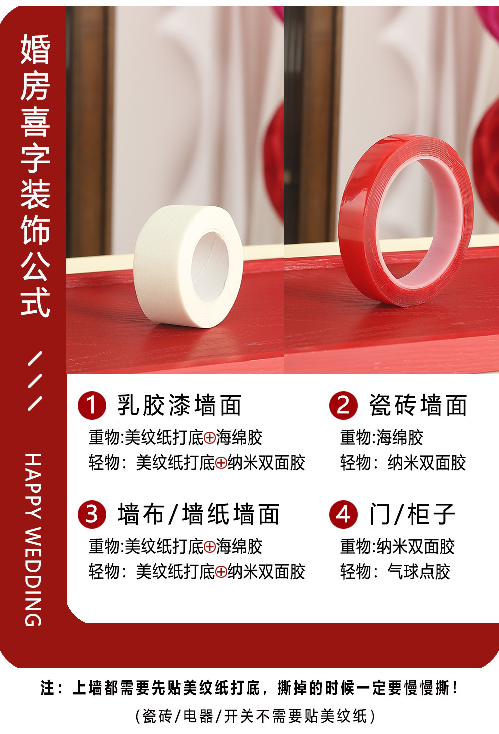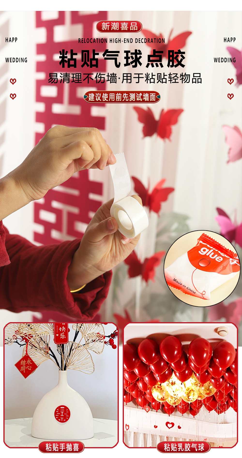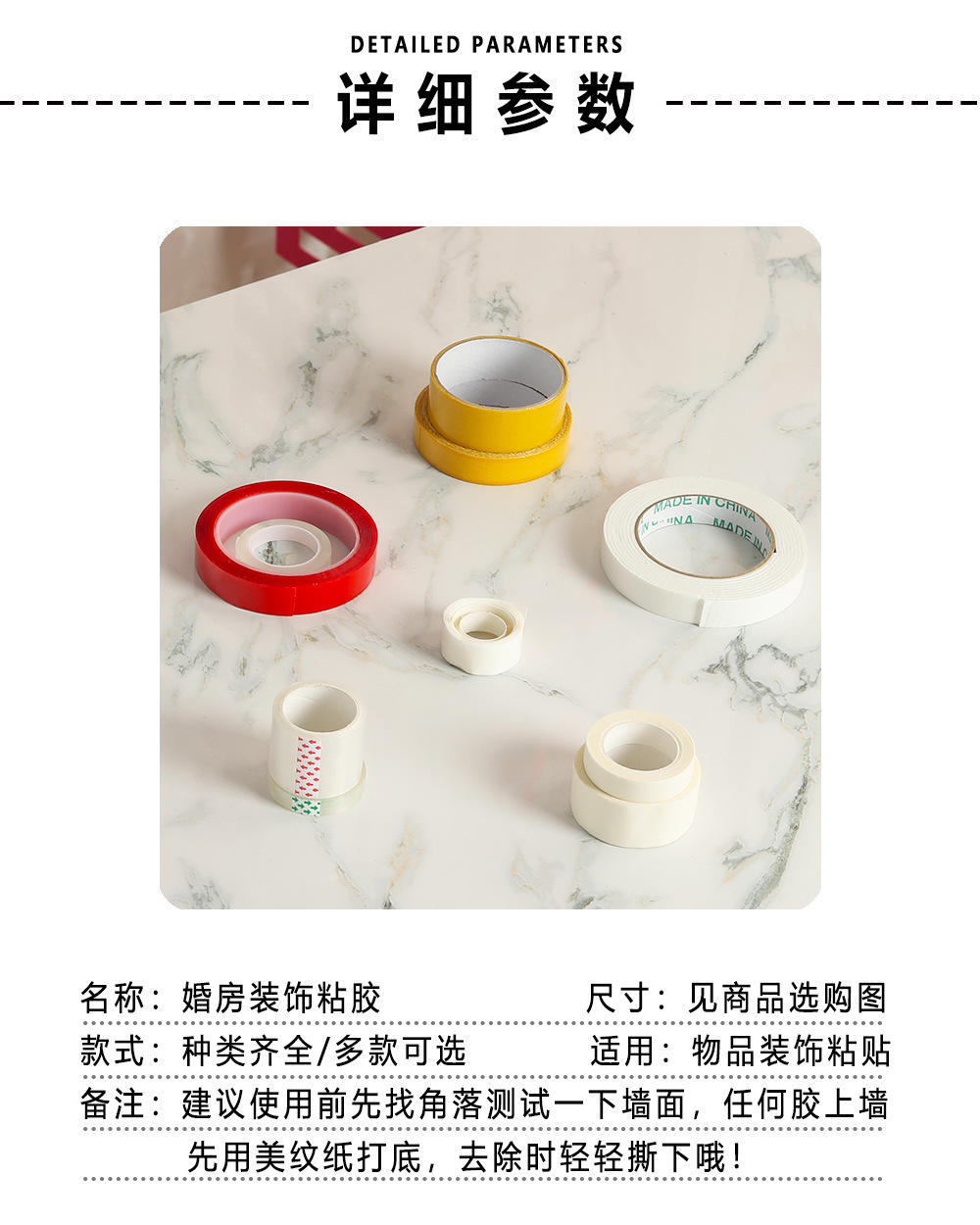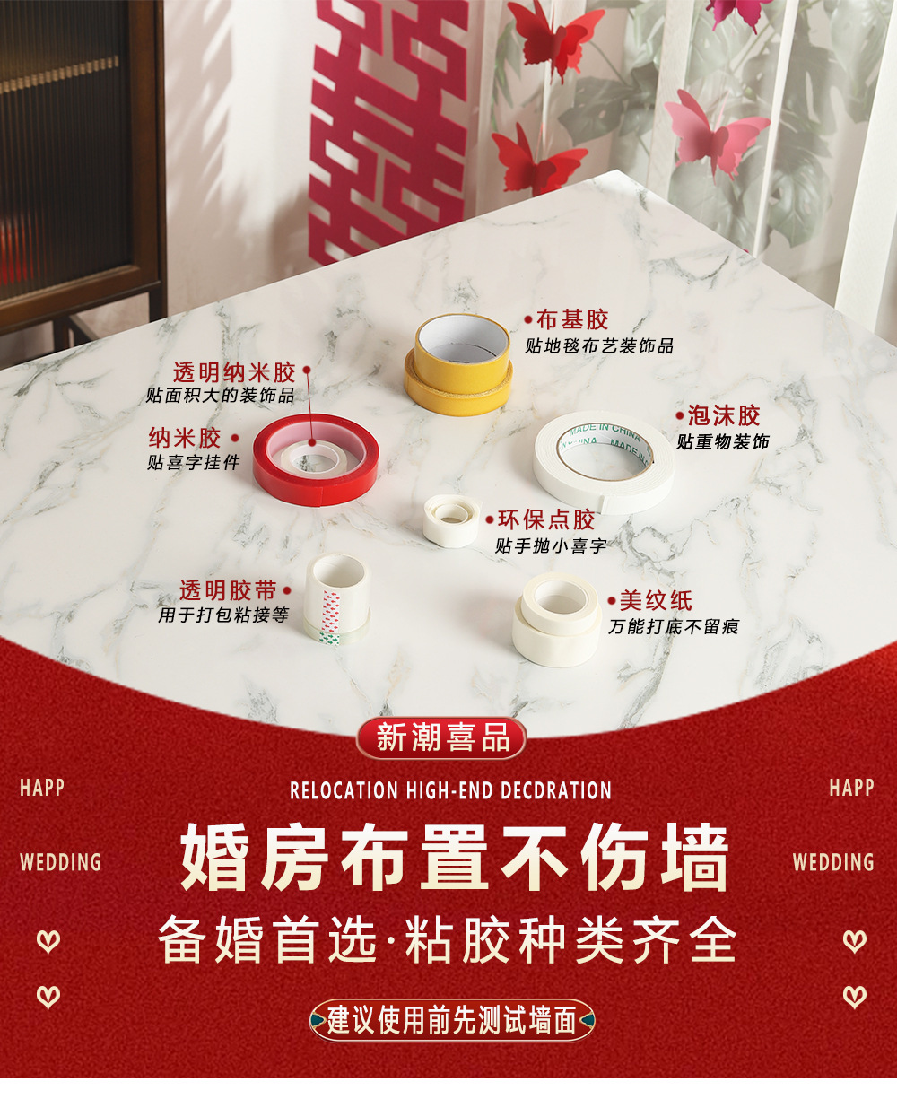 | Especificaciones | Juego de cuatro piezas sin preocupaciones,Juego de seis piezas sin preocupaciones,Papel de textura base (ancho 3cm de largo 20M),Película roja nano pegamento (ancho 2cm largo 3M),Pegamento a base de tela de alta viscosidad (ancho 2cm largo 10M),Pegamento transparente ensanchado (ancho 4cm largo 10M),Pegamento de espuma fuerte (ancho 2cm largo 3M),Punto de pegamento sin costuras (alrededor de 95 puntos),Línea de pesca transparente (15m),Ganchos adhesivos transparentes (5),Bidna de empuje manual (versión mejorada),Cadena de globo (5 m) |