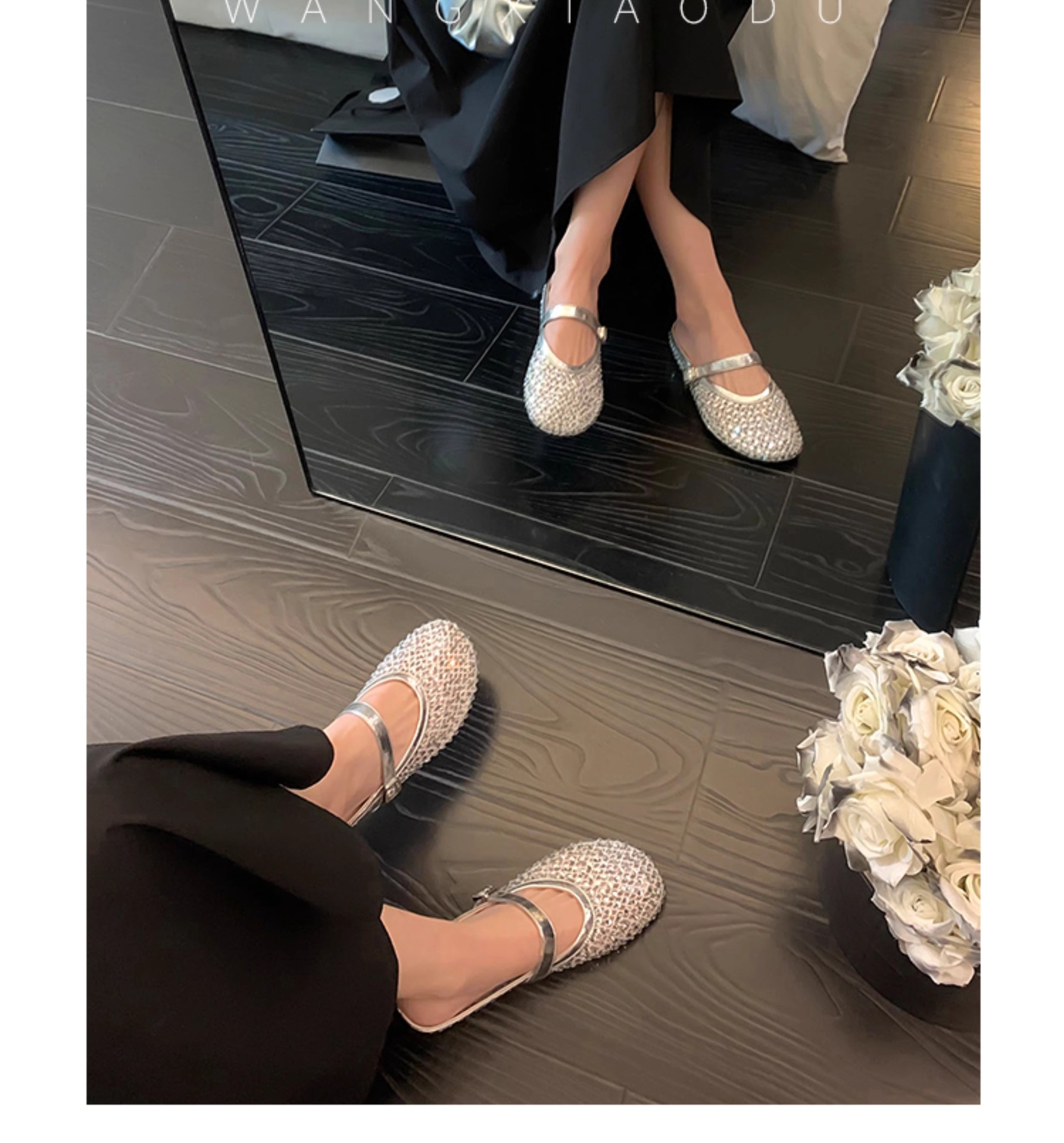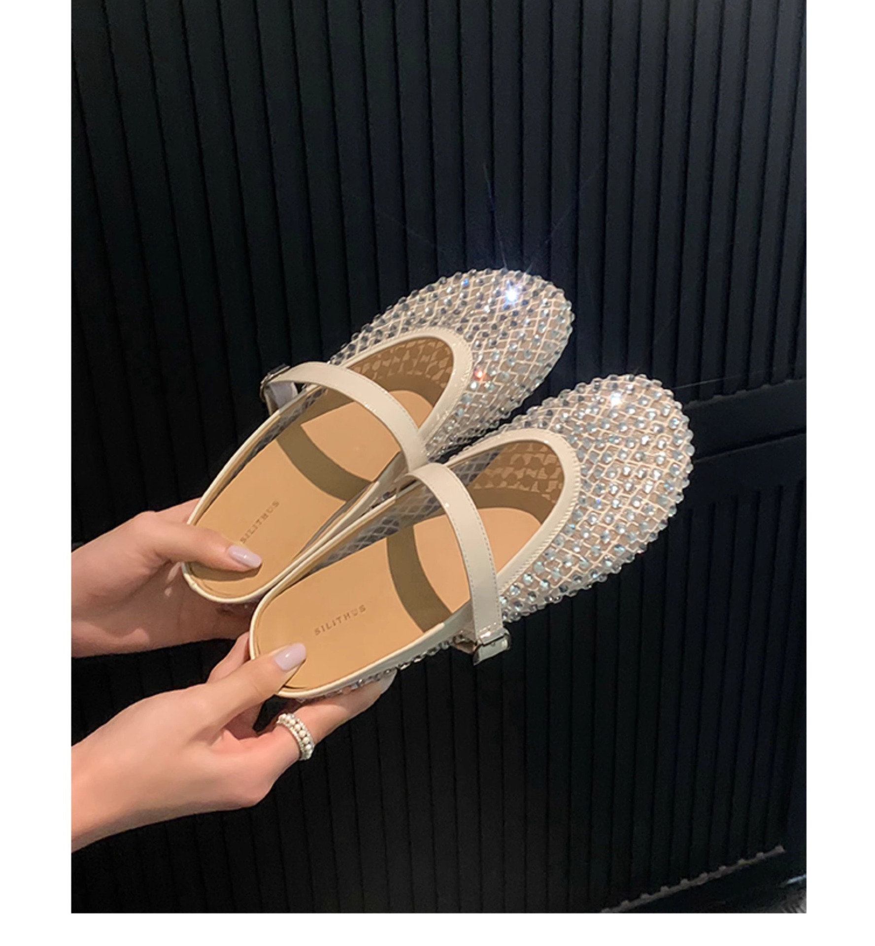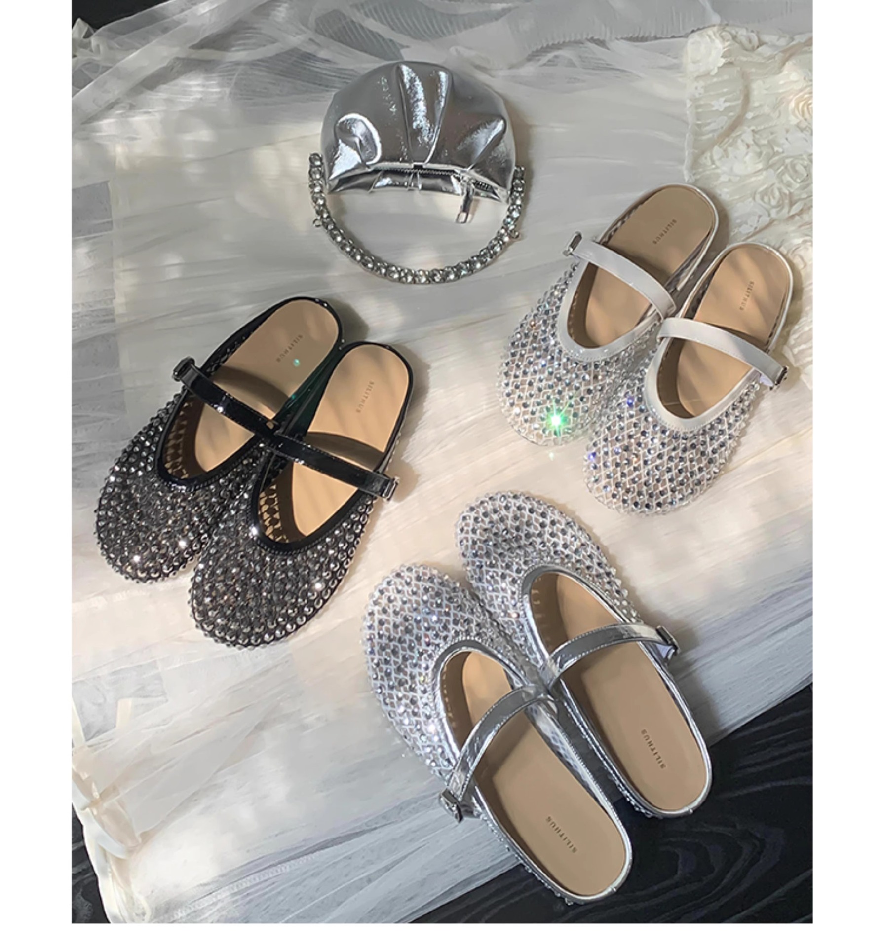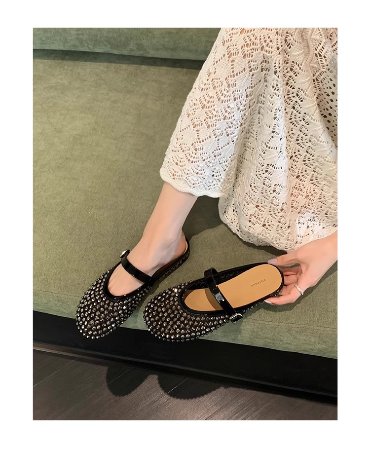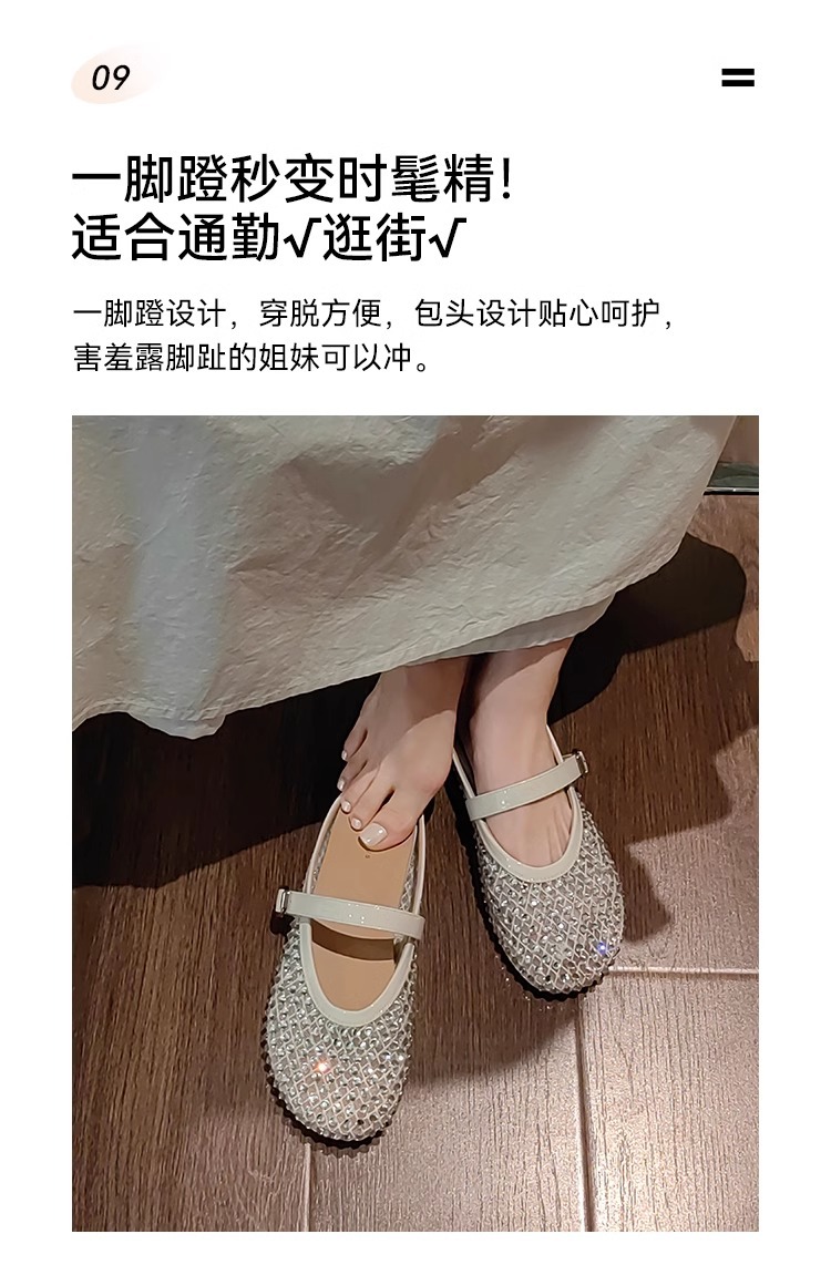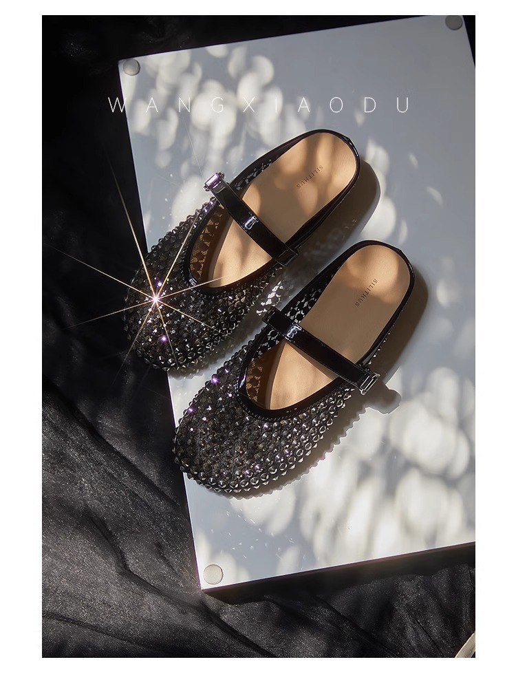[Chao Bounan] Galaxy tejido a mano ● Reducción de edad, diamantes brillantes, arrastre de Baotou, nuevas zapatillas de hadas transpirables de malla de verano para mujer