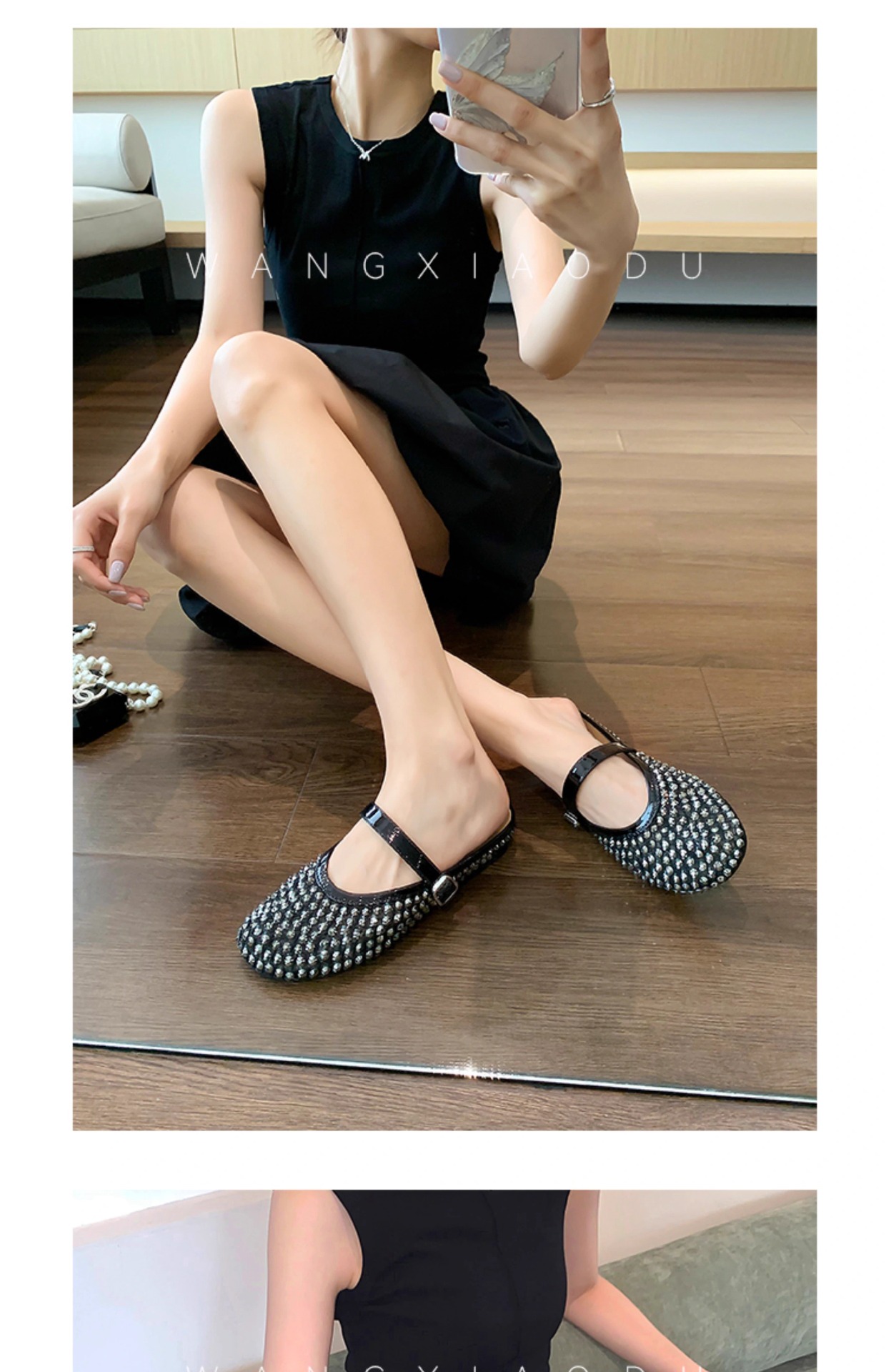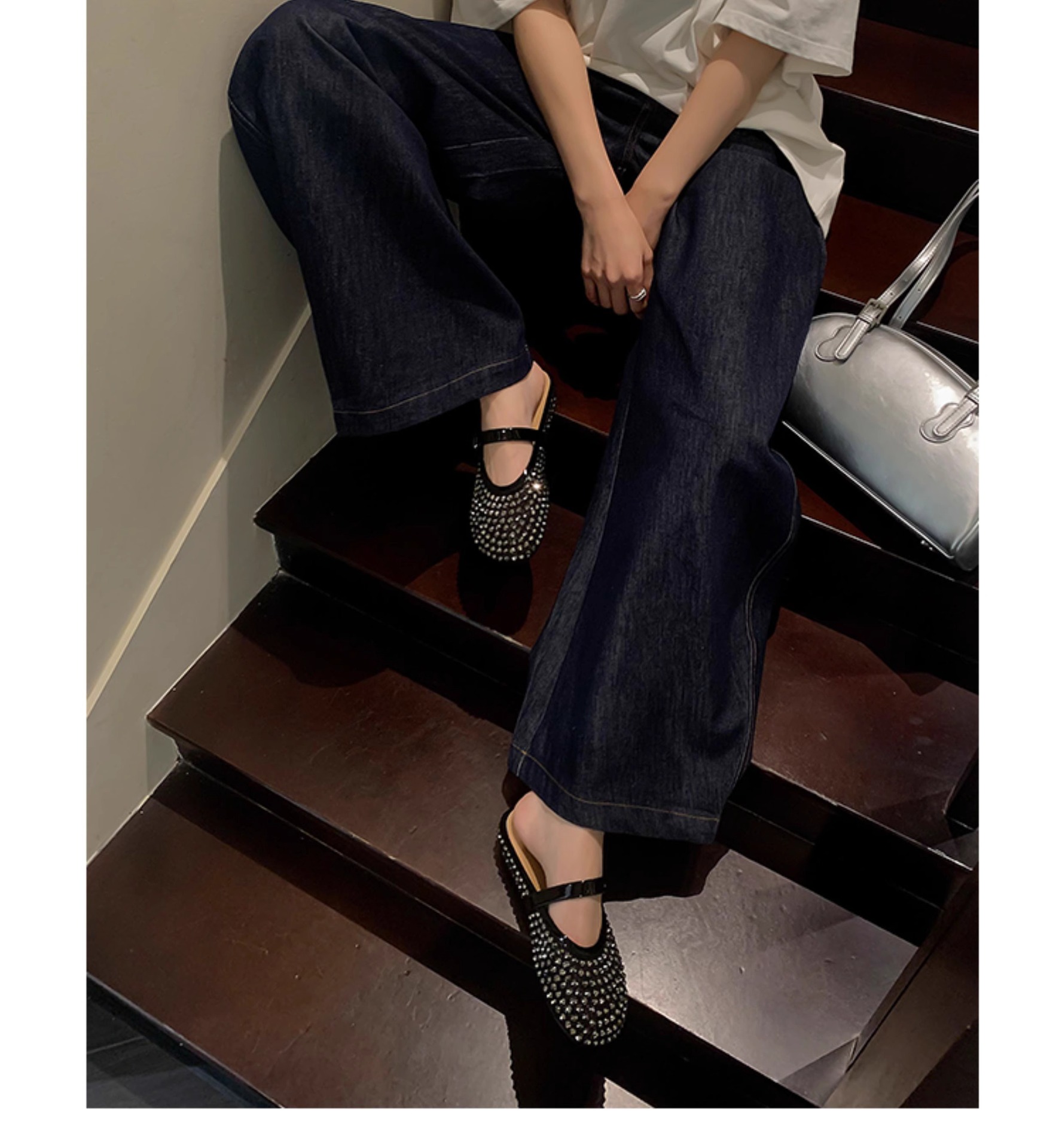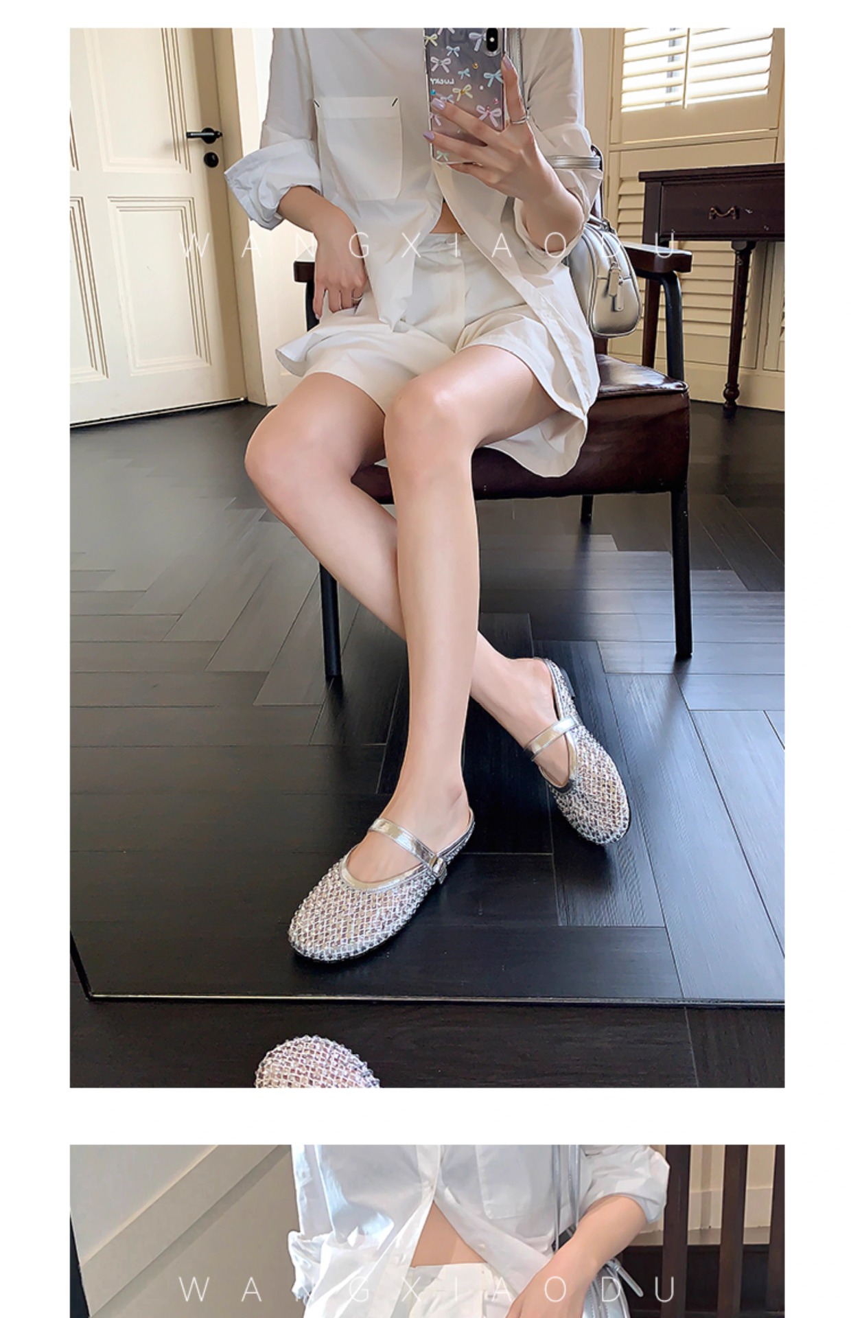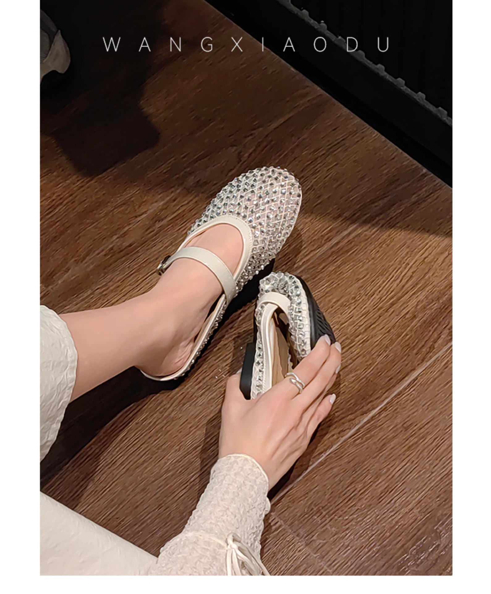 [Chao Bounan] Galaxy tejido a mano ● Reducción de edad, diamantes brillantes, arrastre de Baotou, nuevas zapatillas de hadas transpirables de malla de verano para mujer