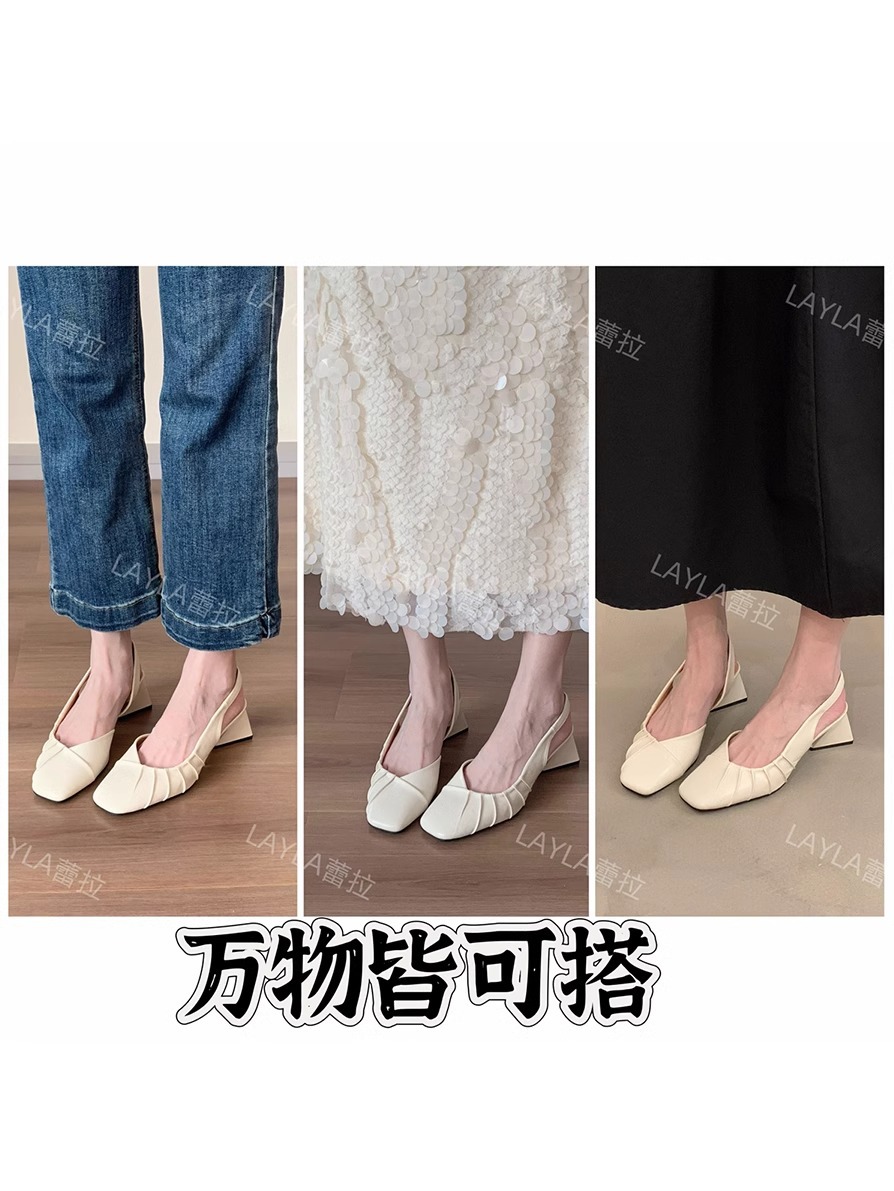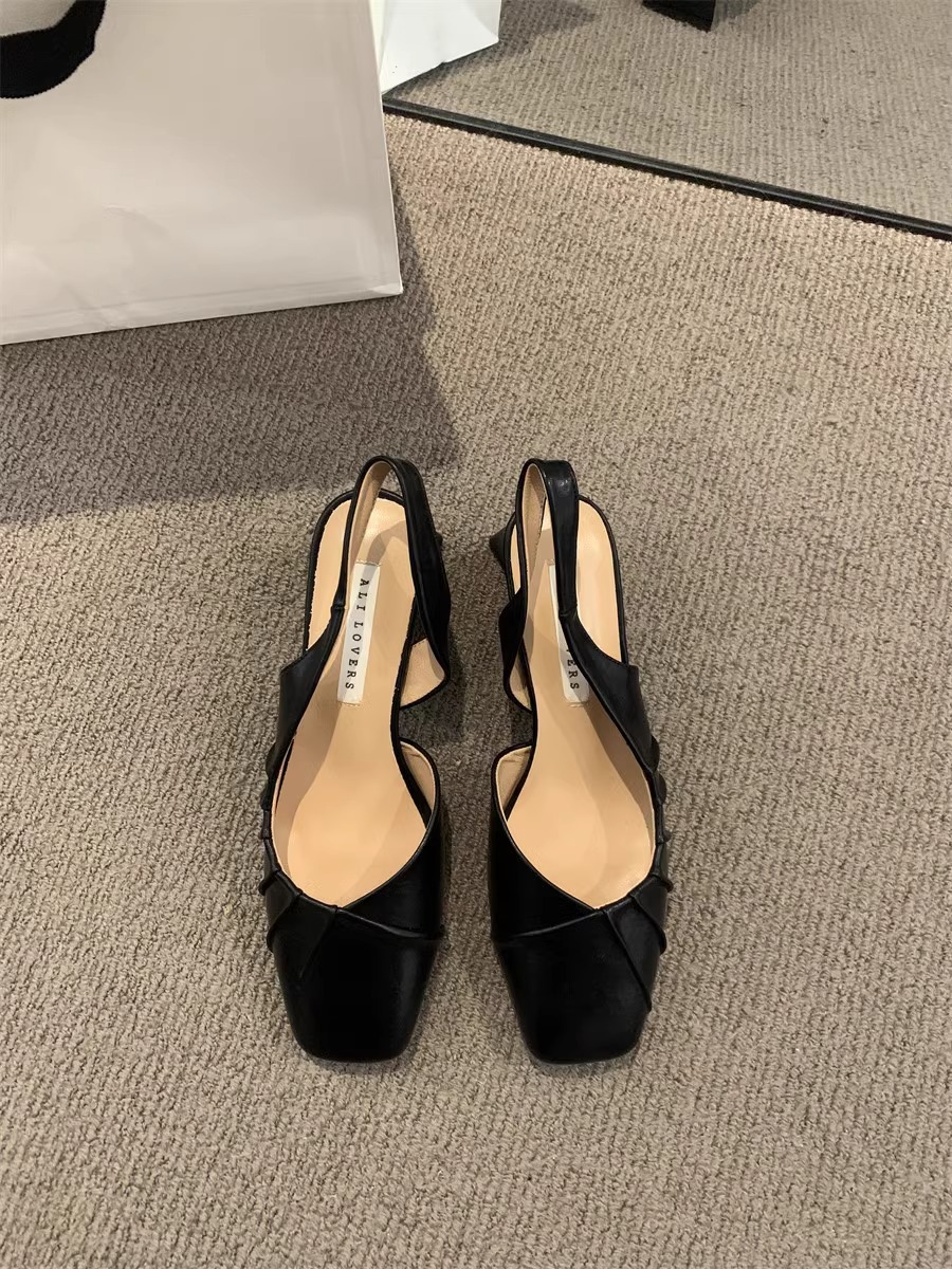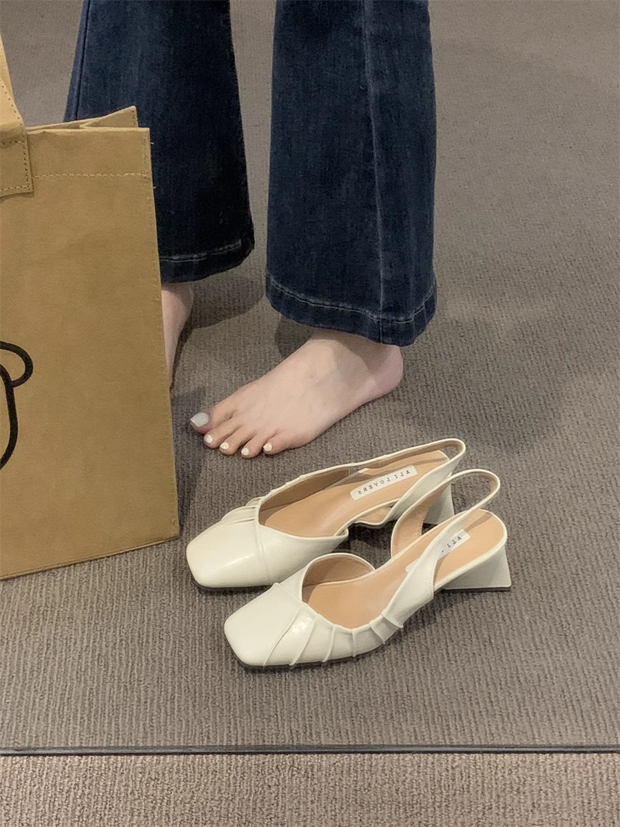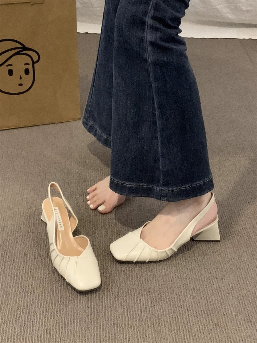 2024 primavera y verano nuevo estilo de tacón alto Baotou sandalias vacías trasero zapatos de mujer tacón grueso boca baja estilo suave francés zapatos individuales zapatos de mujer