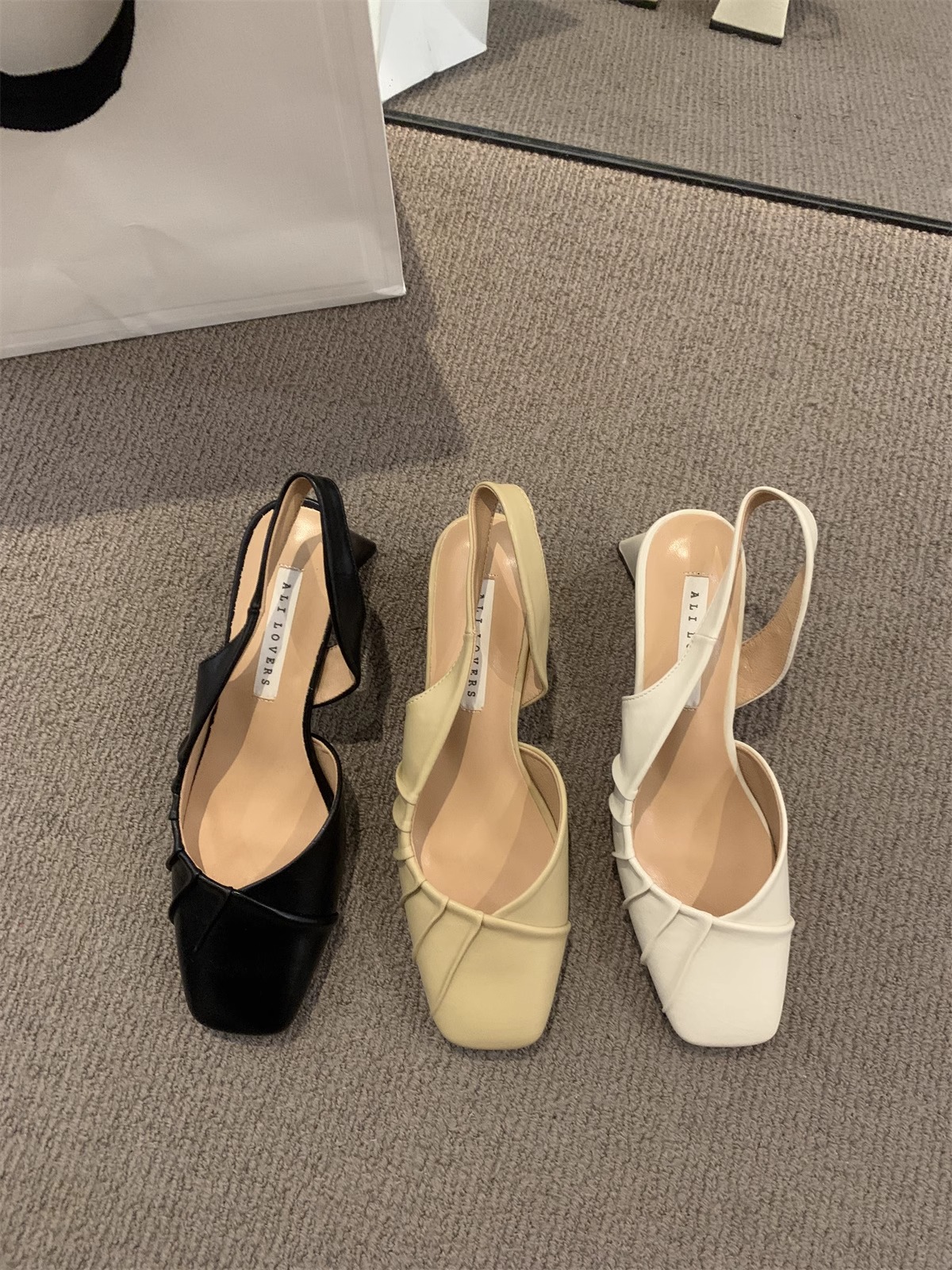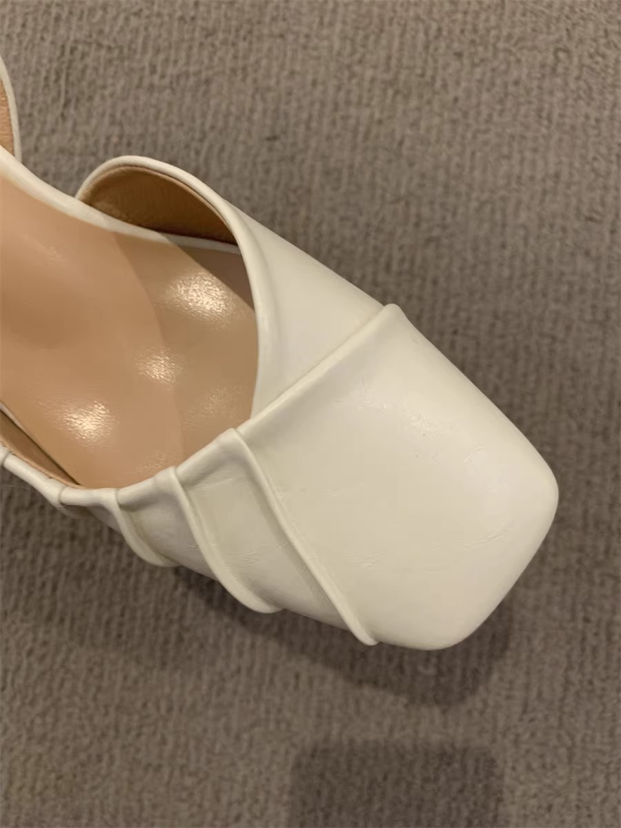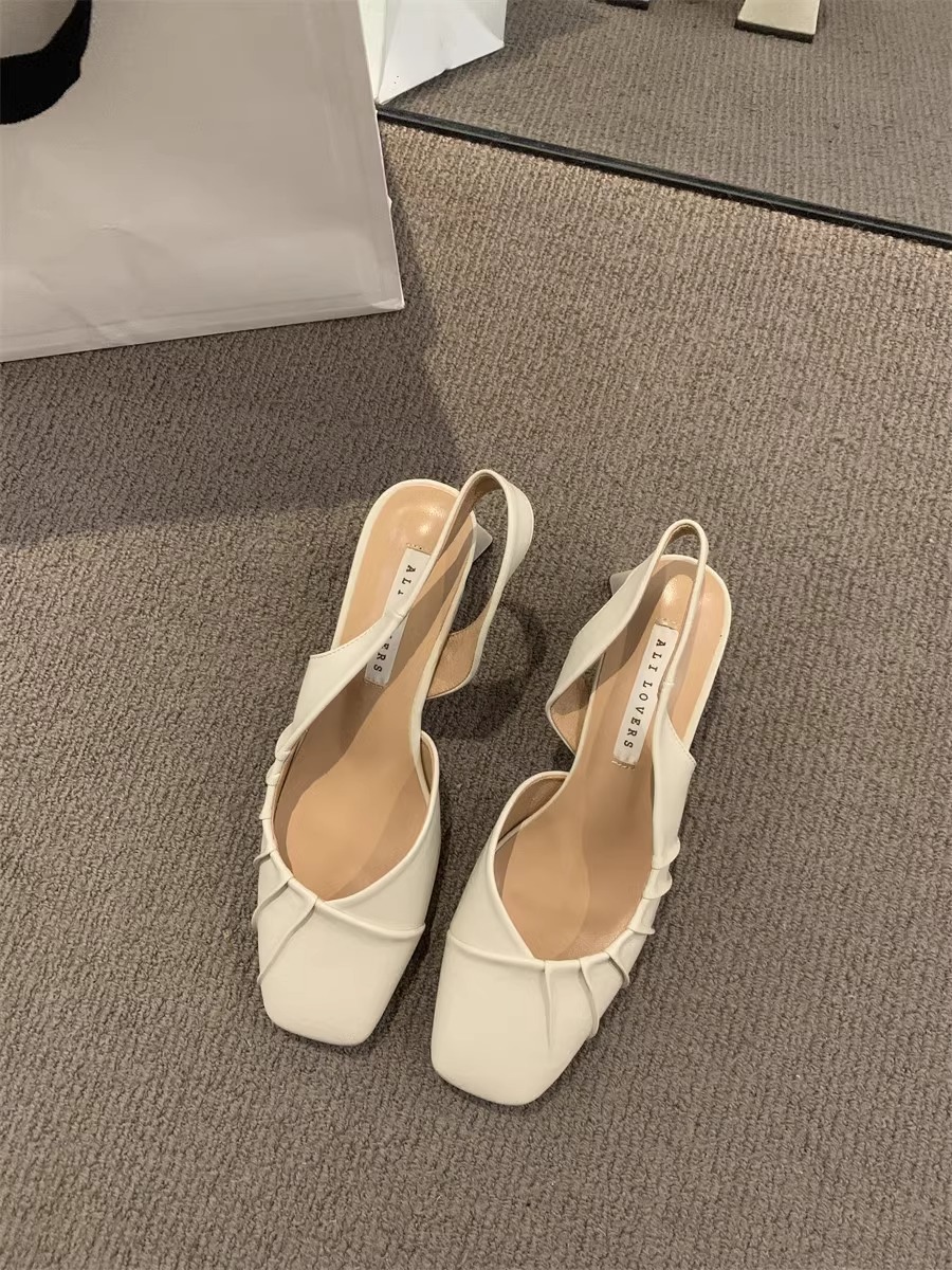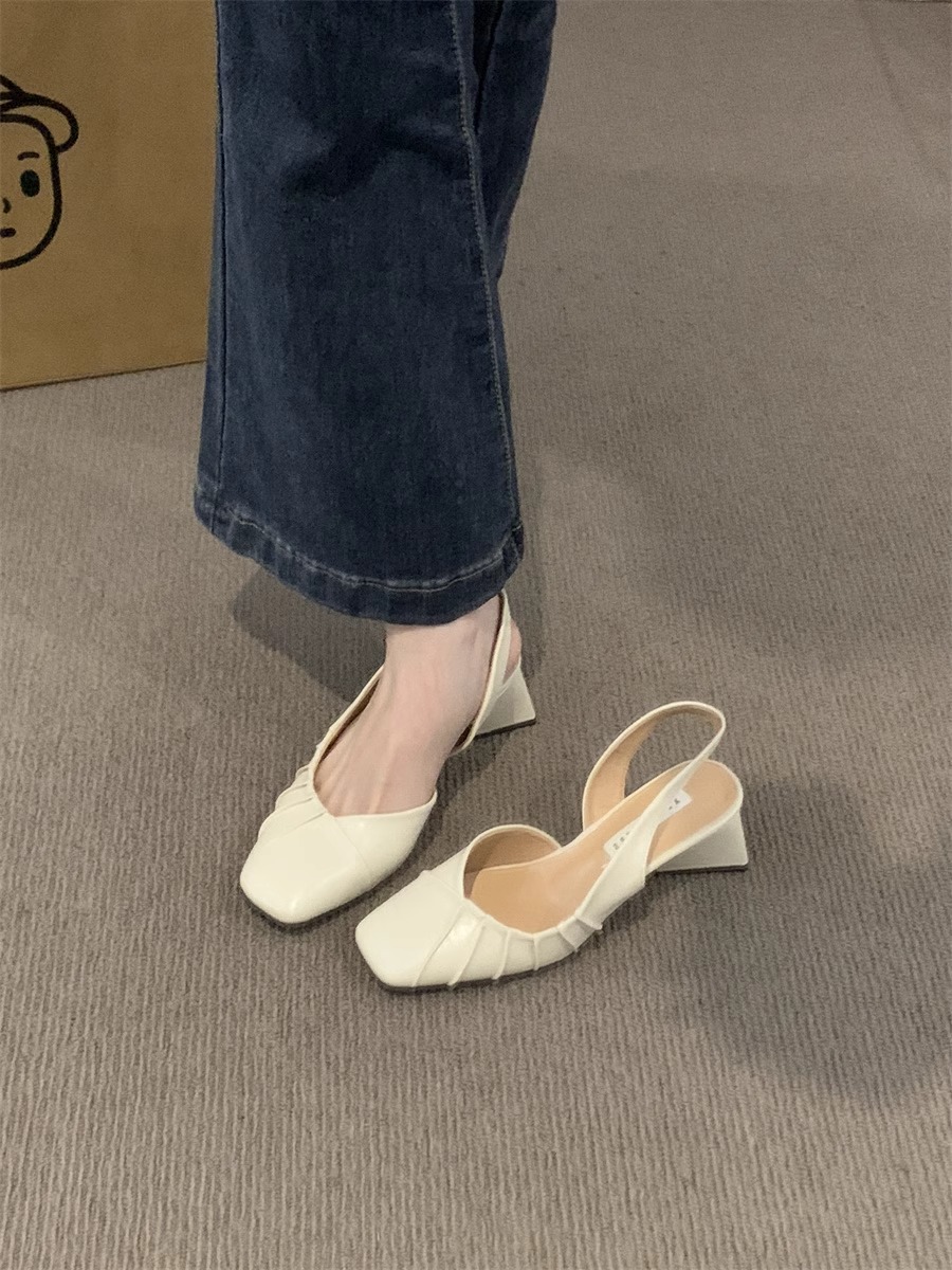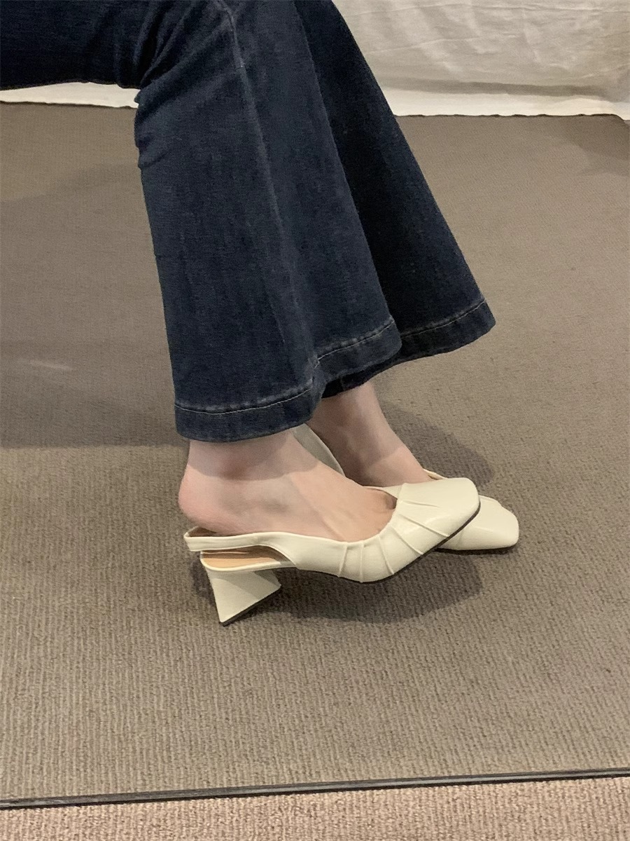 2024 primavera y verano nuevo estilo de tacón alto Baotou sandalias vacías trasero zapatos de mujer tacón grueso boca baja estilo suave francés zapatos individuales zapatos de mujer