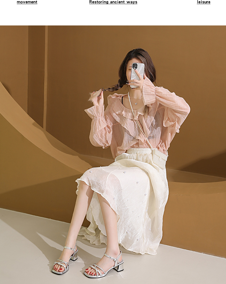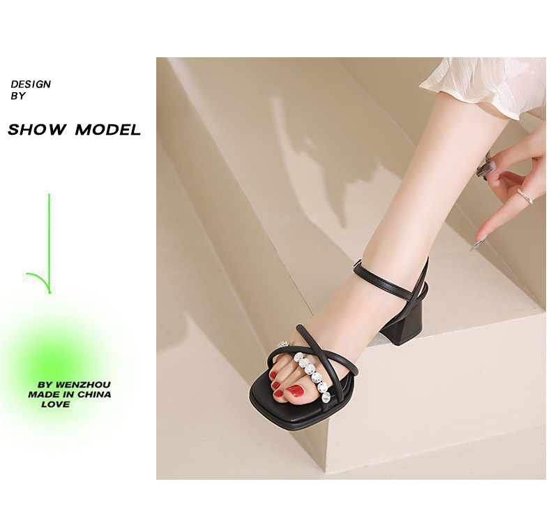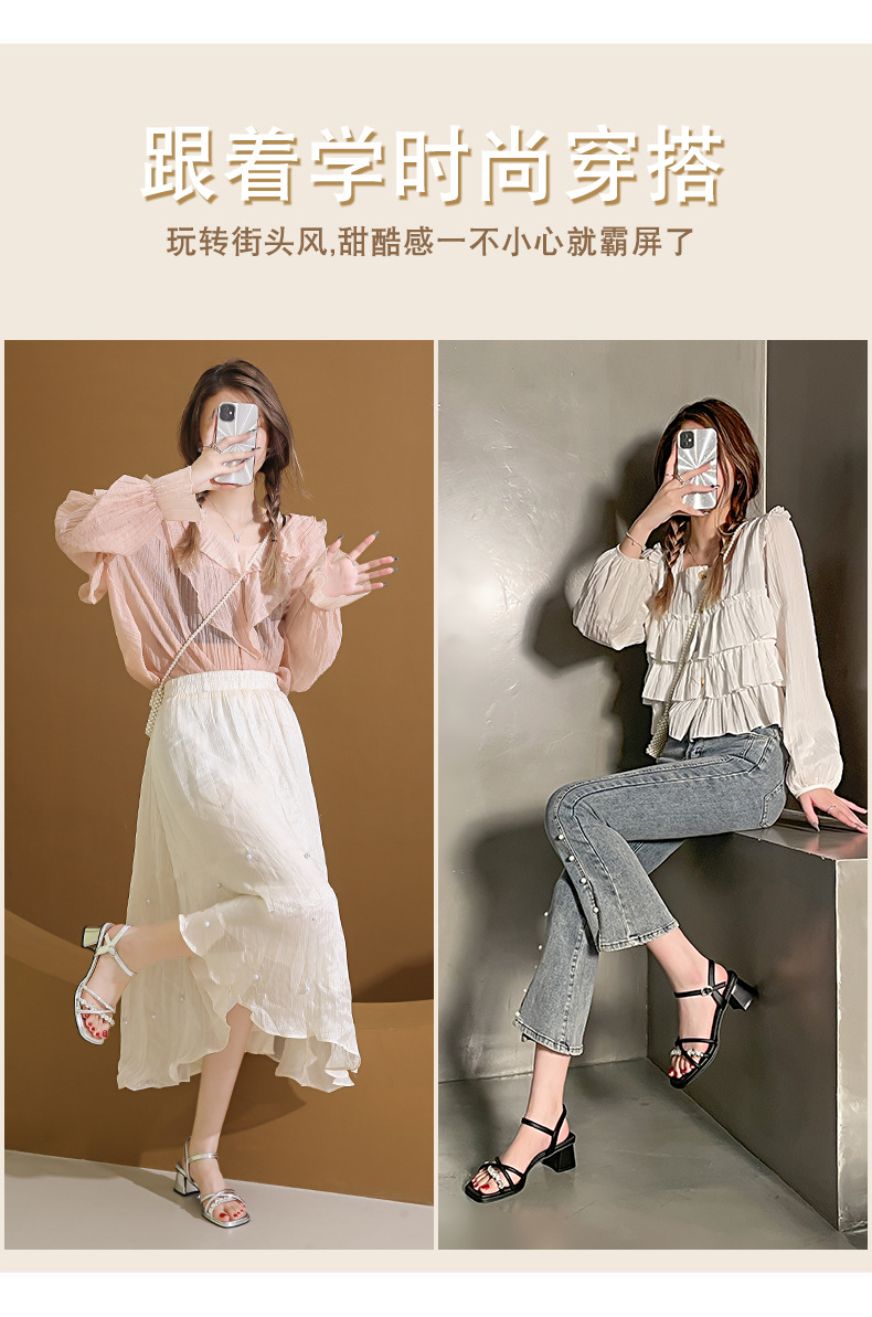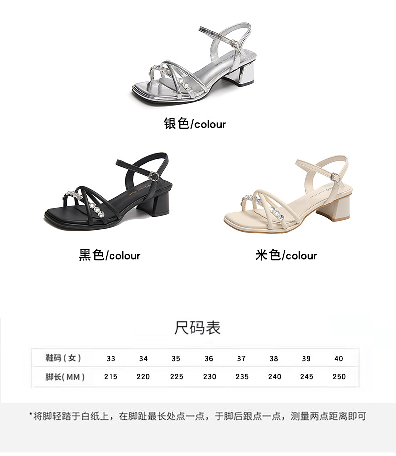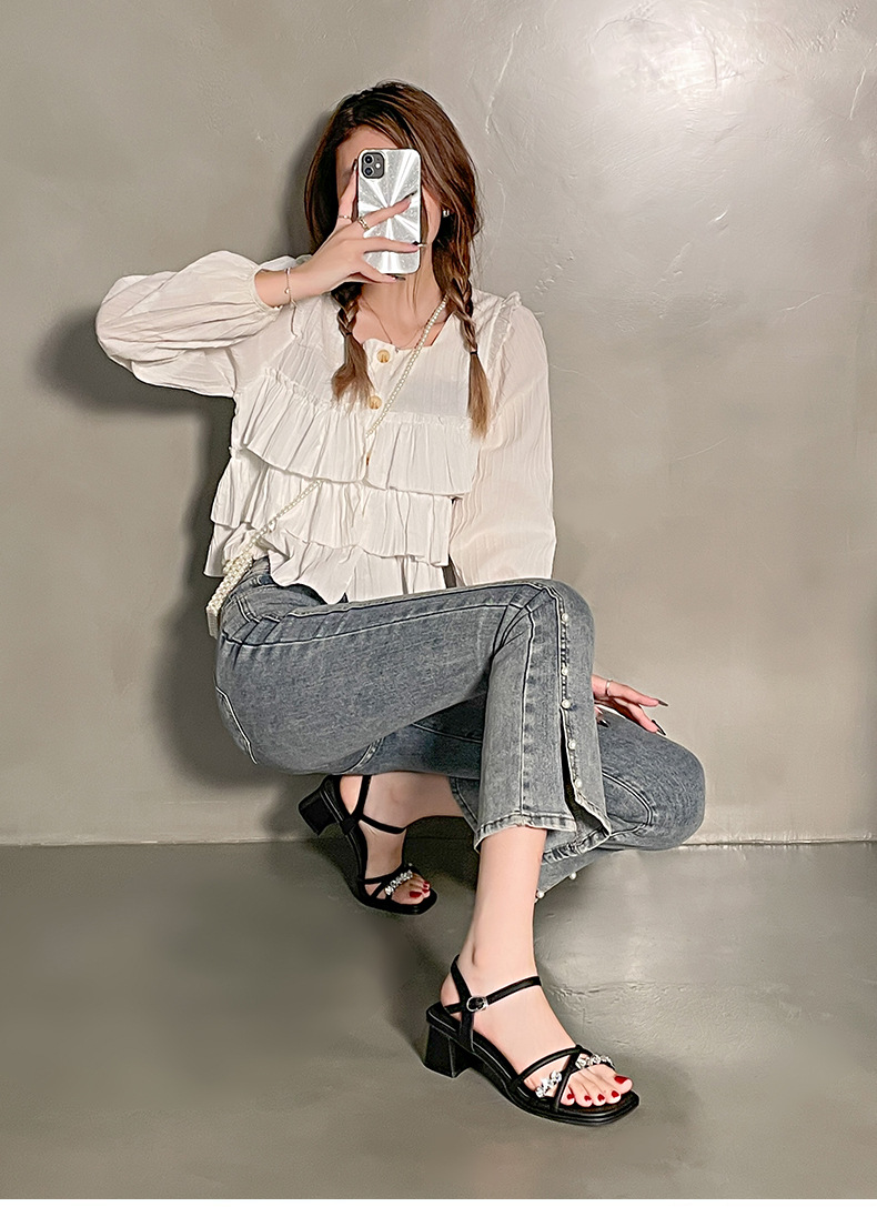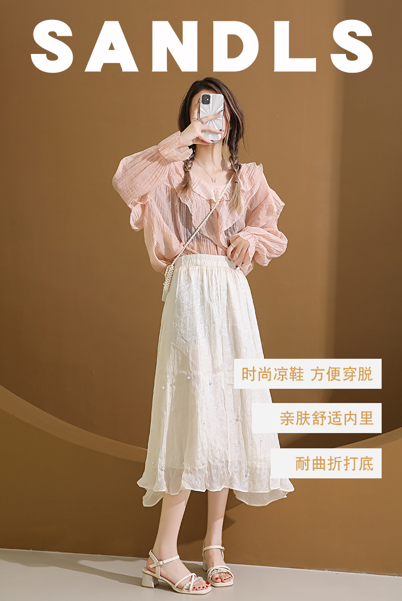 Sandalias francesas de tacón medio de tacón alto para mujer 2025 nuevo estilo de verano con zapatos de tacón grueso de diamantes de imitación con falda Sandalias de hadas