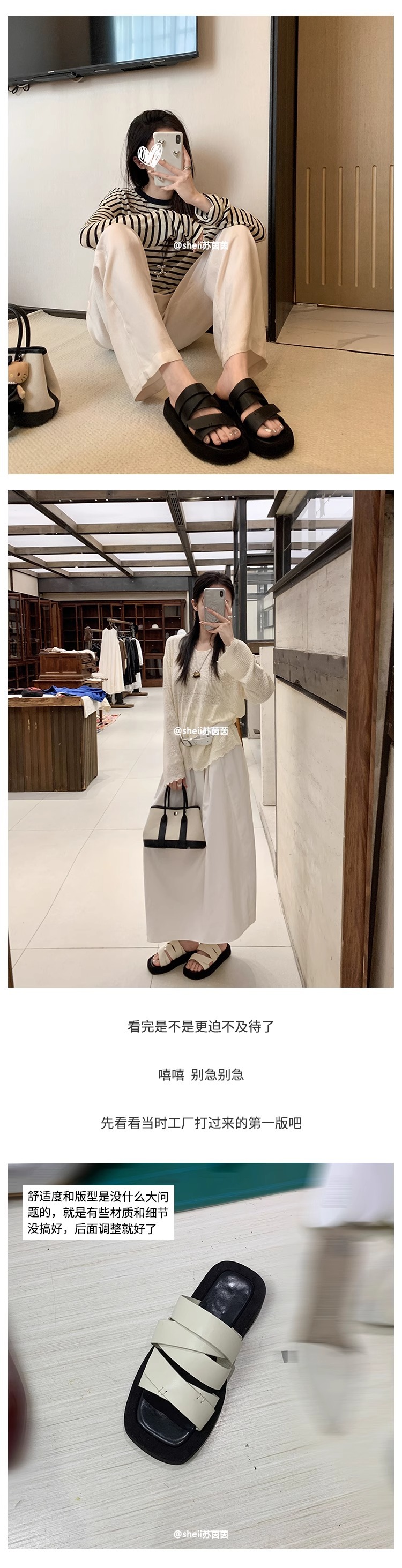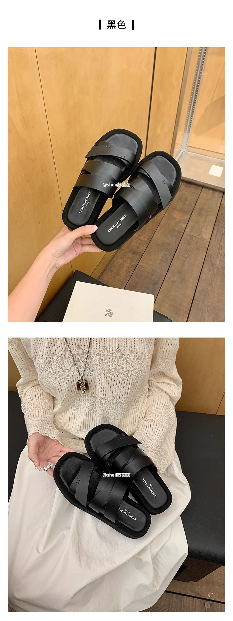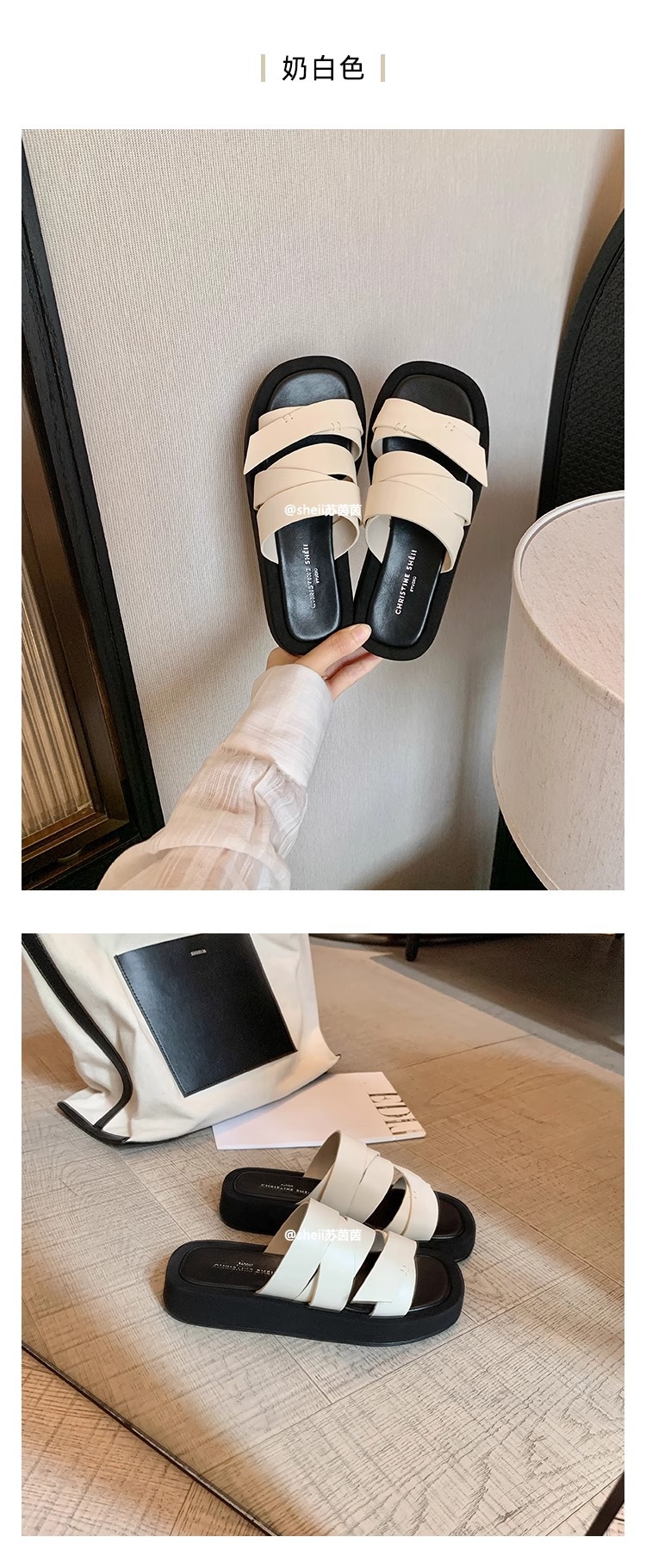 [Sheii Su Yinyin] Arrastre alrededor ~ Pantuflas de ocio de vacaciones de playa de suela gruesa de cabeza cuadrada, sandalias de mujer, verano