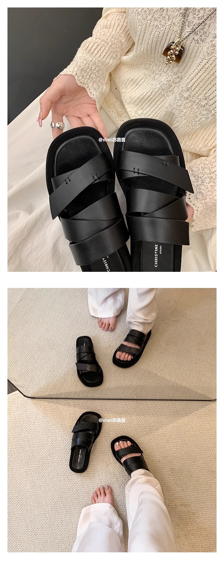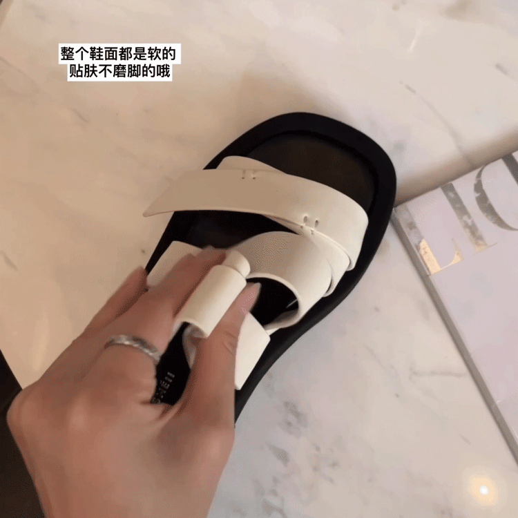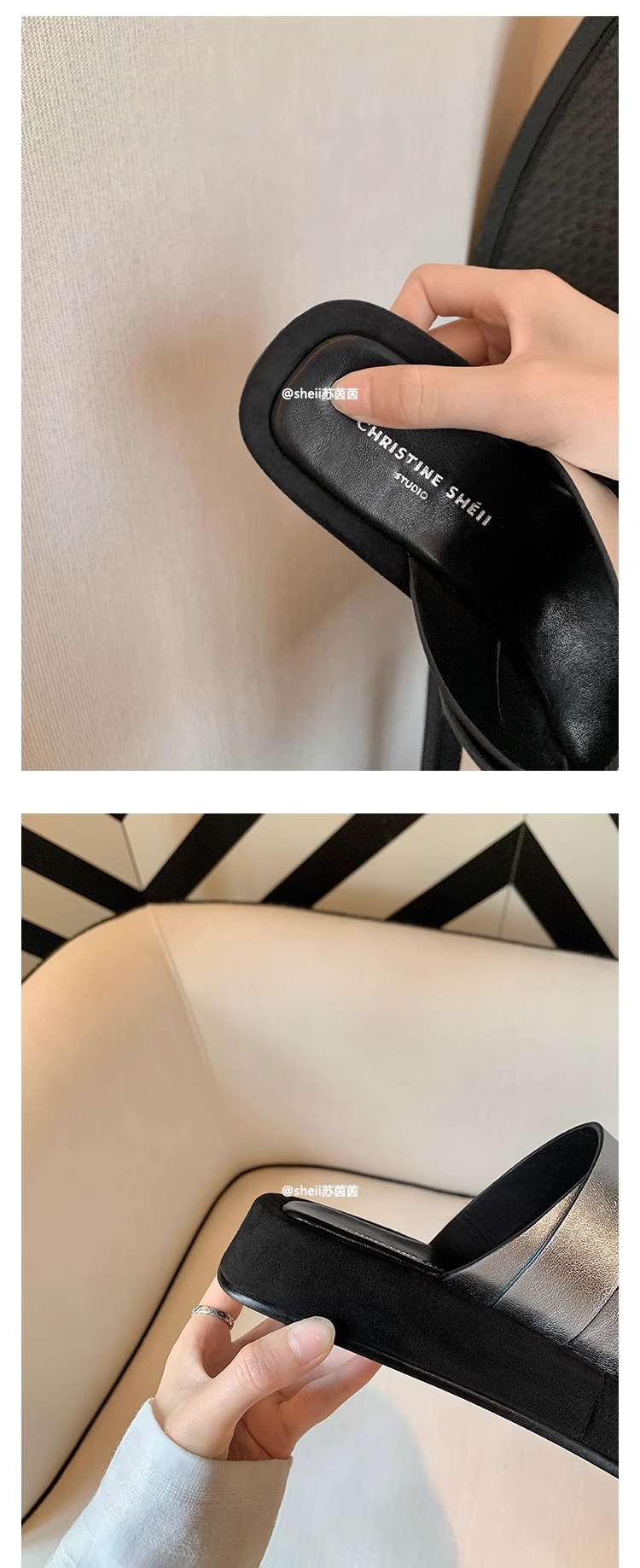 [Sheii Su Yinyin] Arrastre alrededor ~ Pantuflas de ocio de vacaciones de playa de suela gruesa de cabeza cuadrada, sandalias de mujer, verano