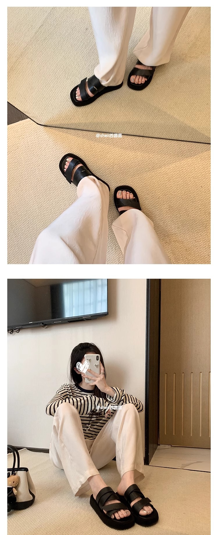Grava Madre Hong Kong Island Holiday ~ verano nuevo perezoso un pedaleo de doble hebilla para adelgazar la parte inferior gruesa fría traposas Burken