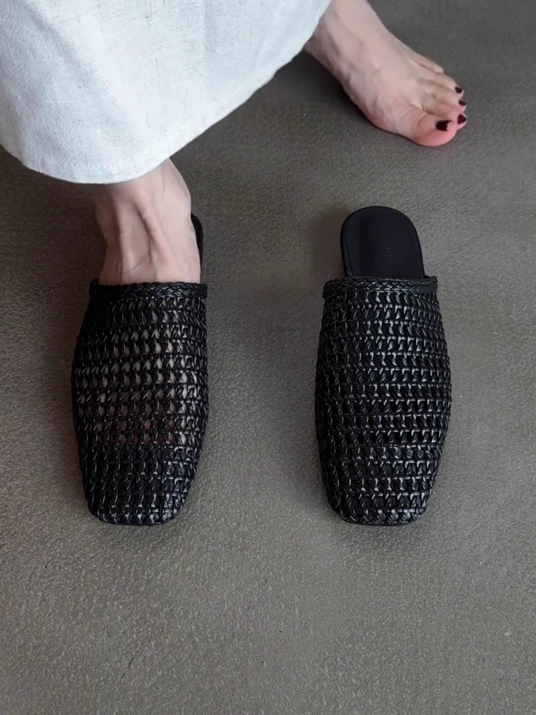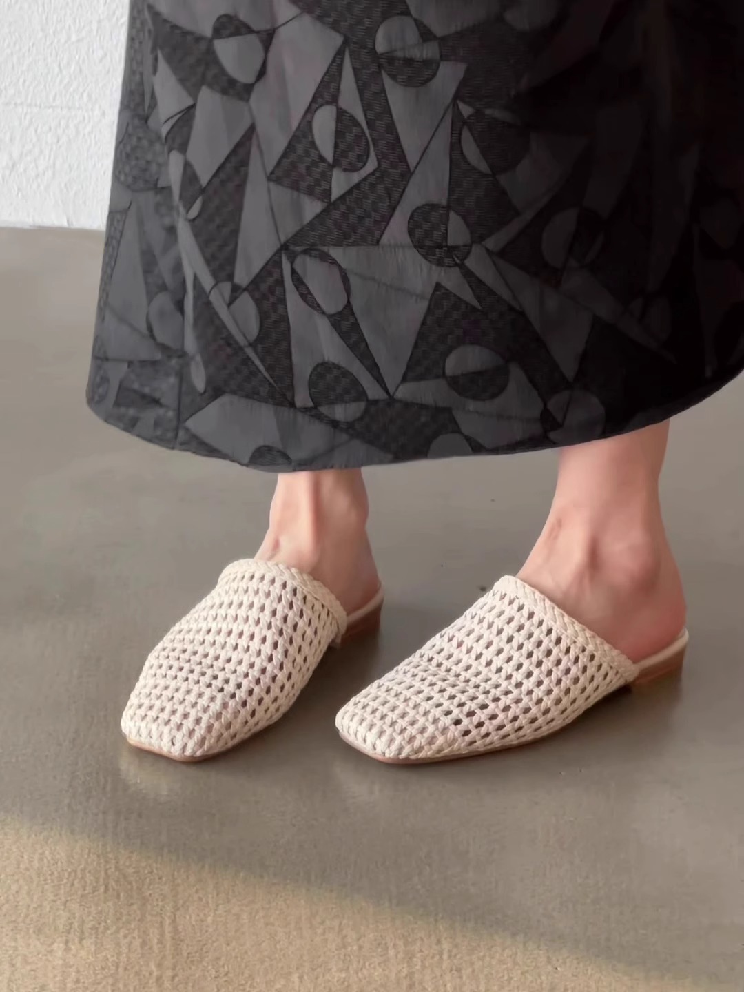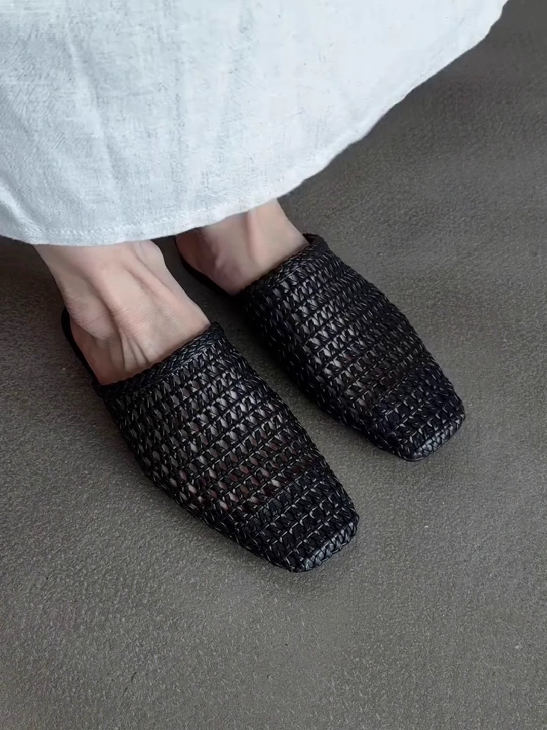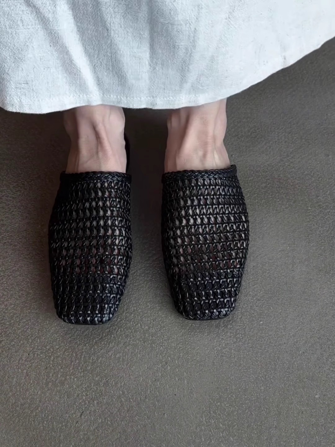 La marea no es sur ~ 2025 nuevo estilo tejido hueca Baotou medias pantuflas mujeres verano fondo plano cabeza cuadrada moda sandalias perezosas