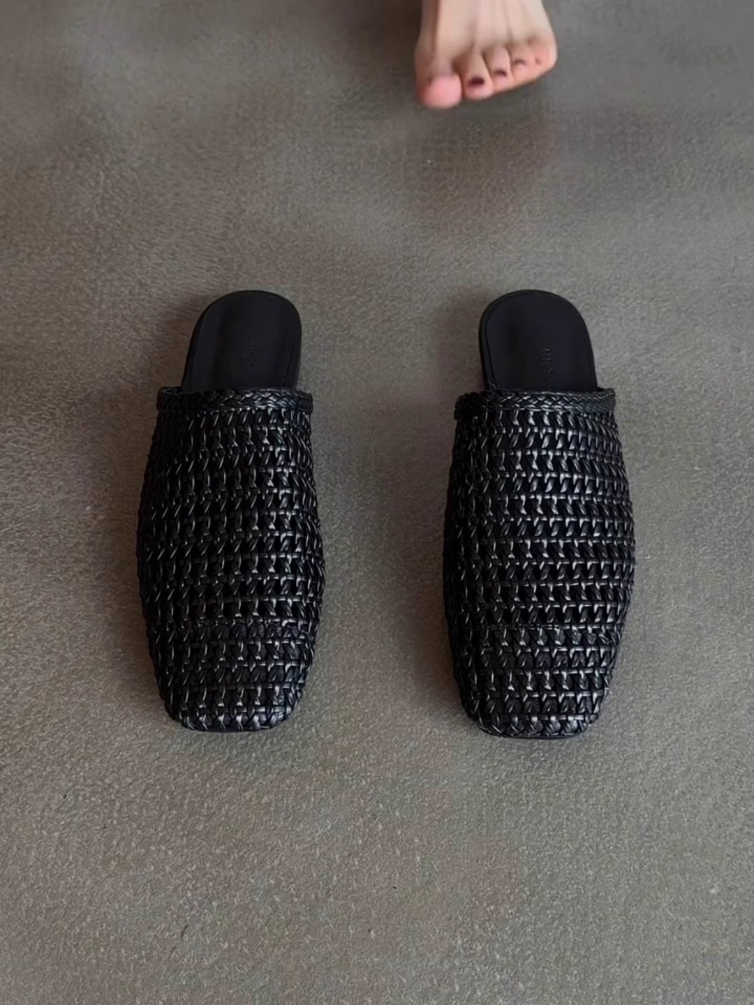 2023 primavera y verano nuevas mujeres cerrado dedo del pie zapatillas planas estilo coreano elegante moda mujer Sandalias casuales punta cuadrada zapatillas de mujer