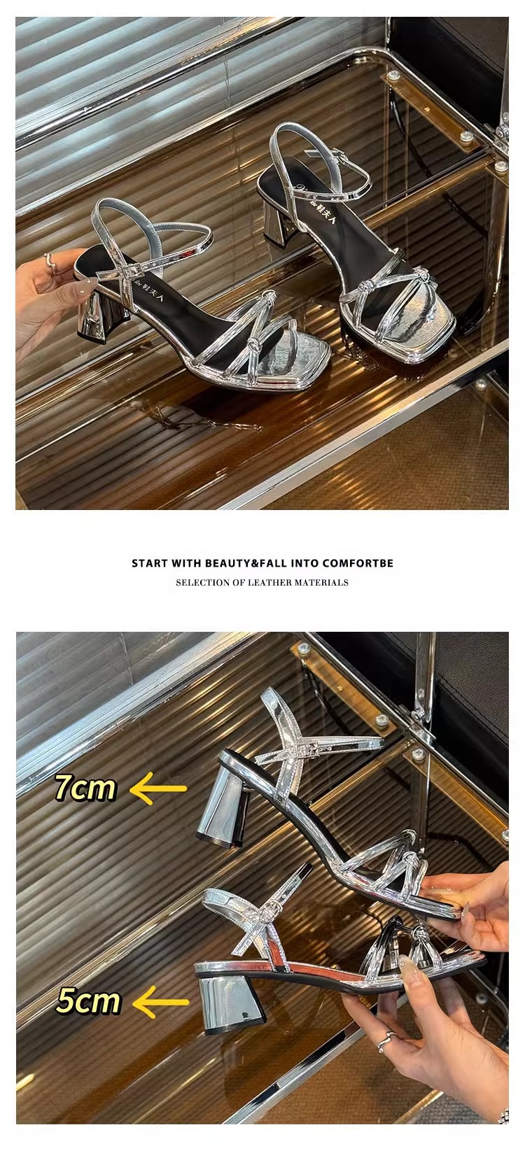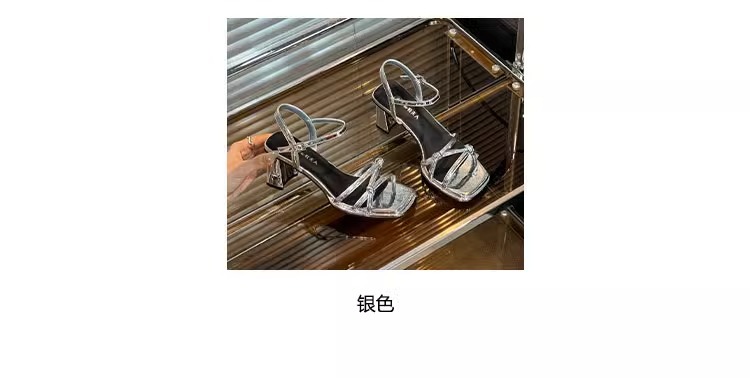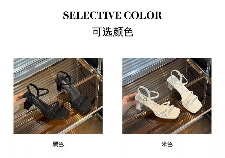 Zapatos Lady 2025 verano nuevo estilo moda francés nicho tacón grueso punta cuadrada cinturón sandalias romanas mujer pequeño tacón alto