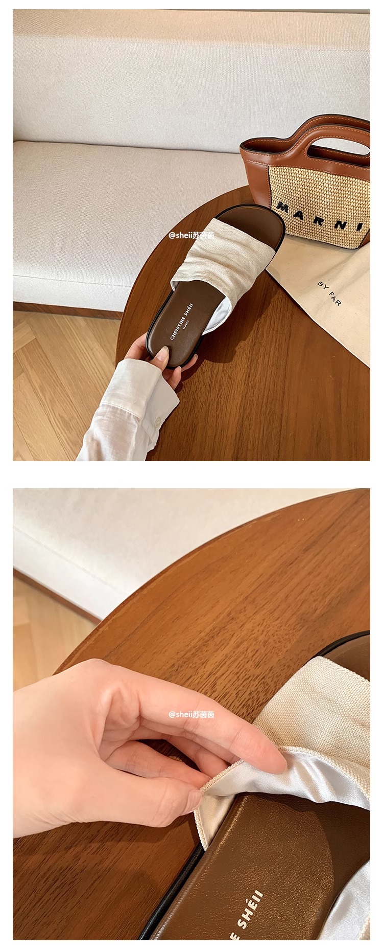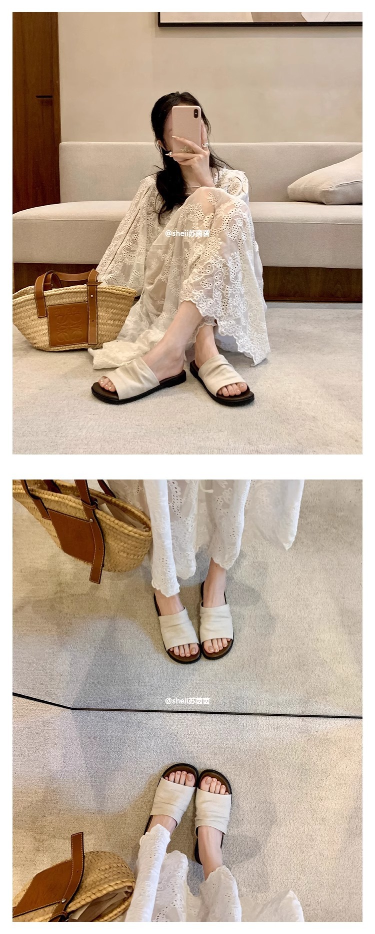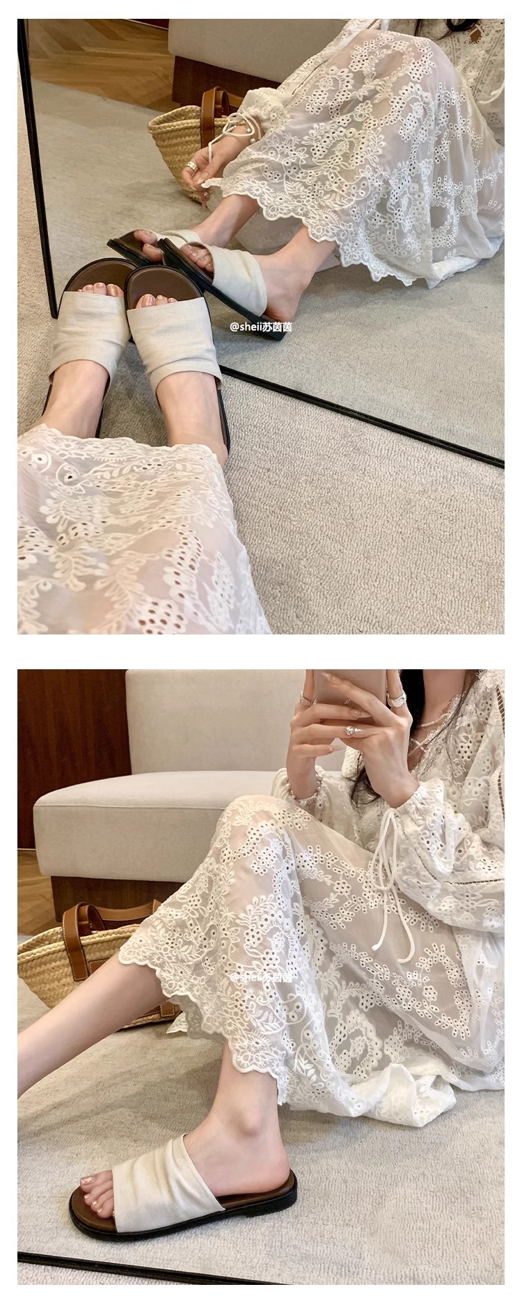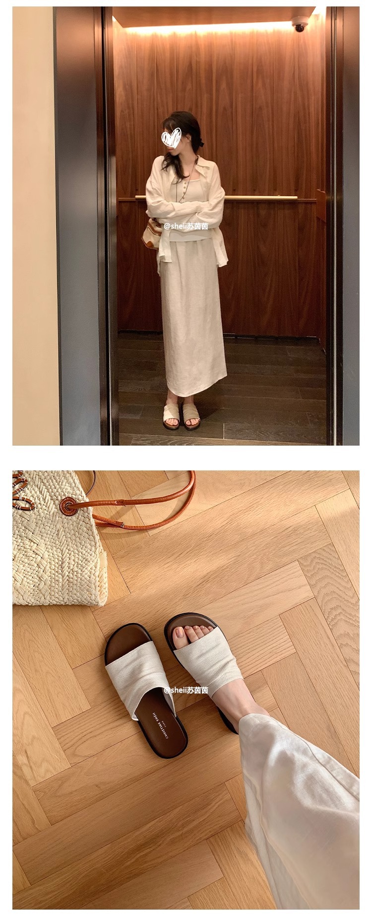 [Sheii Su Yinyin] Bangkok drag ~ Sandalias planas plisadas de lino de playa estilo resort, zapatillas de mujer, verano